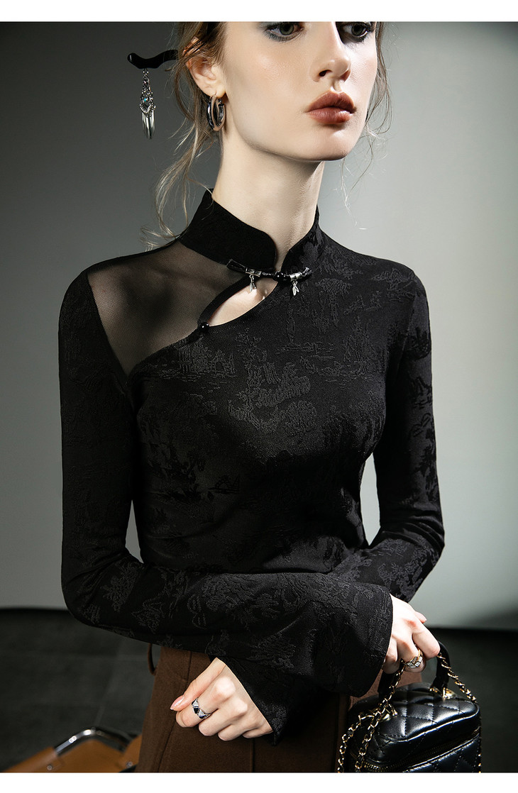 秋冬新款拼接网纱长袖气质修身上衣XD-F20245310