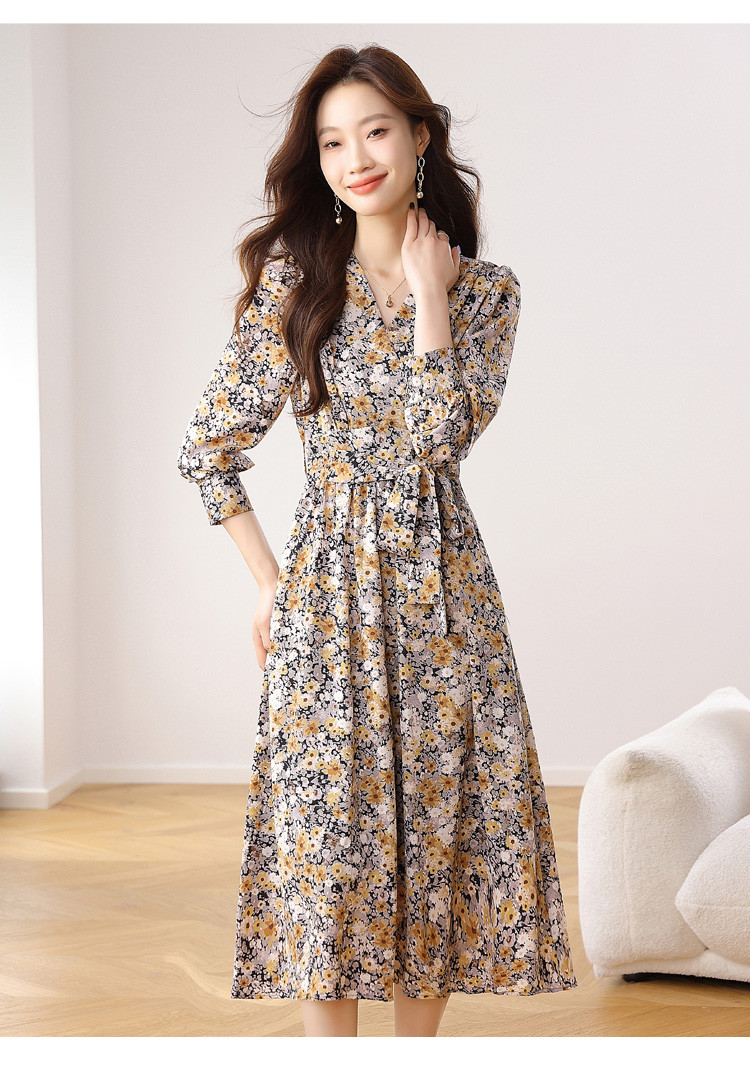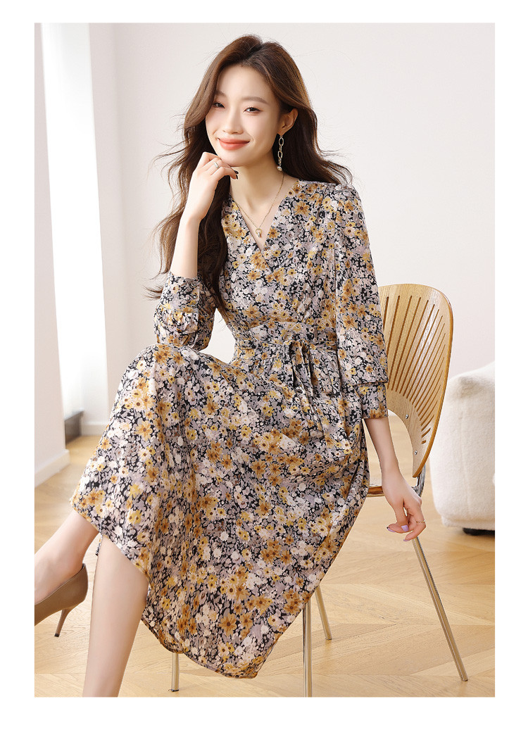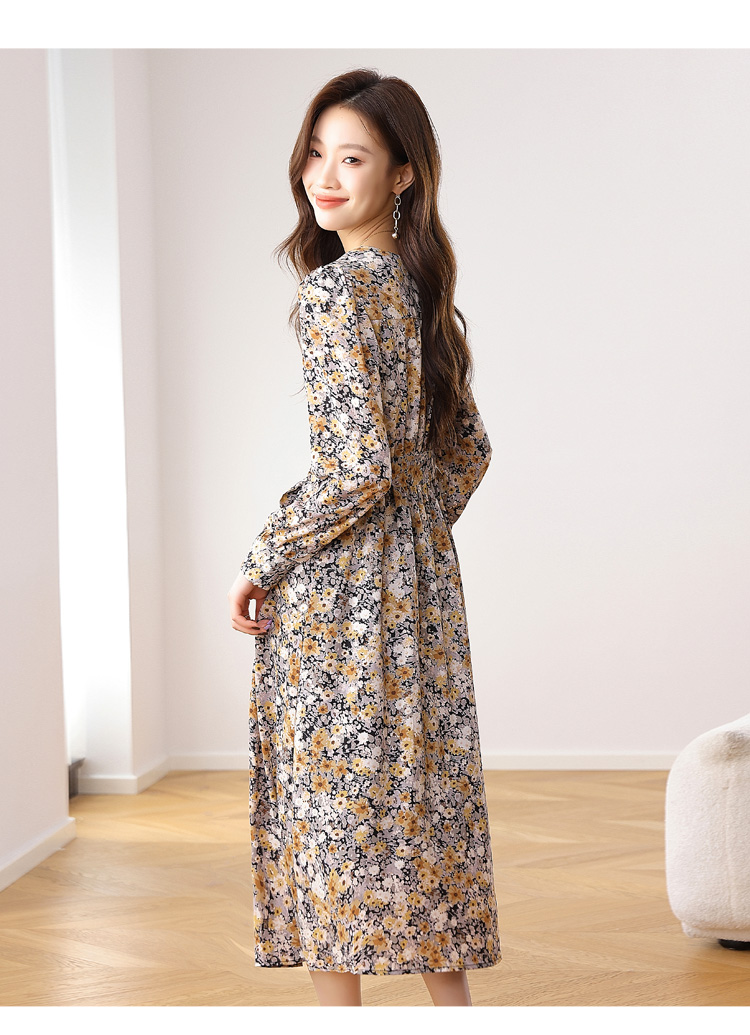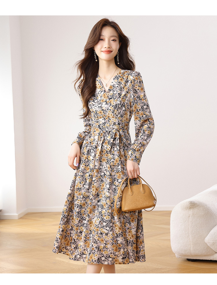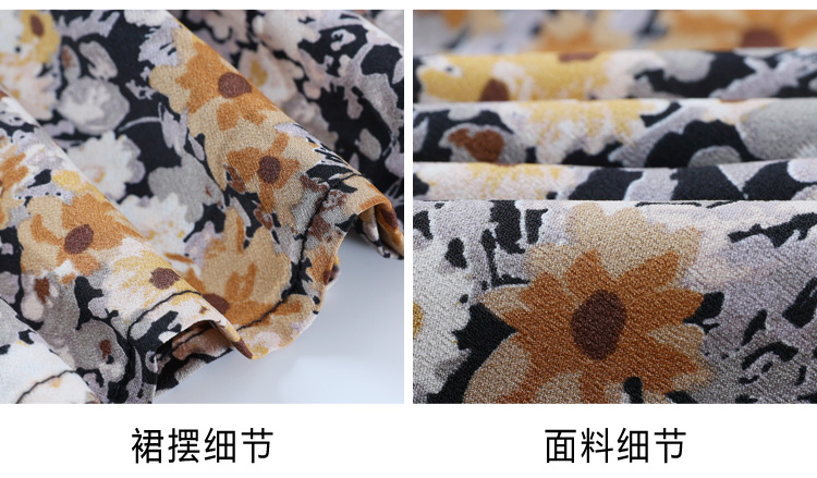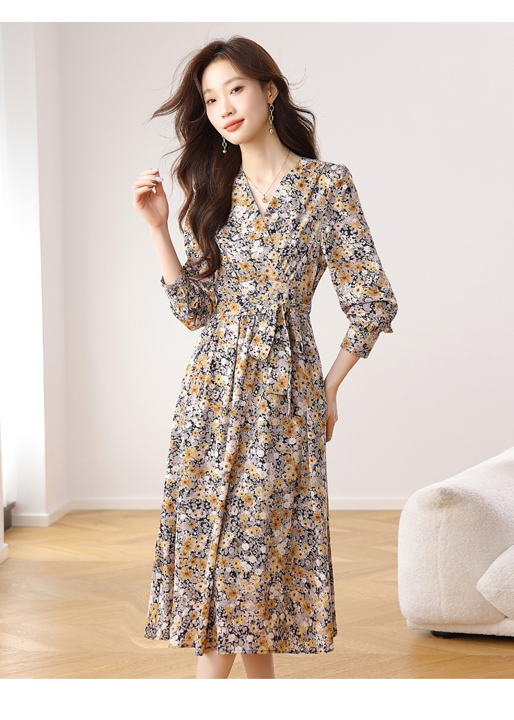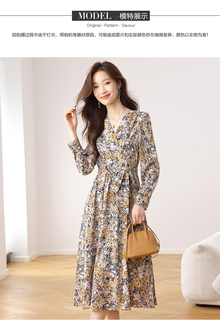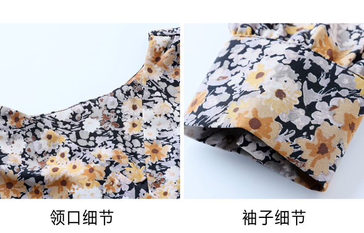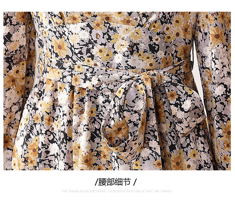 【预售3天】PY 法式V领收腰碎花长袖连衣裙 &8239