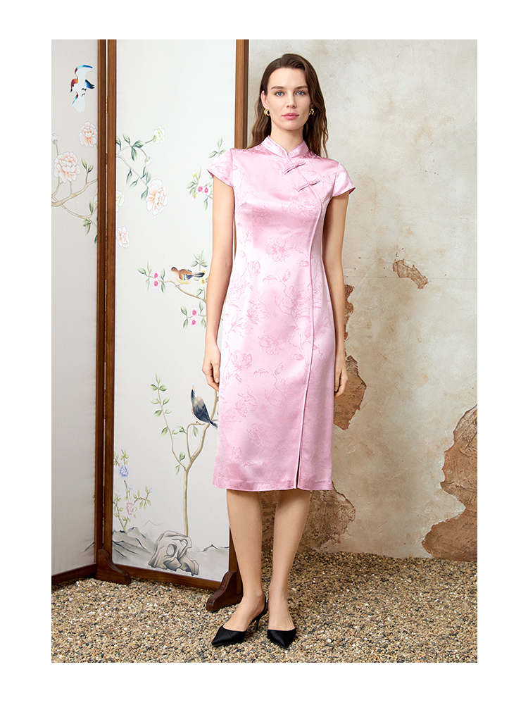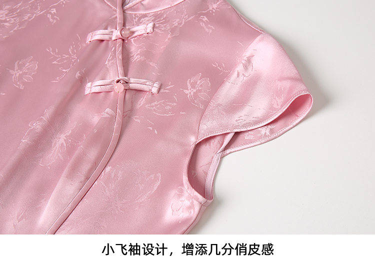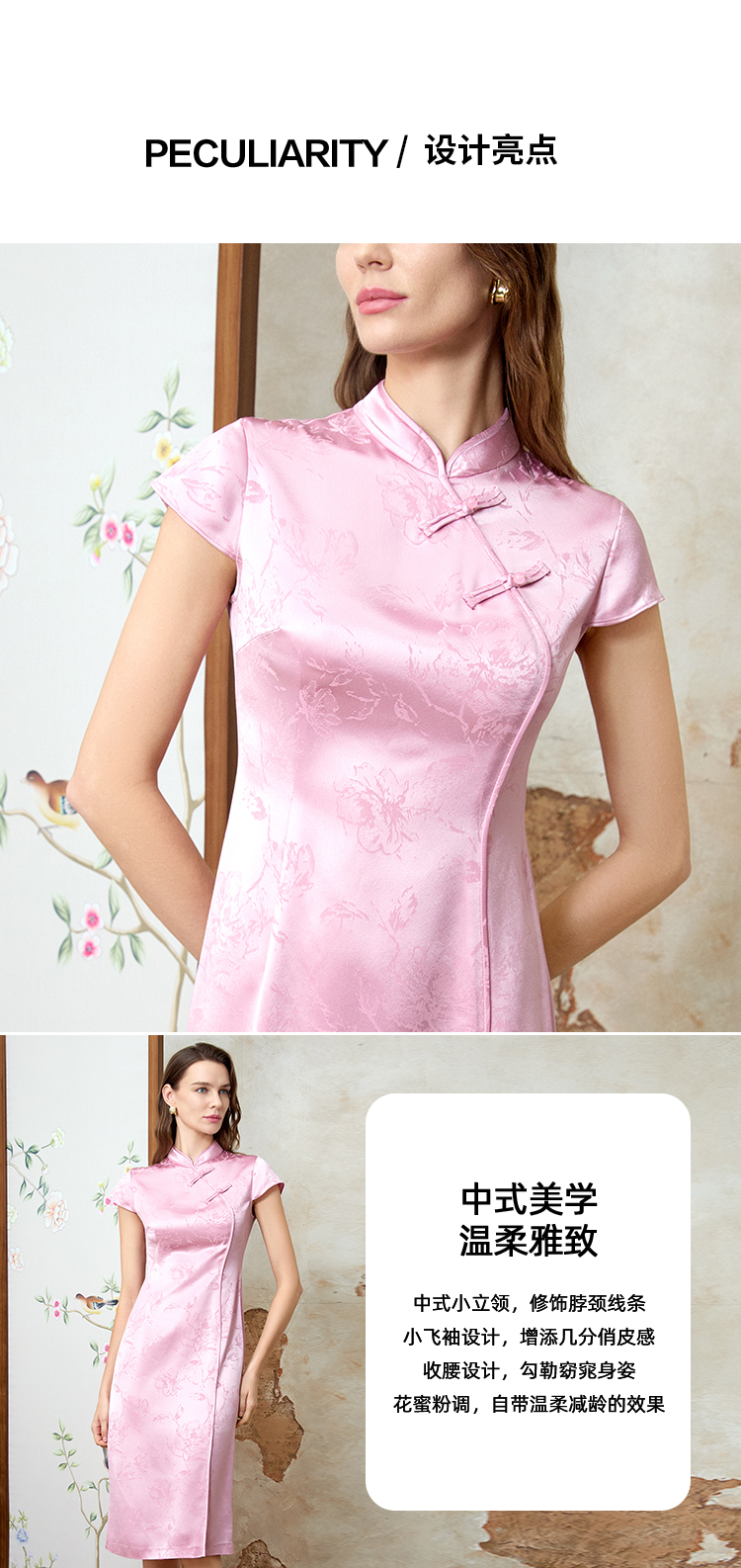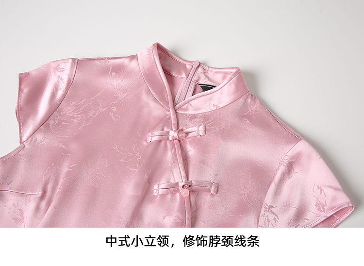 EITIE爱特爱气质新中式立领暗纹收腰显瘦连衣裙春季新款8107830