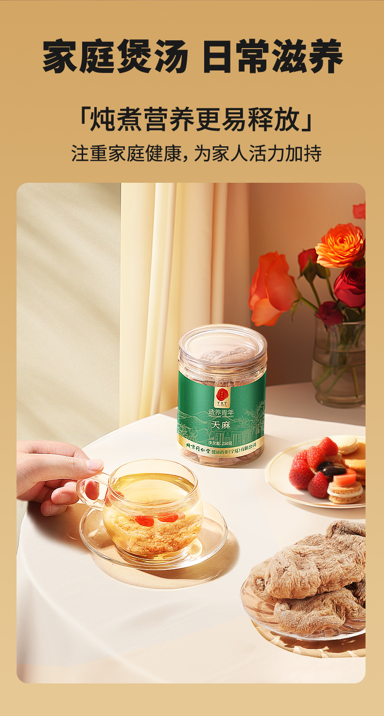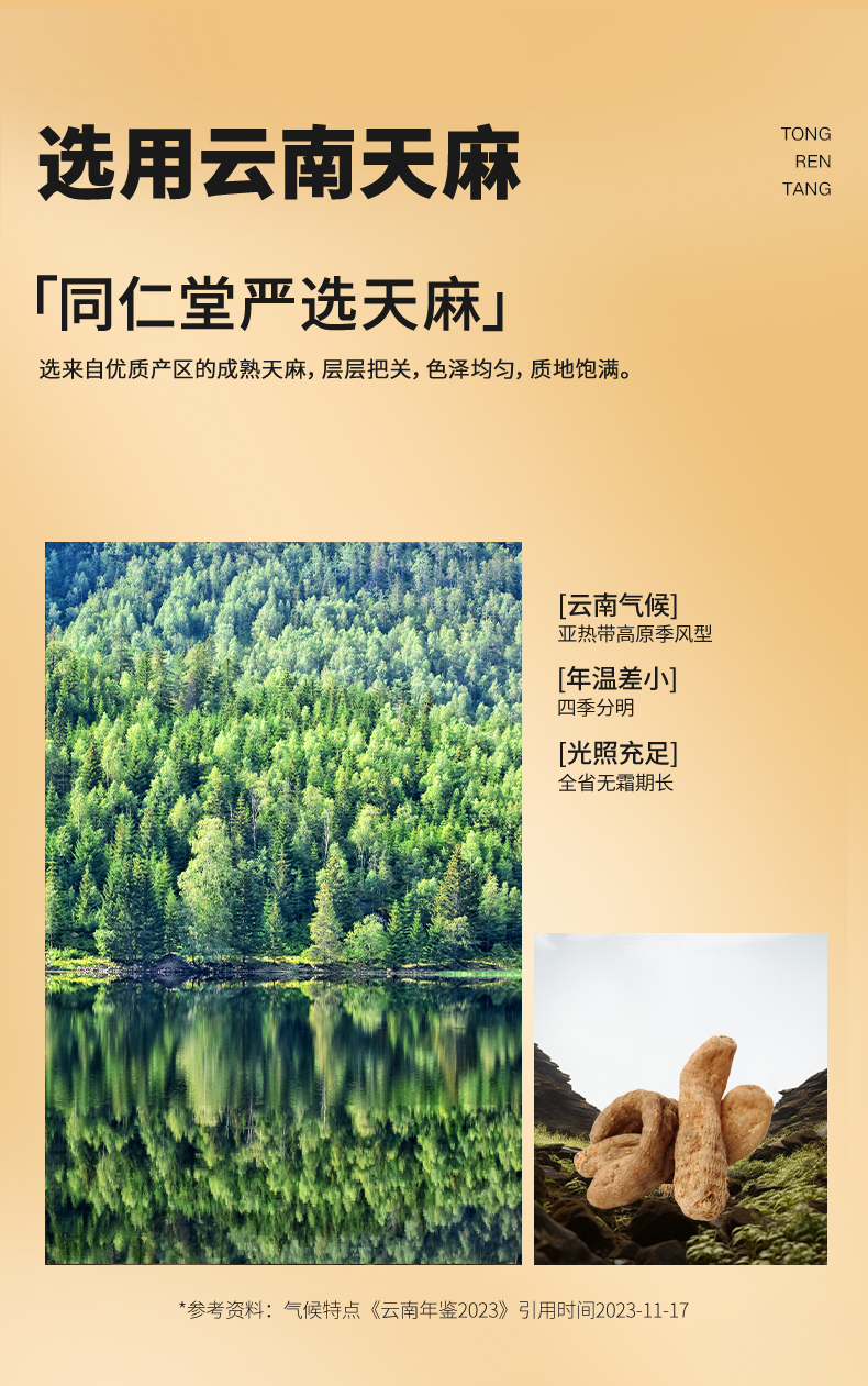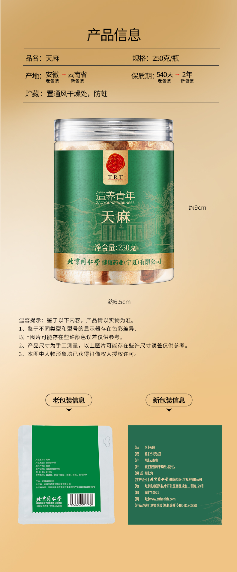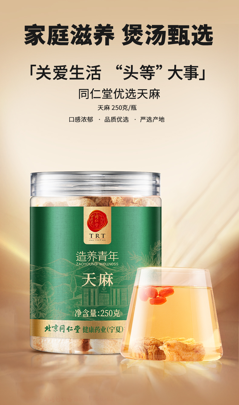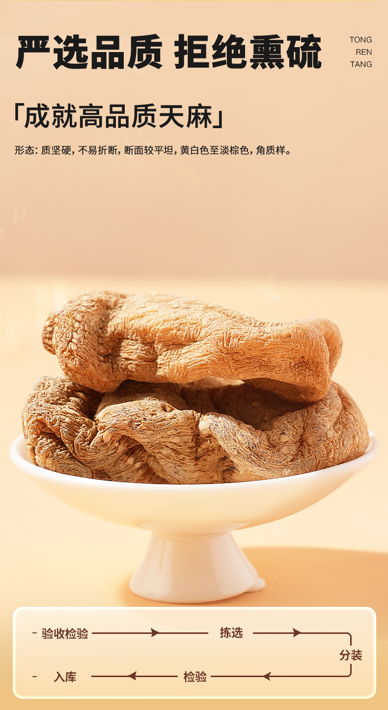 【正宗同仁堂品牌】北京同仁堂 天麻250克 安徽原产 肉质厚实 入口醇香 自然味美 营养丰富SY