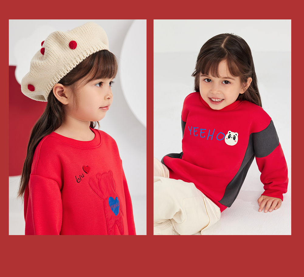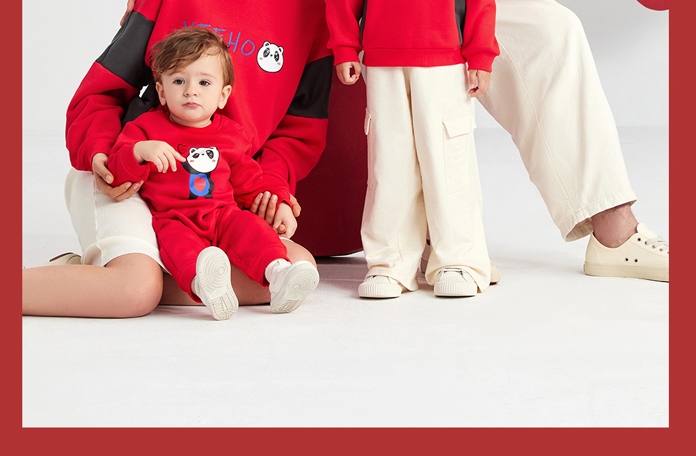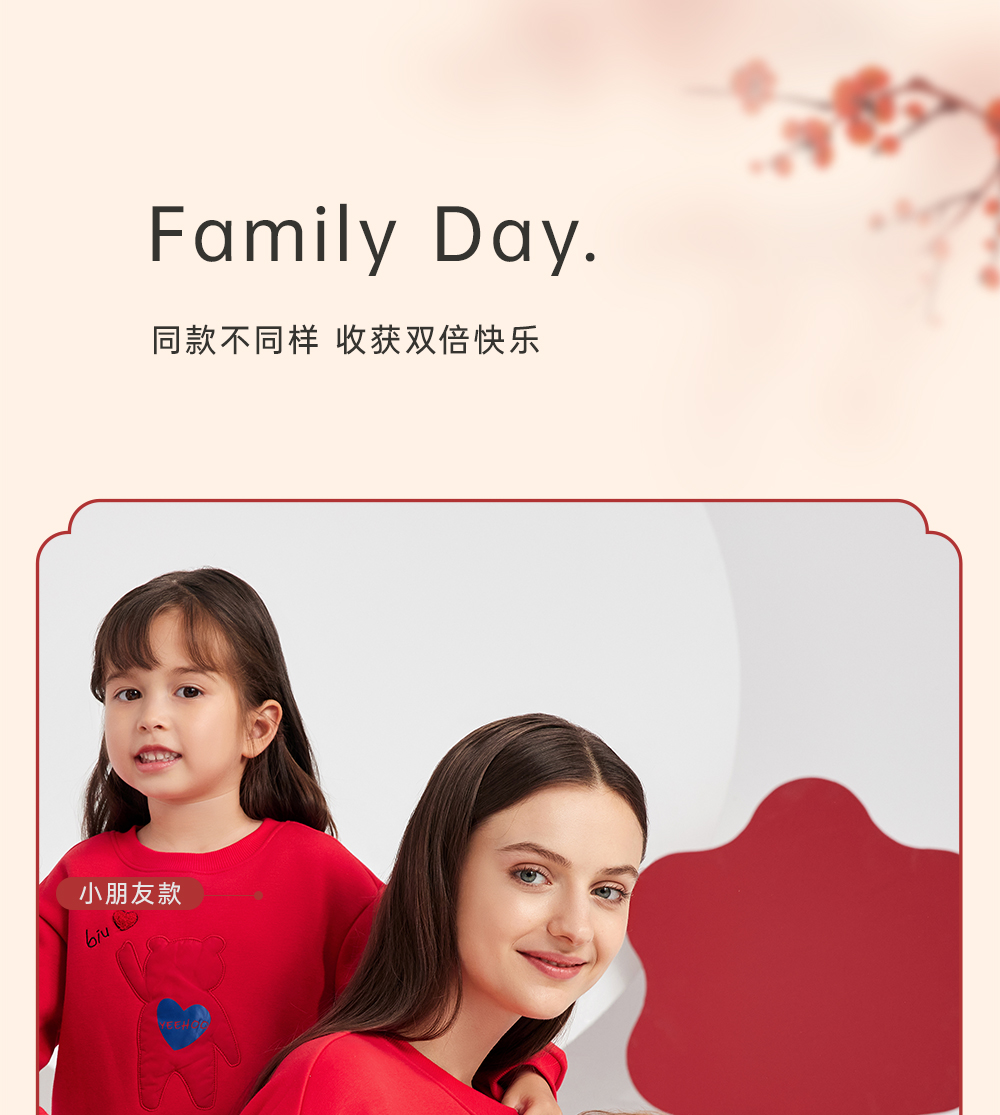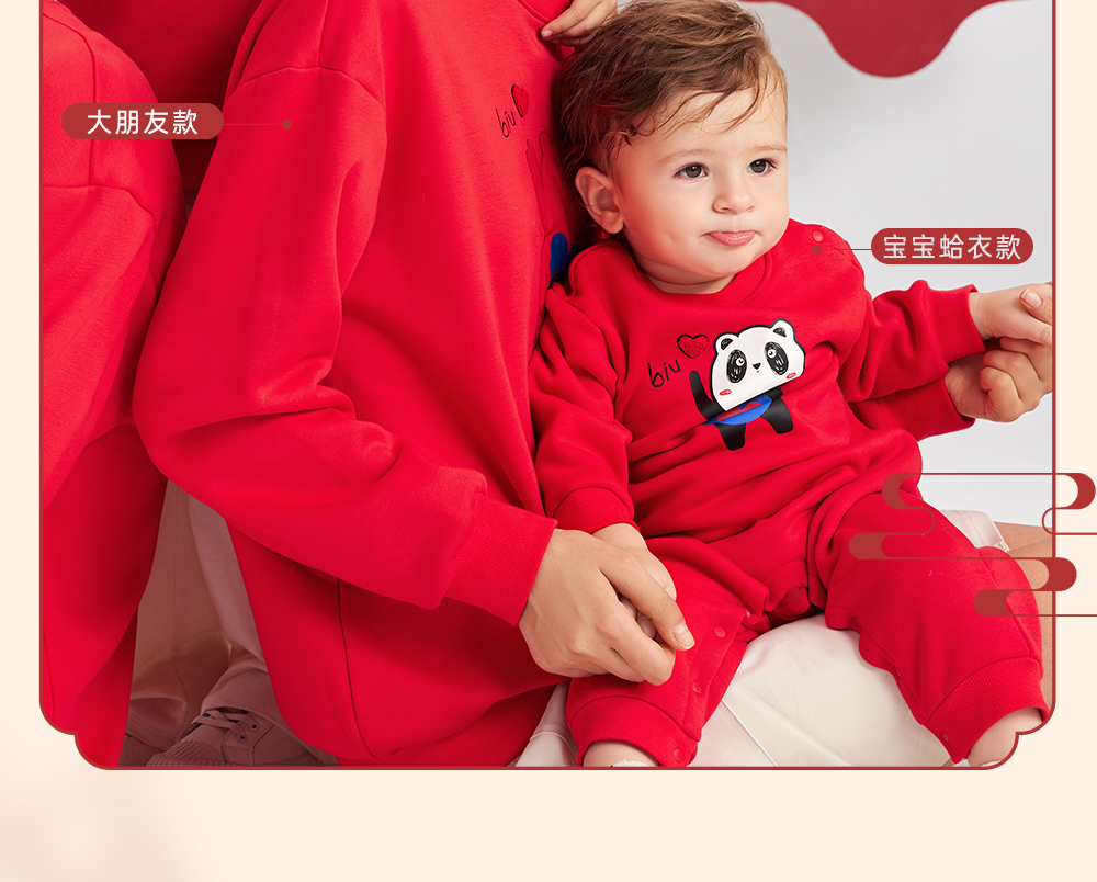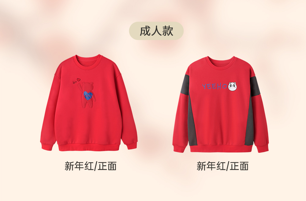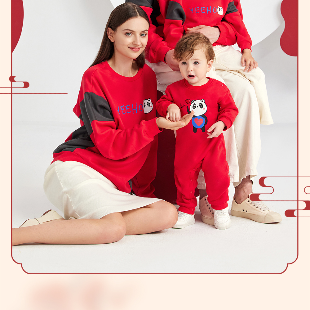 英氏亲子装一家三口成人儿童加绒卫衣哈衣新年款YRTAJ32053A
