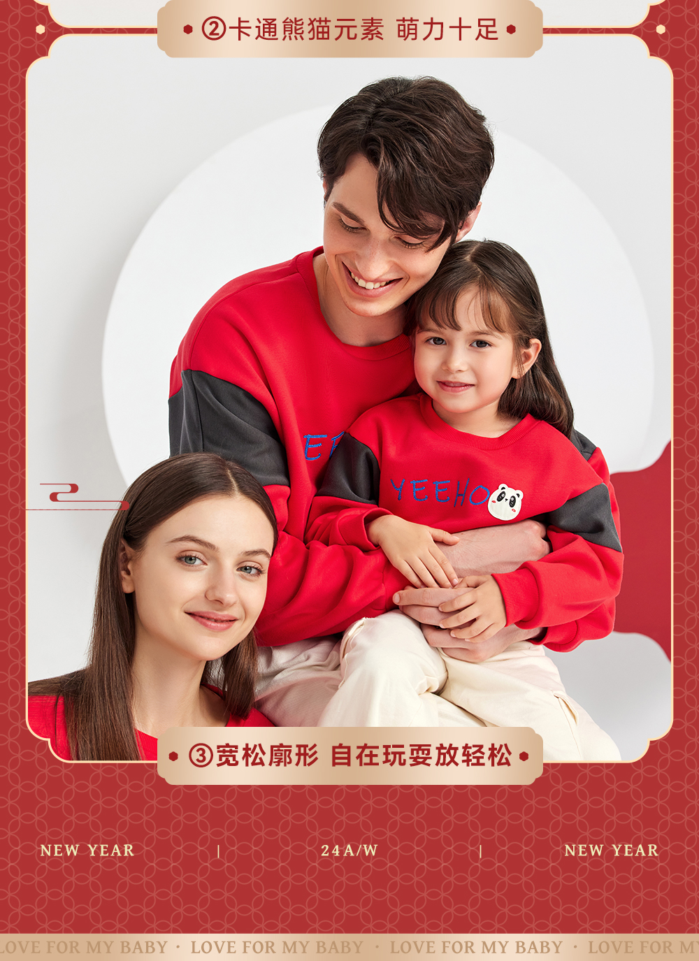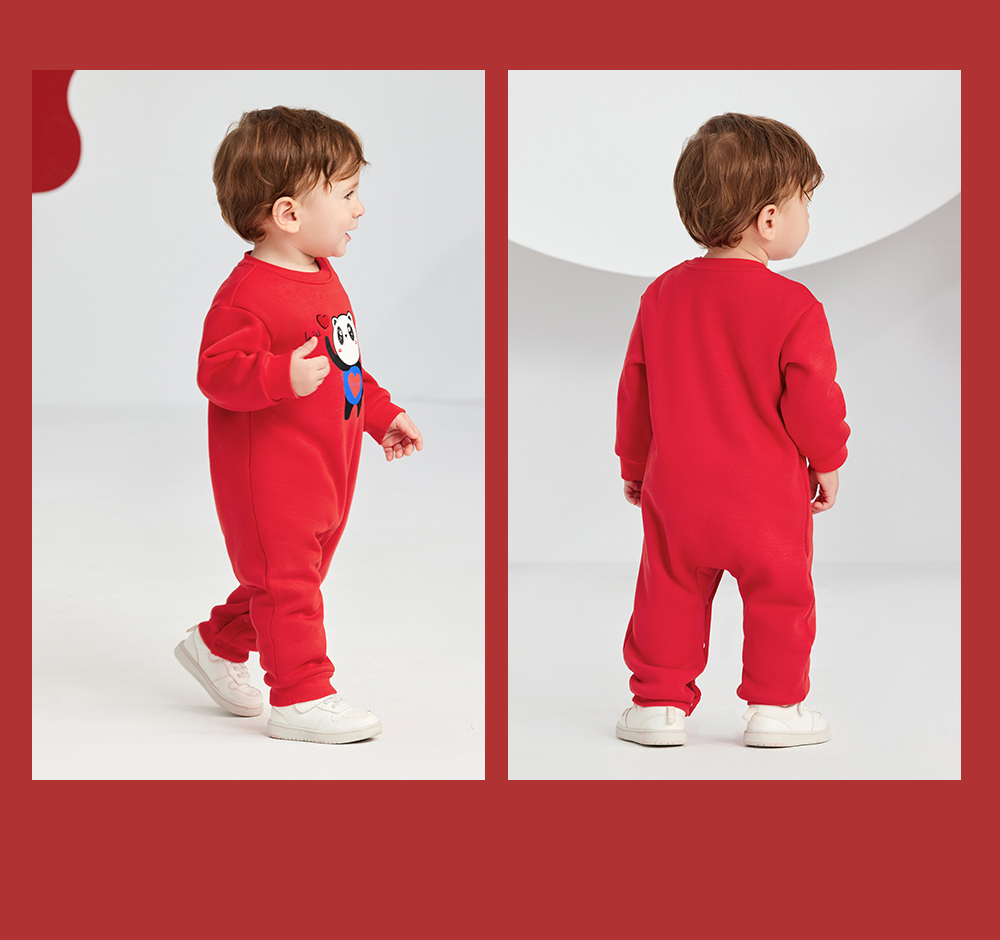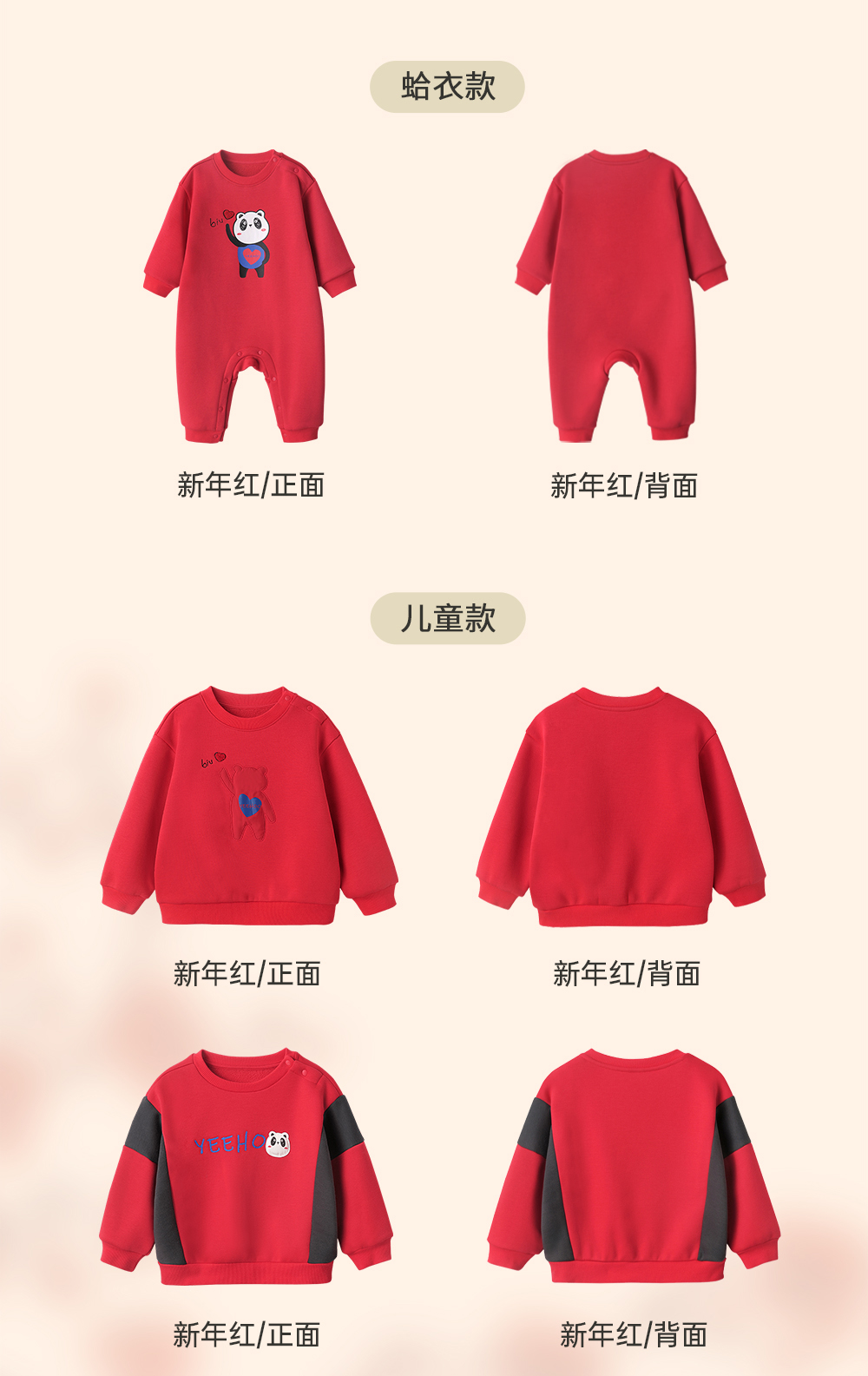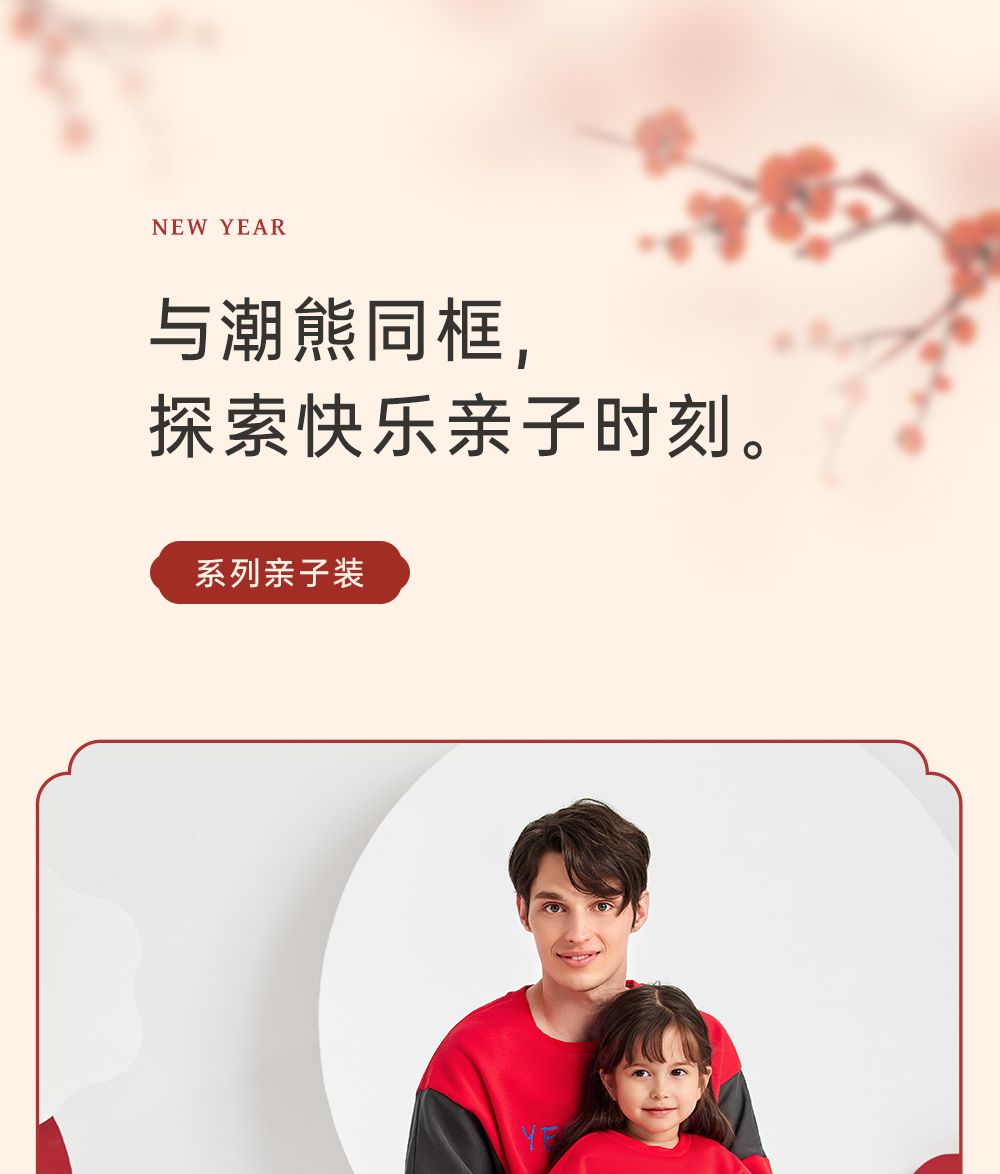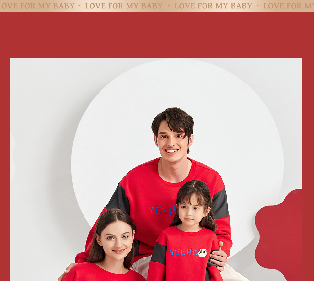 英氏亲子装一家三口成人儿童加绒卫衣哈衣新年款YRTAJ32053A
