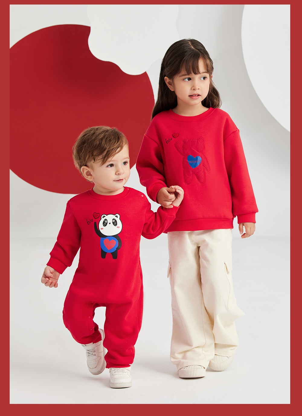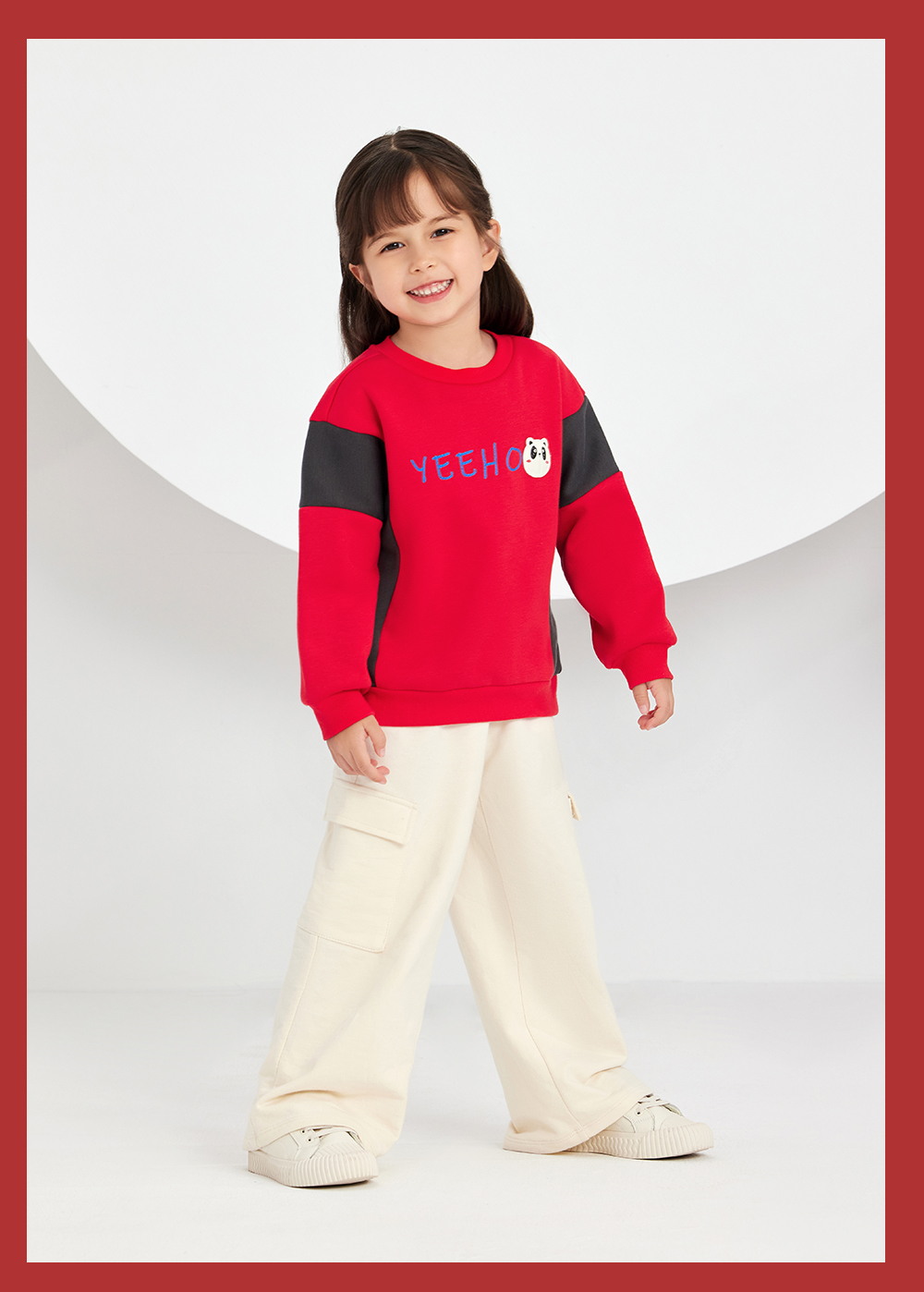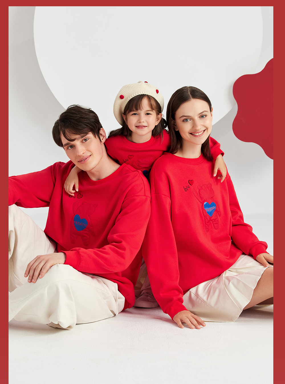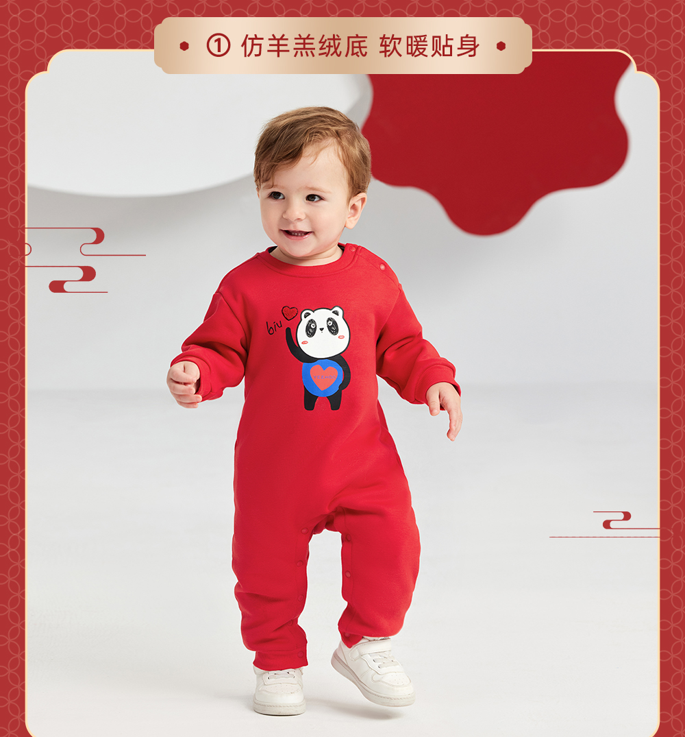 英氏亲子装一家三口成人儿童加绒卫衣哈衣新年款YRTAJ32053A
