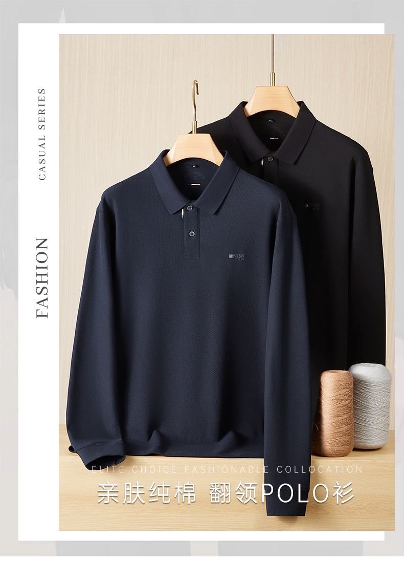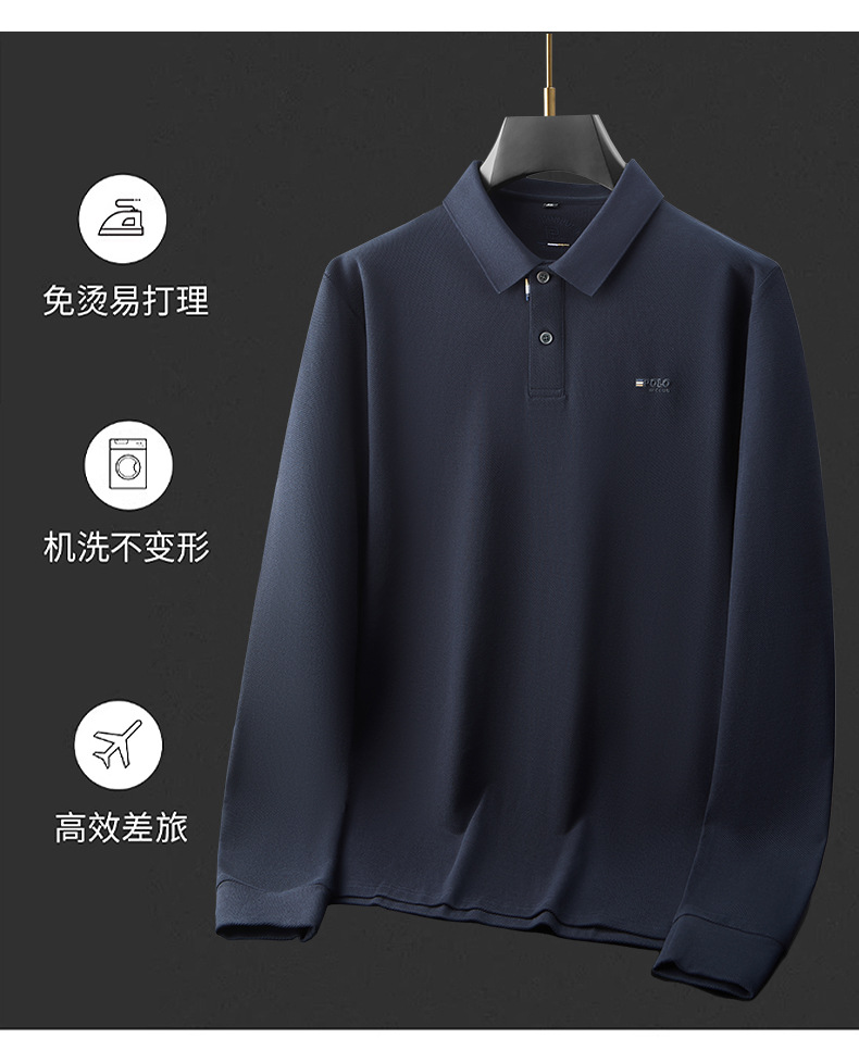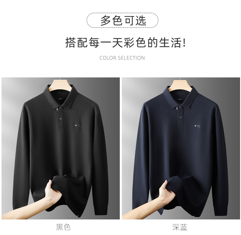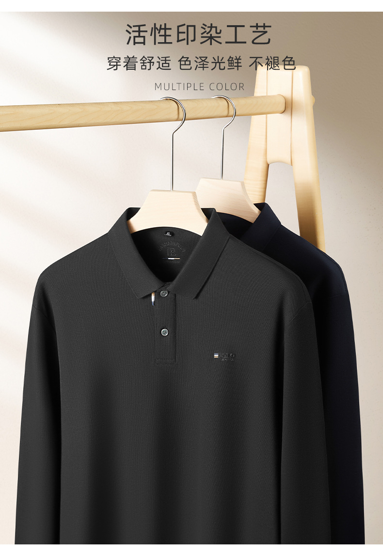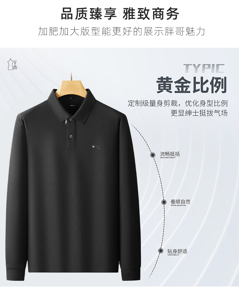 【100%棉】【DDP】大依优型大码男装内里磨毛长袖POLO加肥加大码商务休闲翻领纯棉长袖T恤打底衫