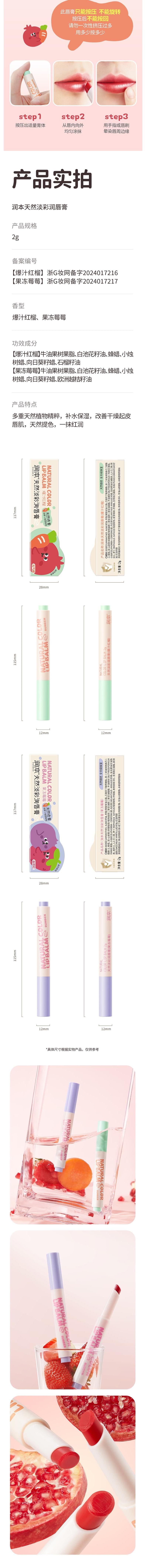 润本 天然淡彩润唇膏爆汁红榴2g 6974837769598