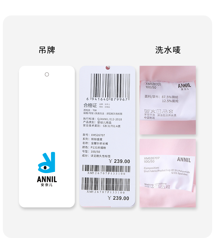 【实体店同款】男女童全腰针织长裤夏季新款安奈儿童装XM526707