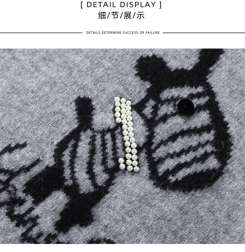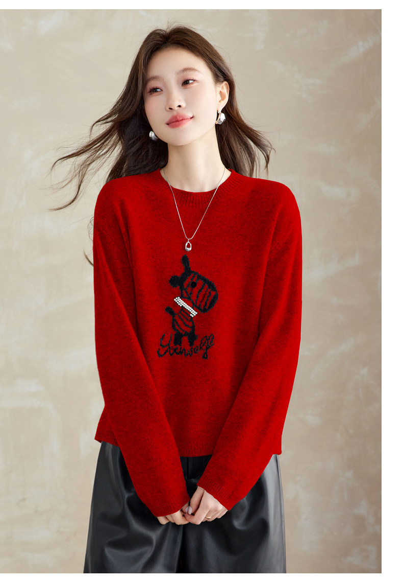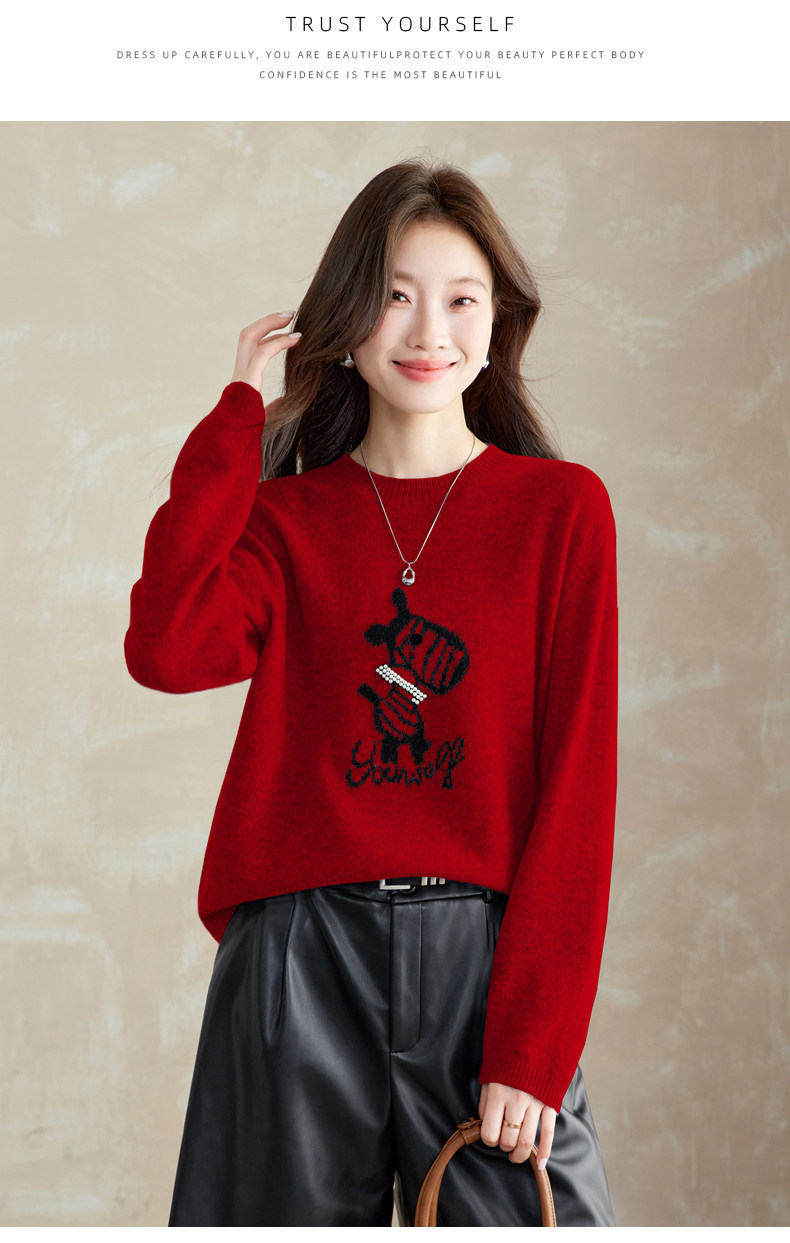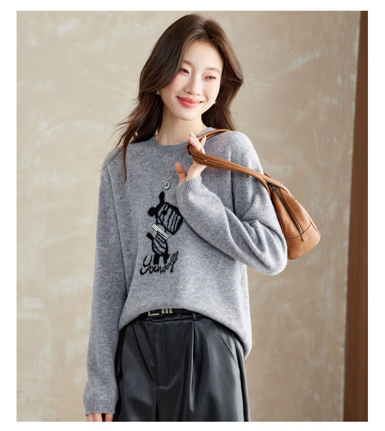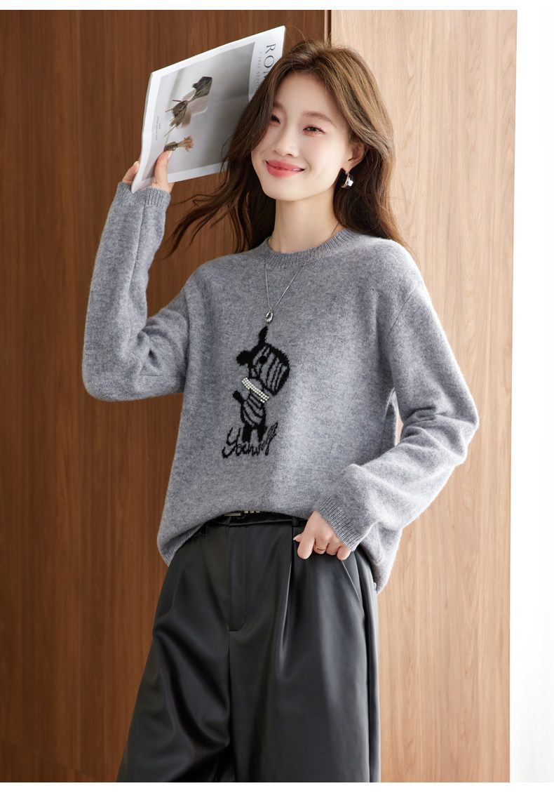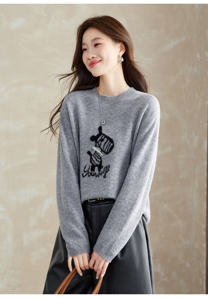 CC 8969卡通刺绣圆领毛衣宽松减龄针织衫羊毛上衣