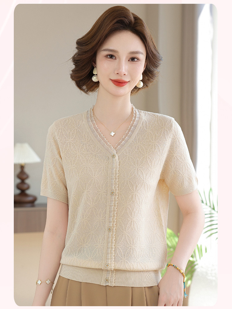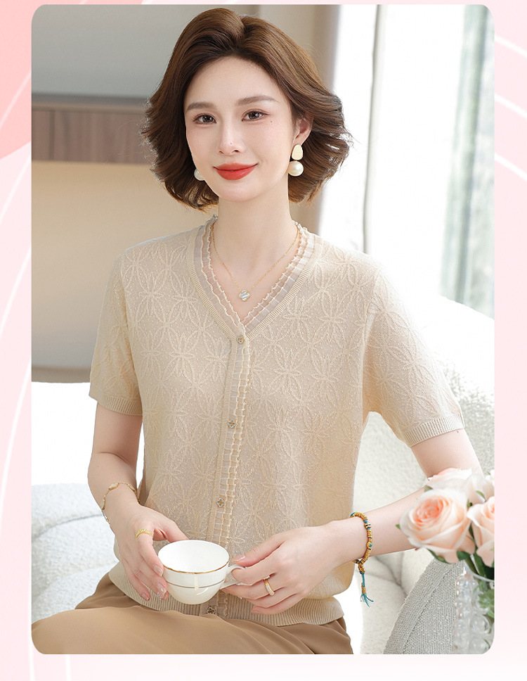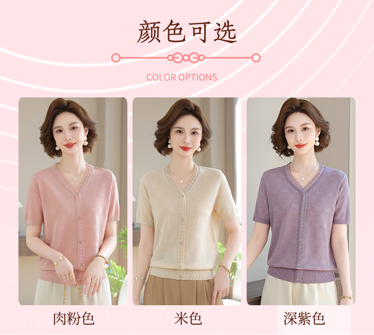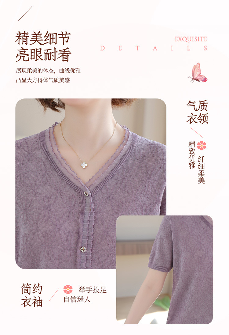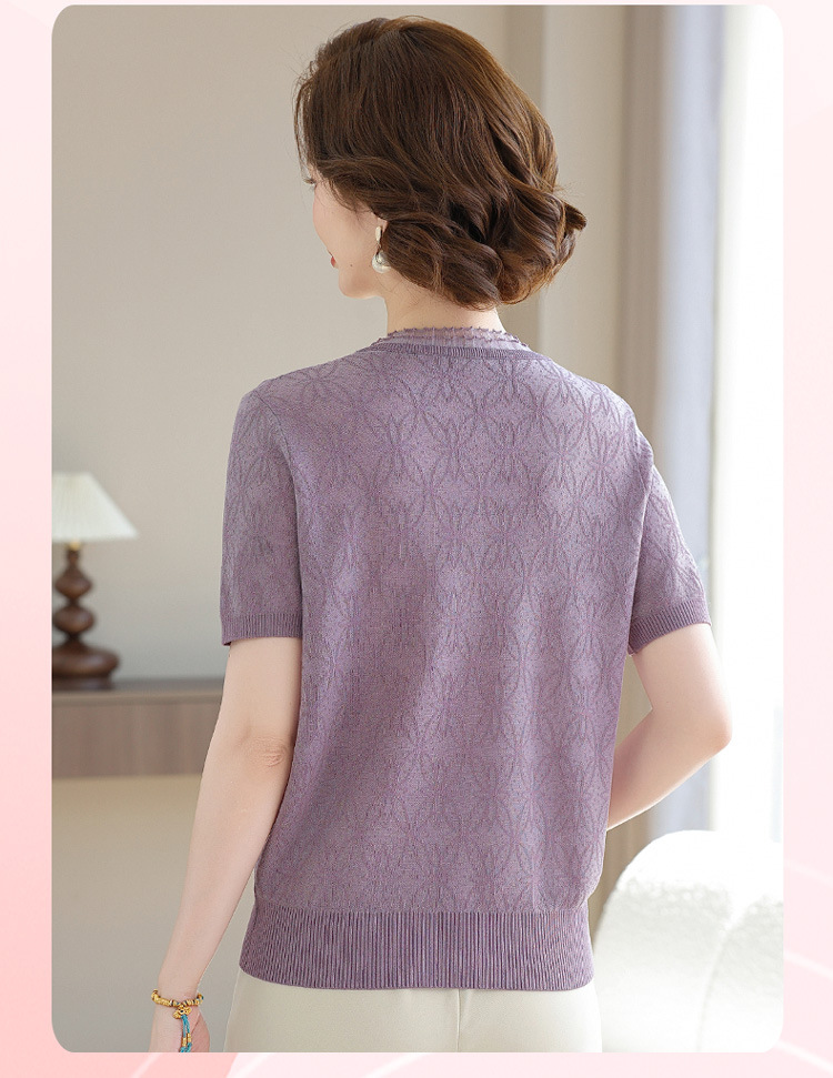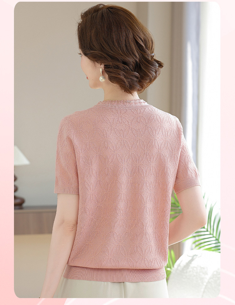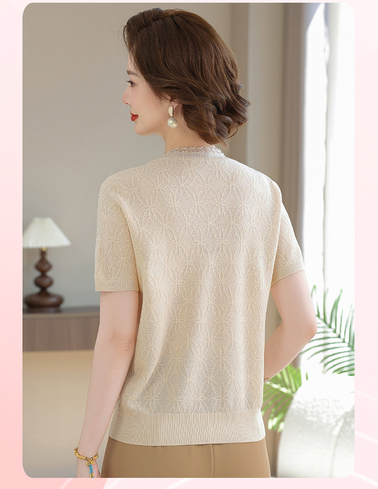 W086-8926-78-138年轻妈妈夏装冰丝短袖T恤小衫2025新款中老年女洋气减龄针织上衣
