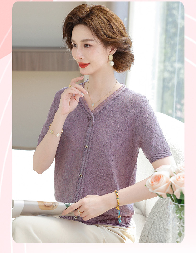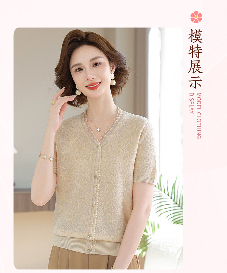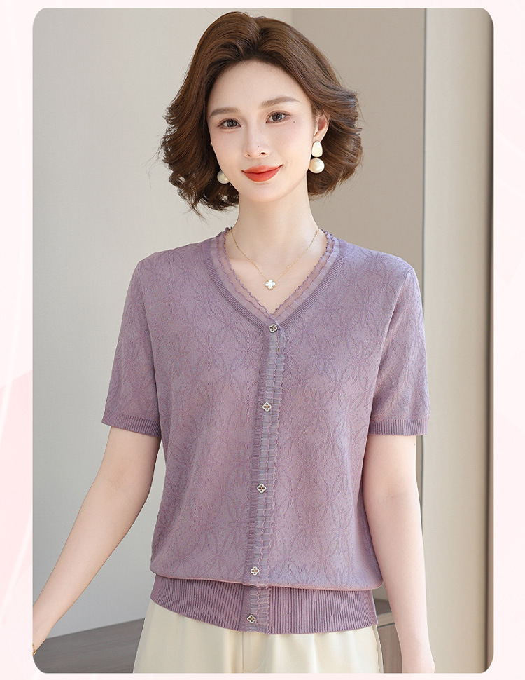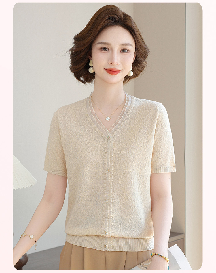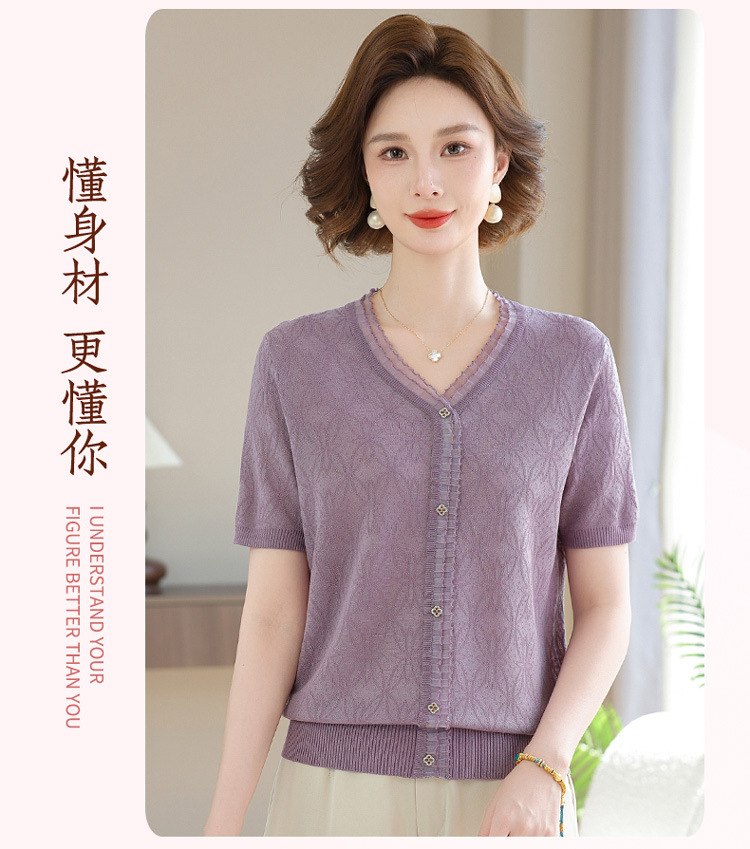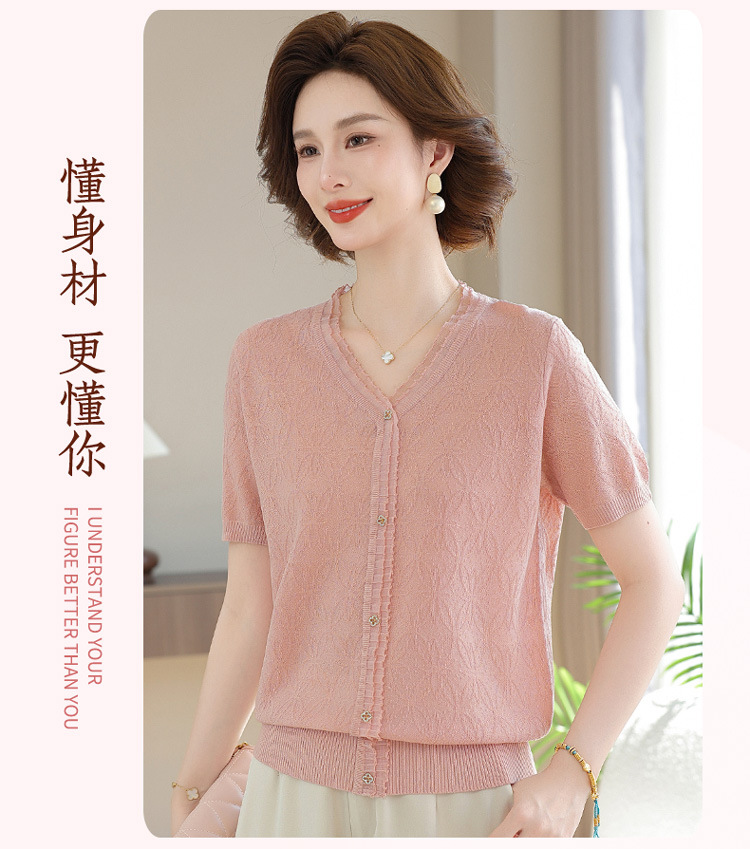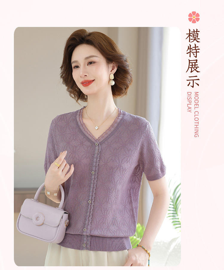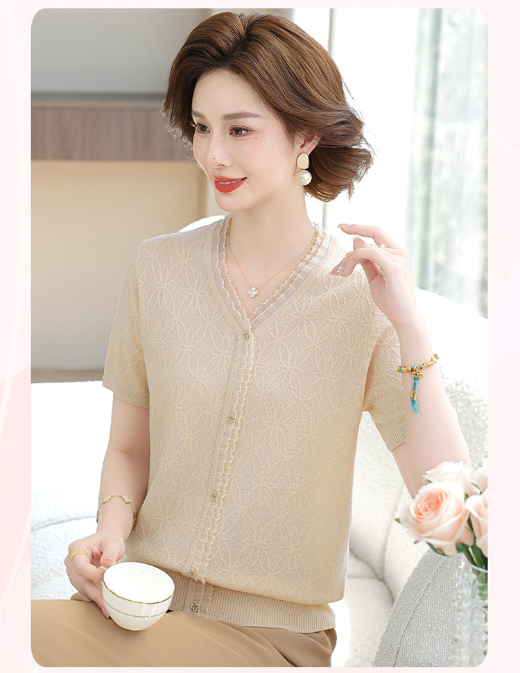 W086-8926-78-138年轻妈妈夏装冰丝短袖T恤小衫2025新款中老年女洋气减龄针织上衣