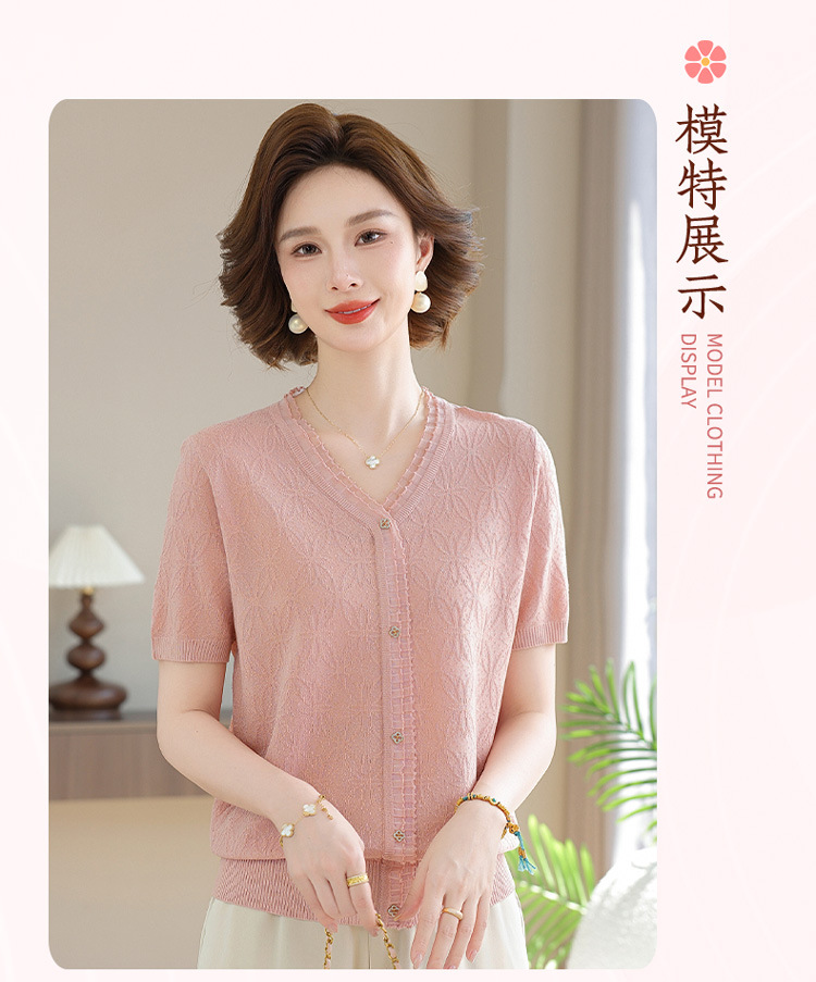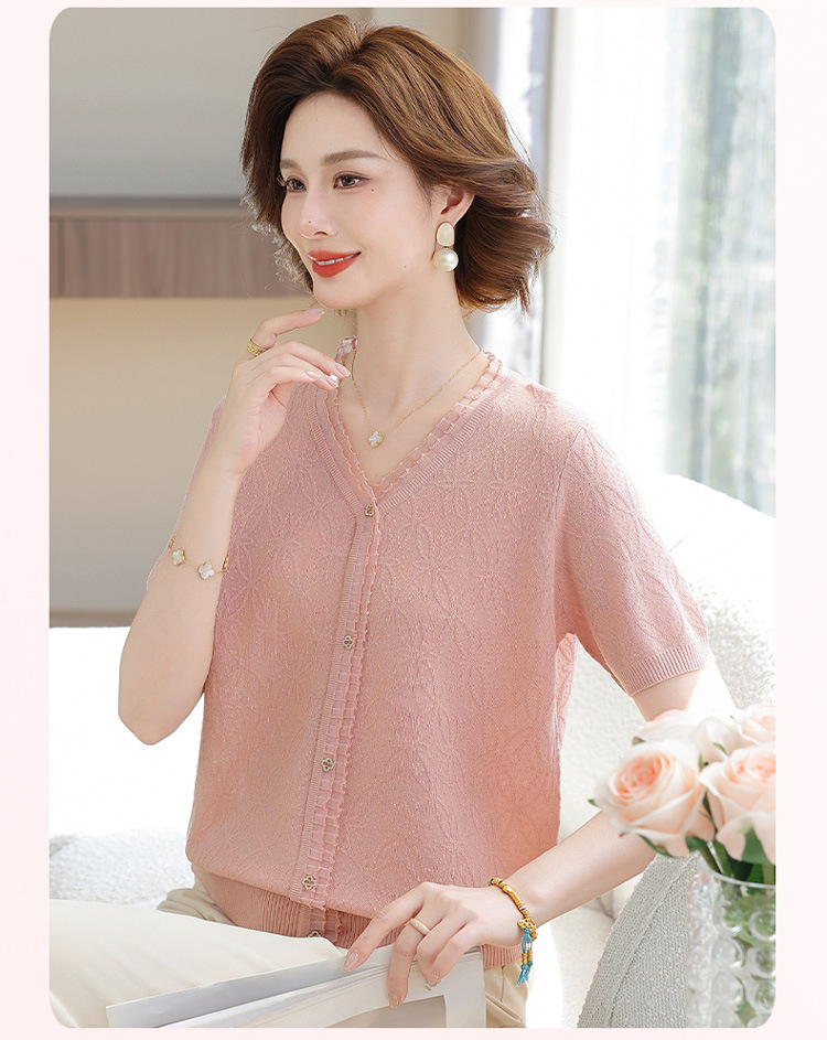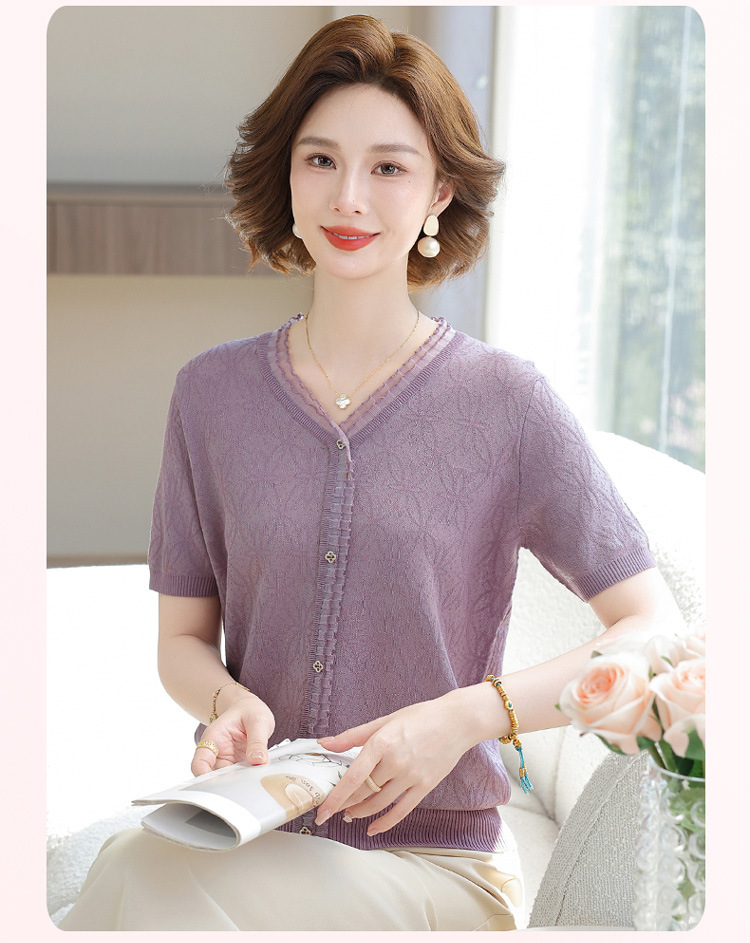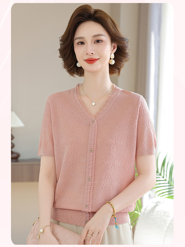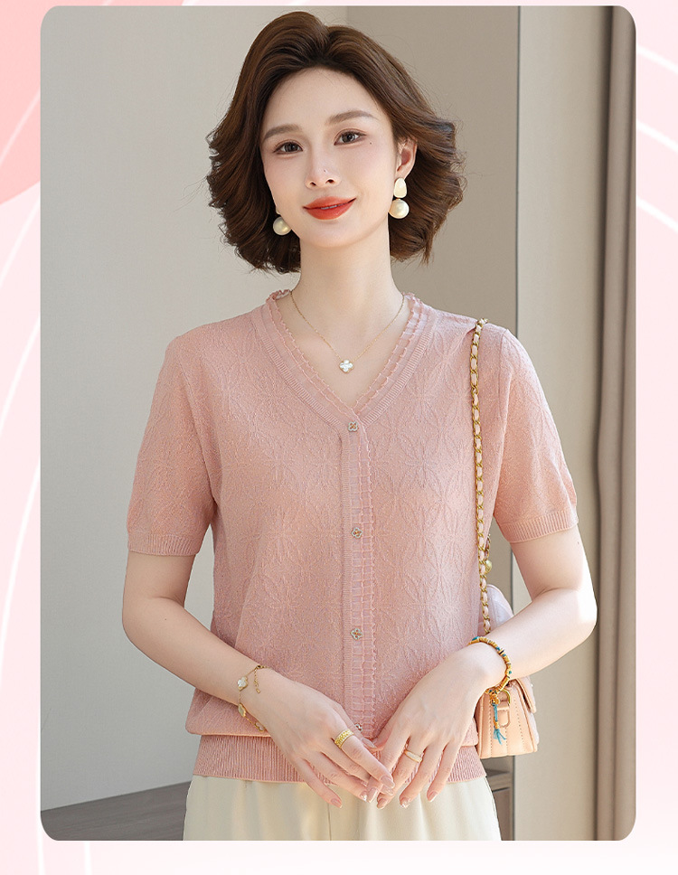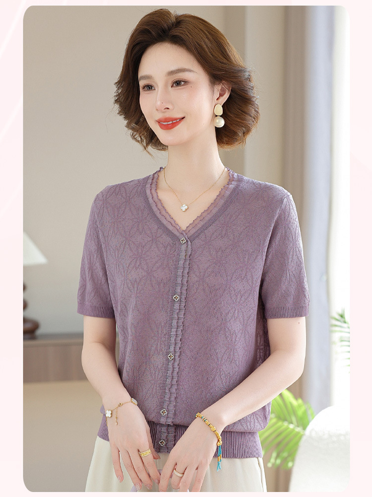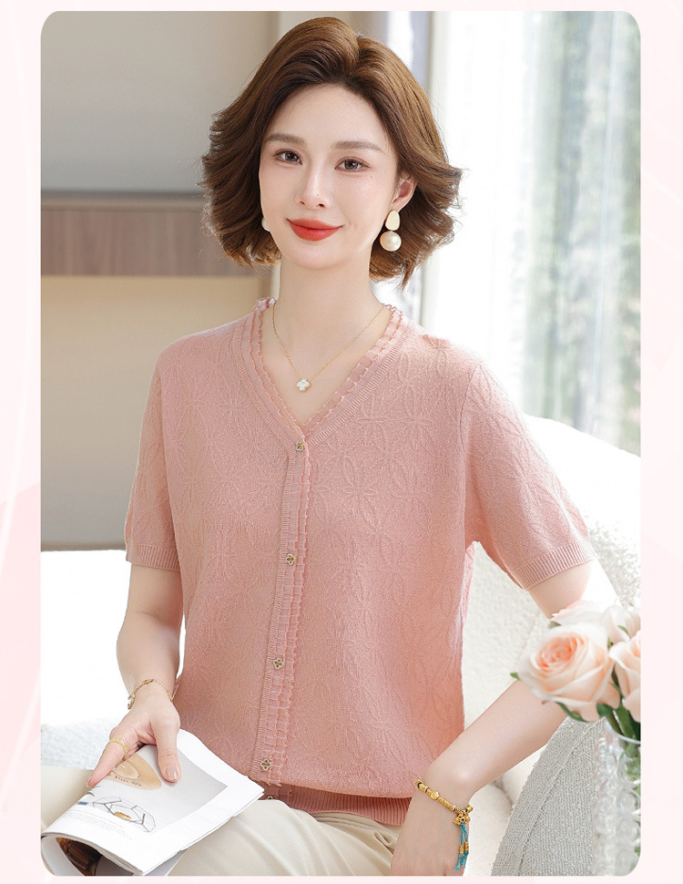 W086-8926-78-138年轻妈妈夏装冰丝短袖T恤小衫2025新款中老年女洋气减龄针织上衣