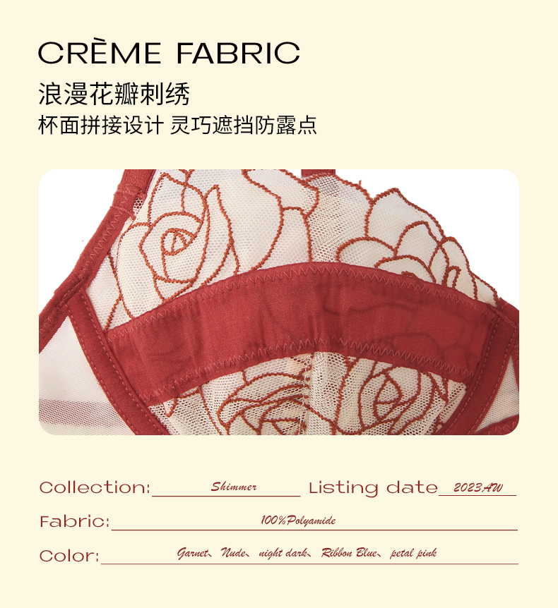 CremeSu 微光系列玫瑰刺绣钢圈内衣【该商品不支持用券】