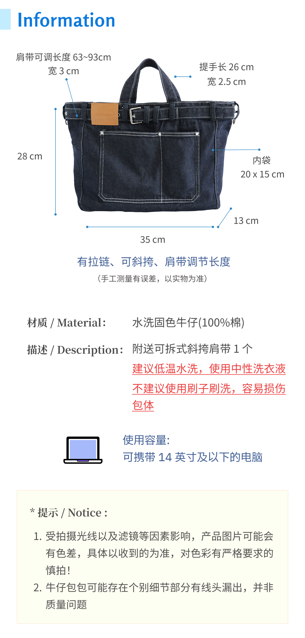 Maison Promenade 郁金香牛仔斜挎托特包