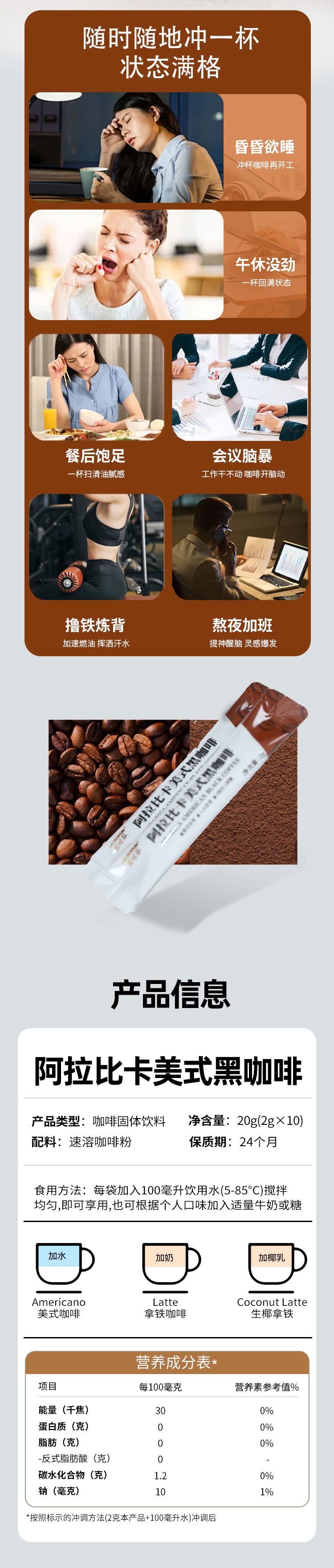 美可芬阿拉比卡美式黑咖啡10袋装(拍1发2)