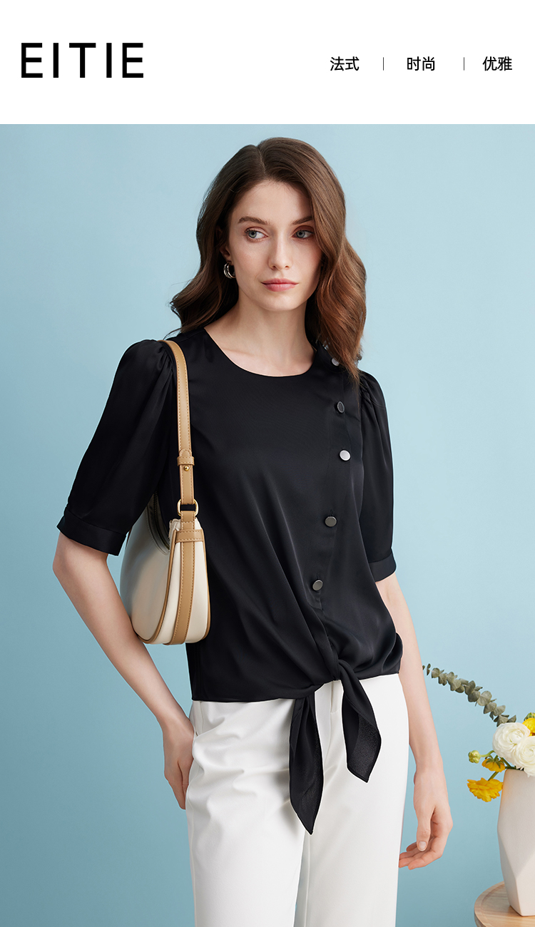 EITIE爱特爱夏季新品通勤百搭简约优雅小上衣7413109