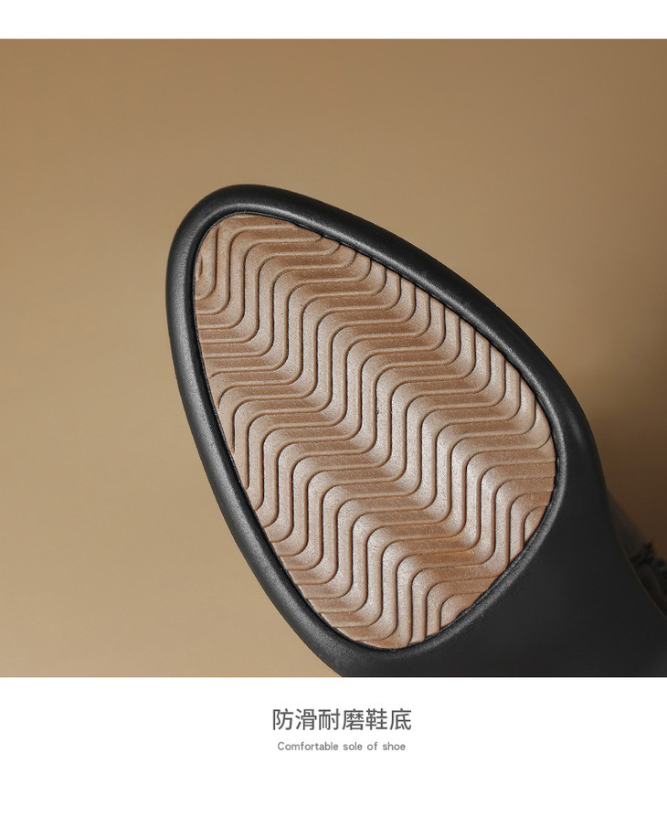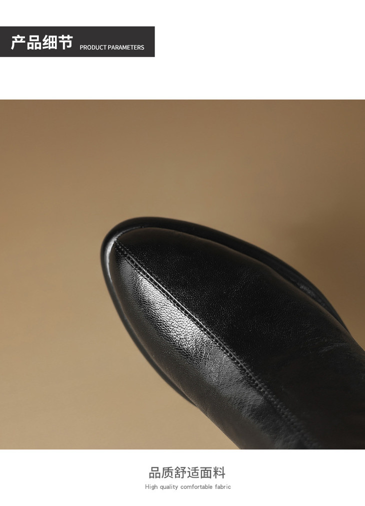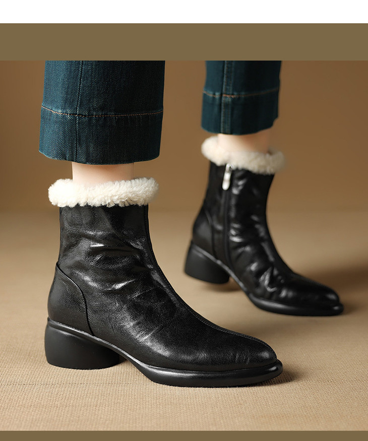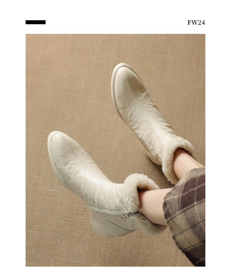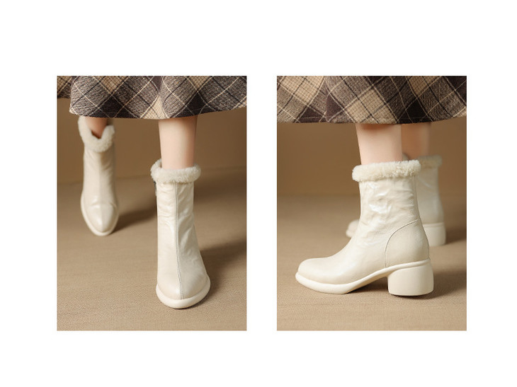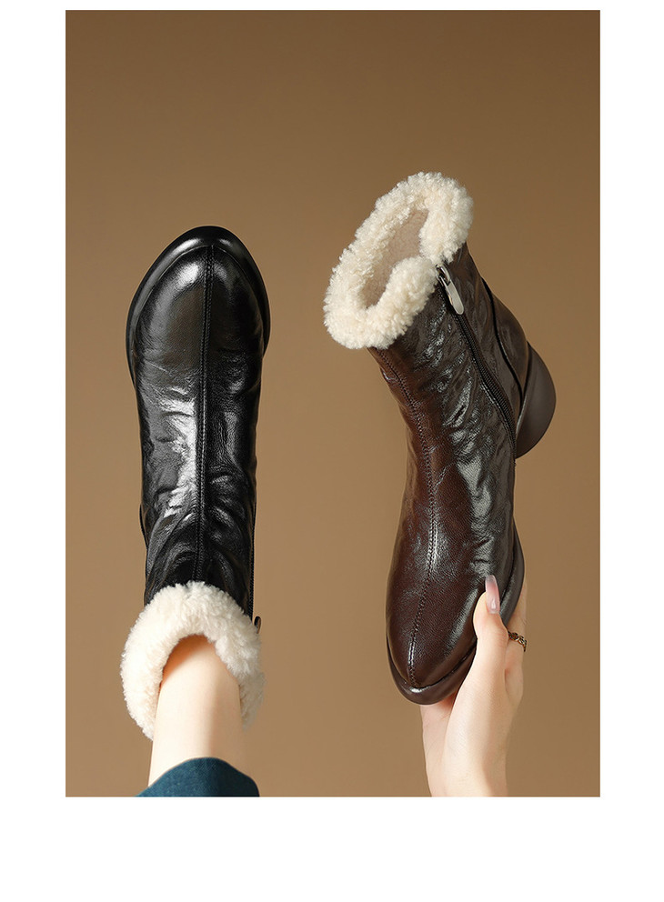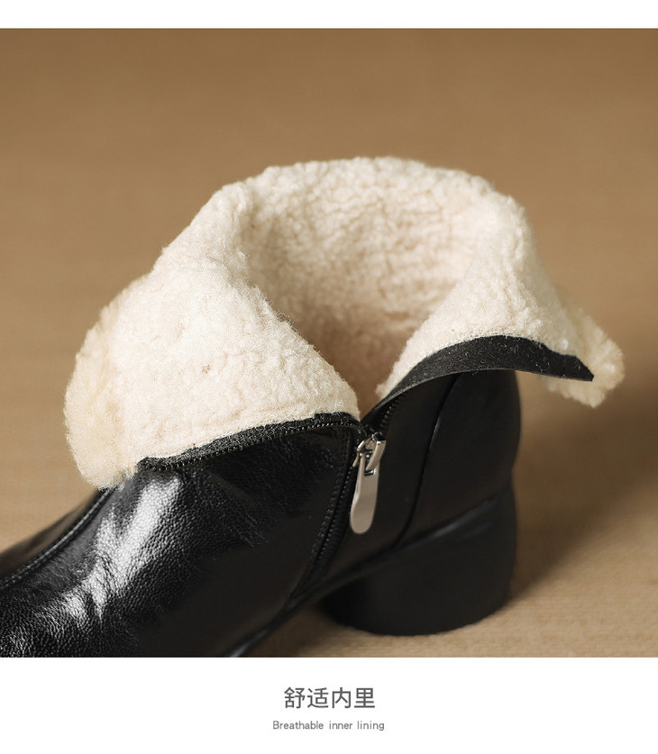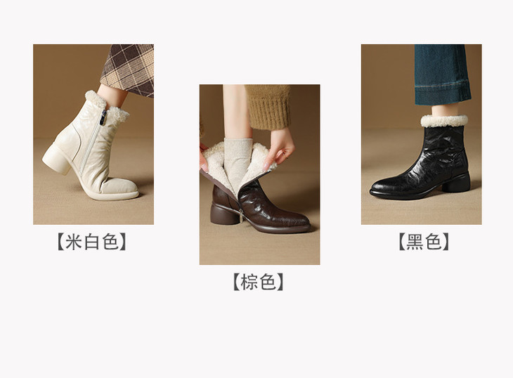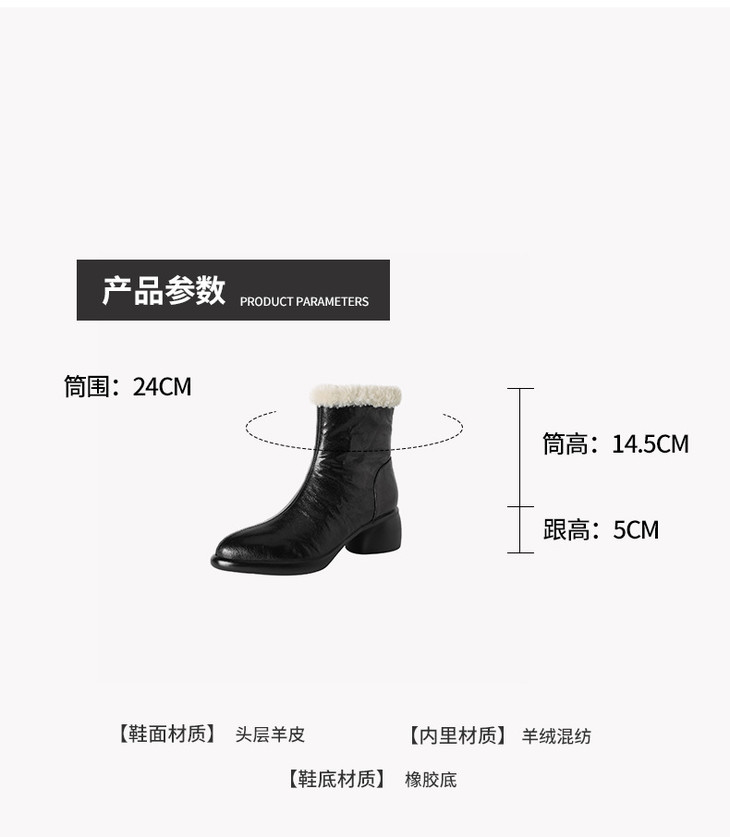 【预售5天】5cm中粗跟雪地靴女侧拉链羊毛混纺冬季新款百搭毛毛靴真皮英伦风&H967