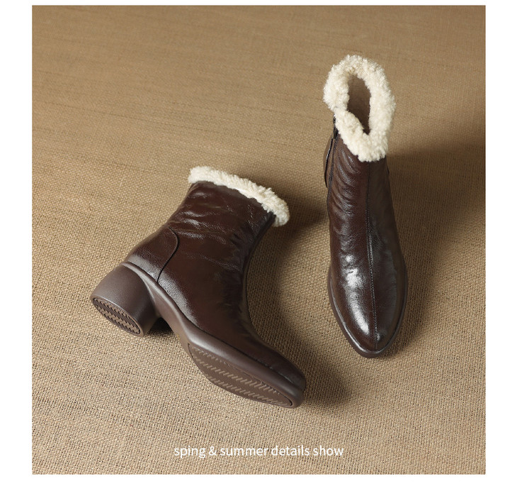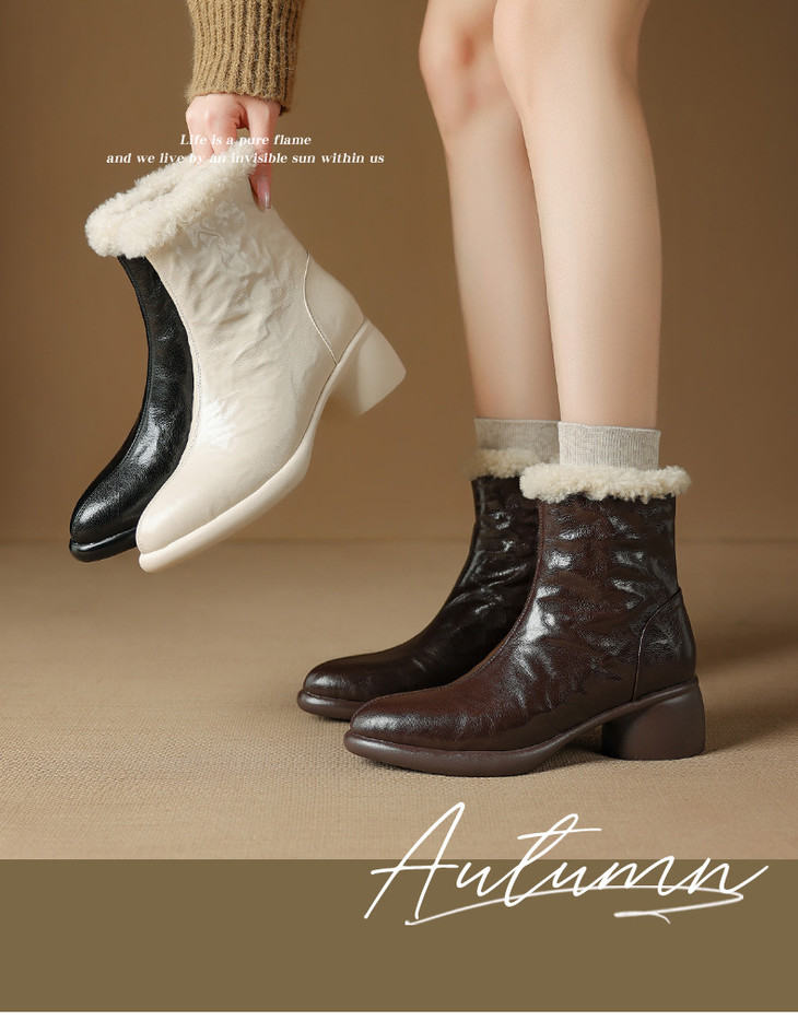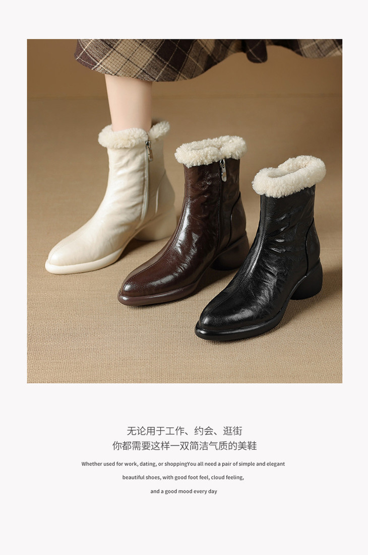 加绒保暖系带厚底休闲头层牛皮,复古平底毛毛棉鞋ZM258718