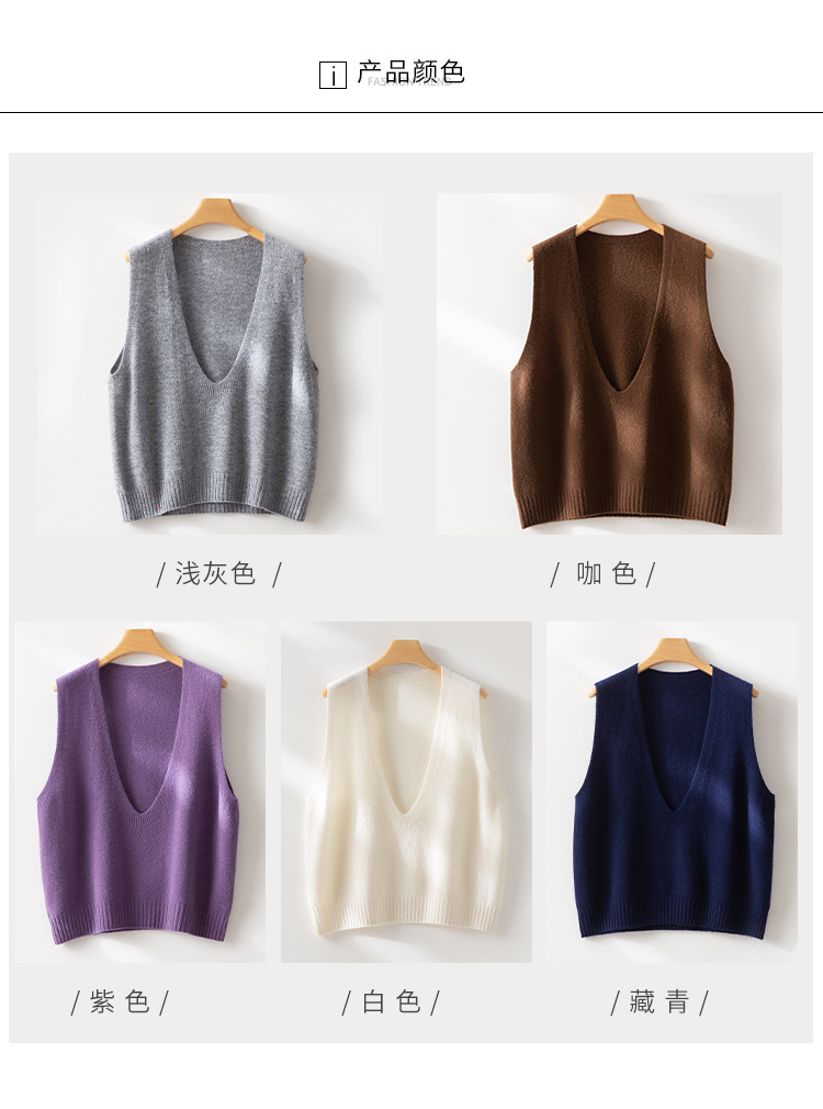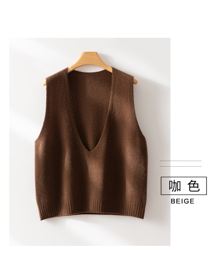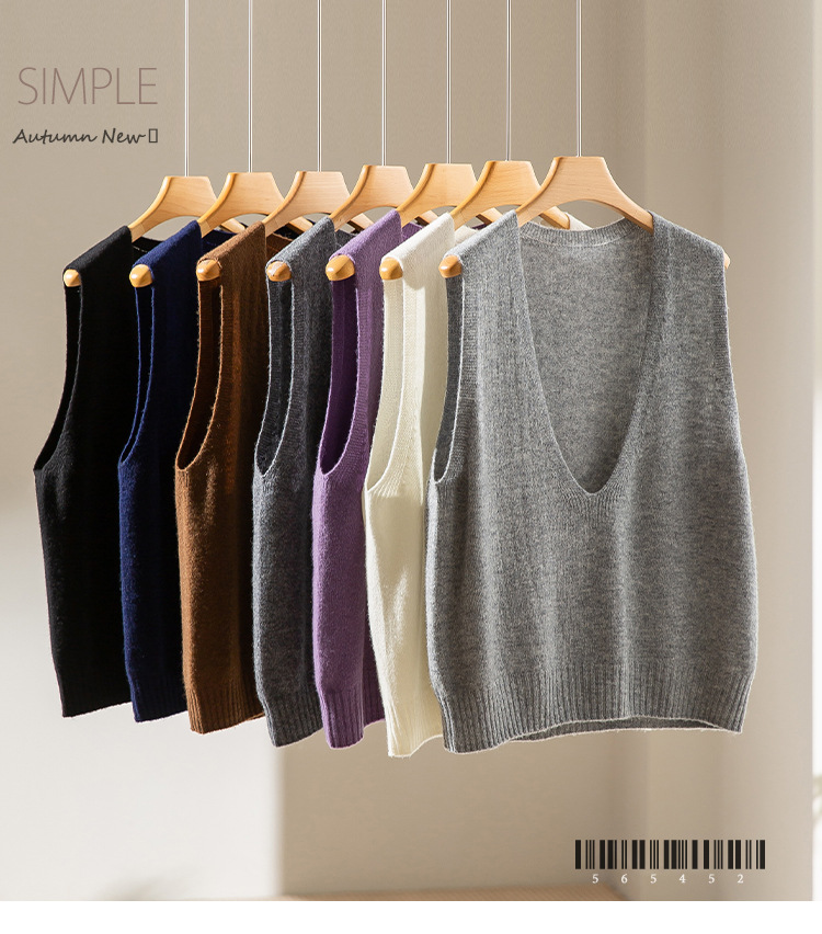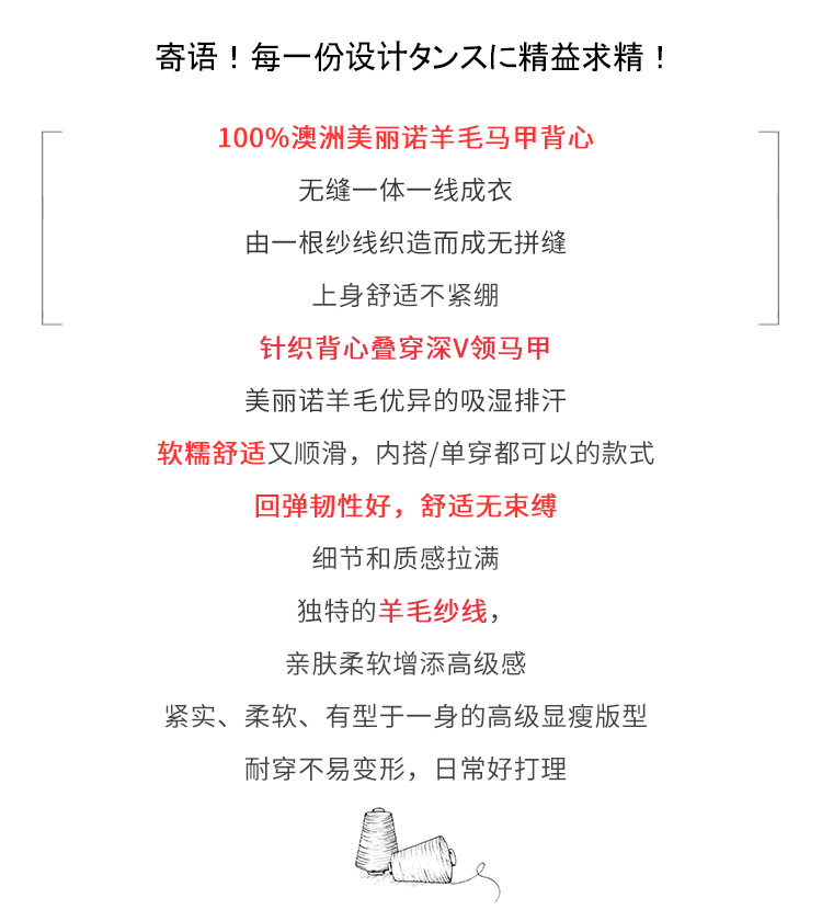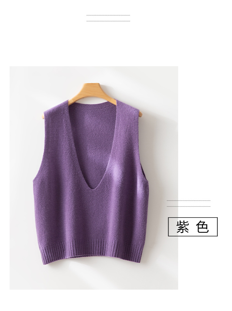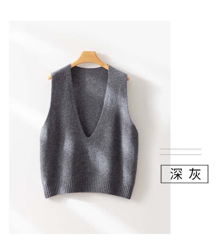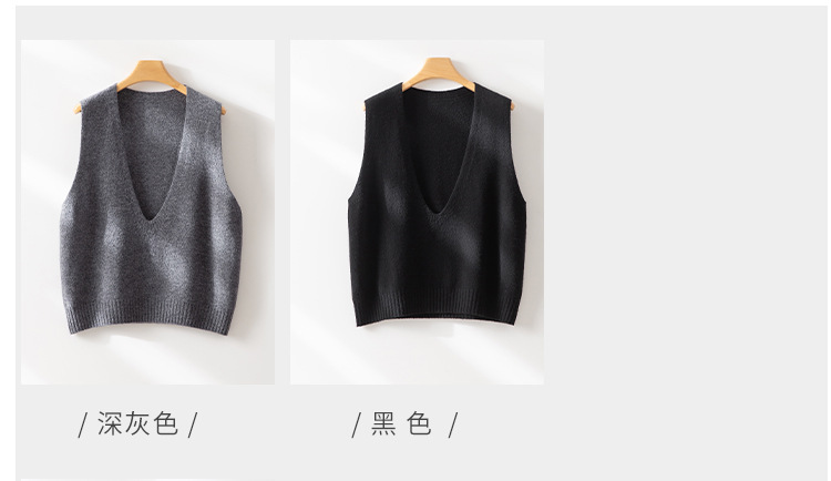 丁摩 澳洲美丽诺纯羊毛V领背心气质款百搭叠穿针织马甲坎肩女YS055