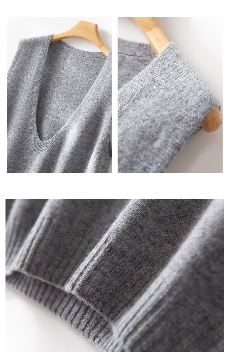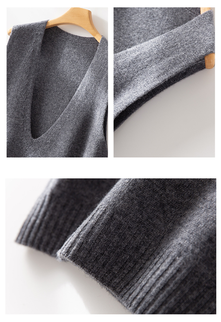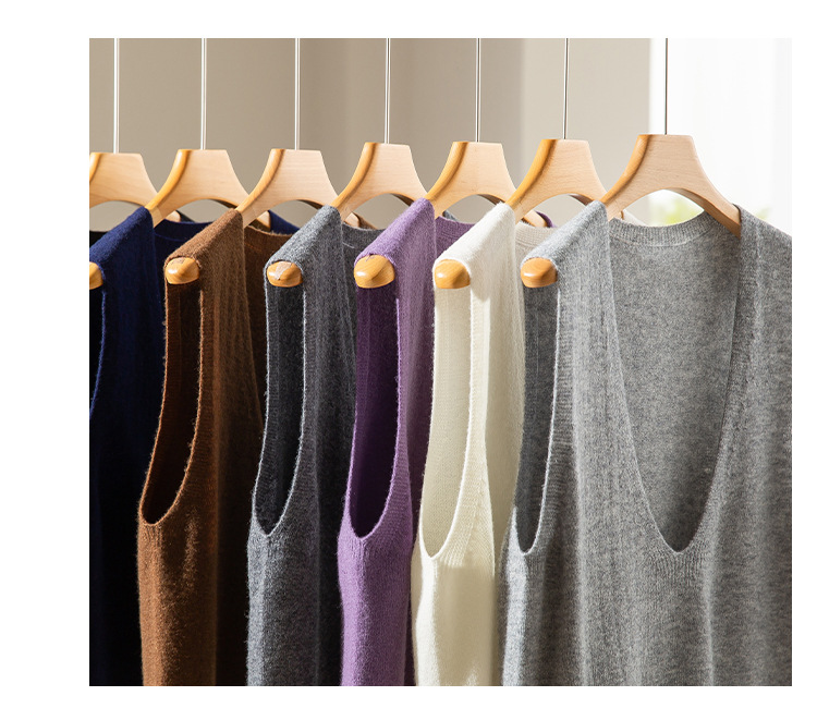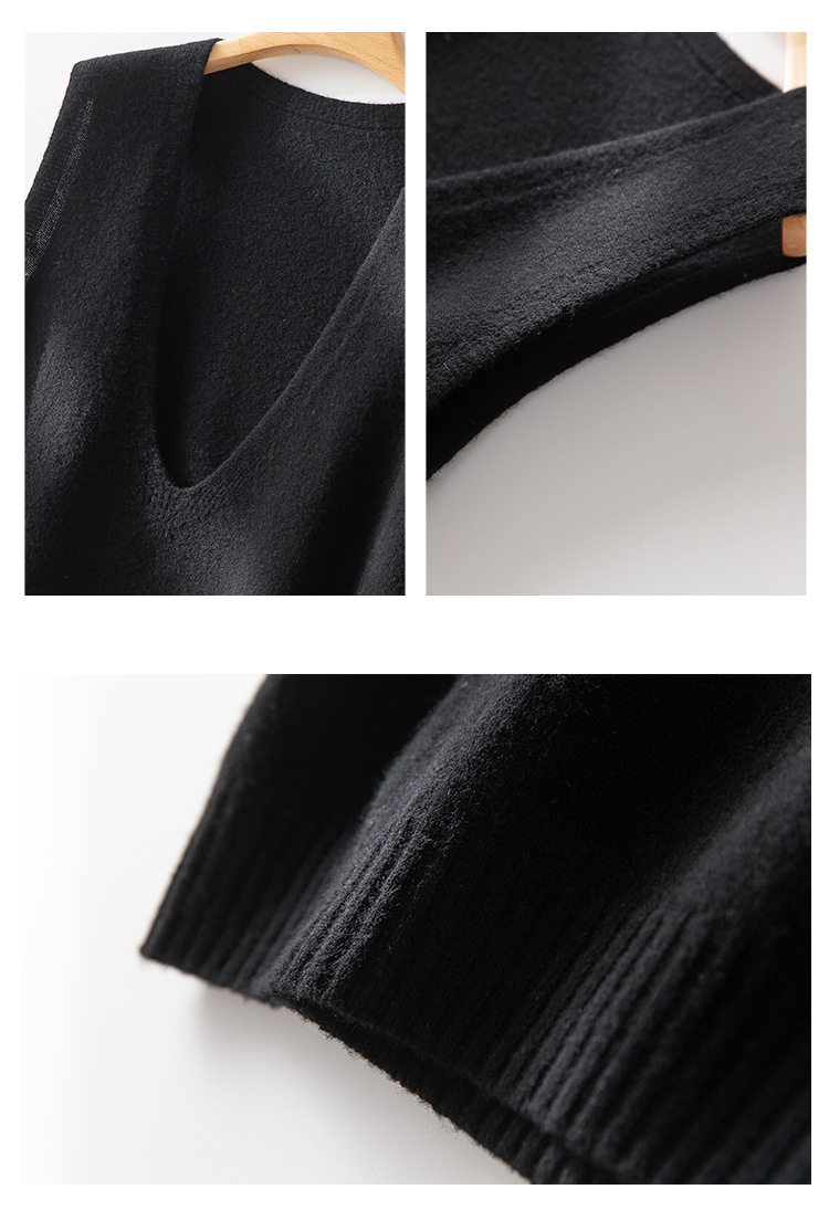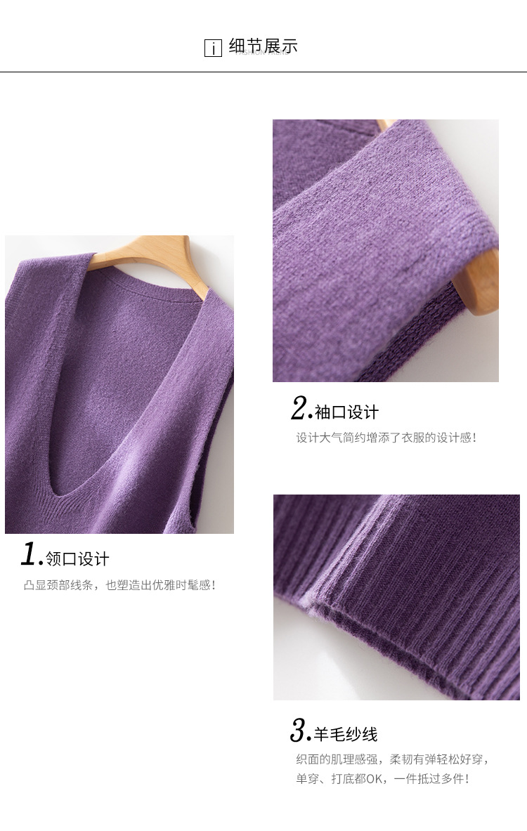 丁摩 澳洲美丽诺纯羊毛V领背心气质款百搭叠穿针织马甲坎肩女YS055