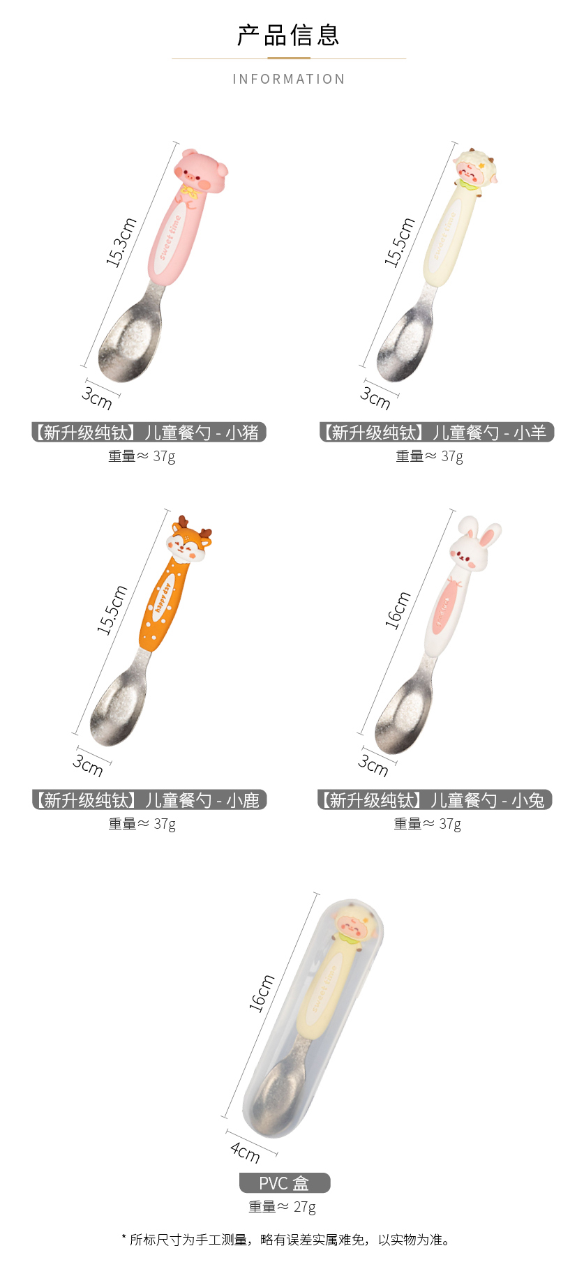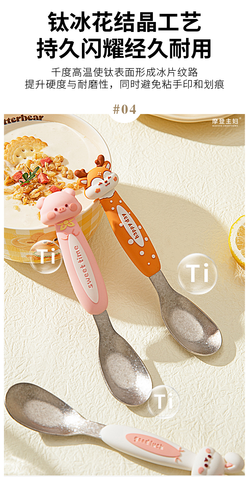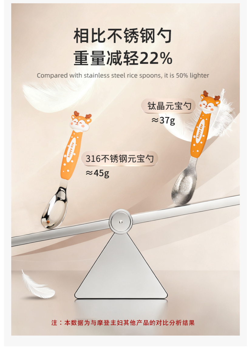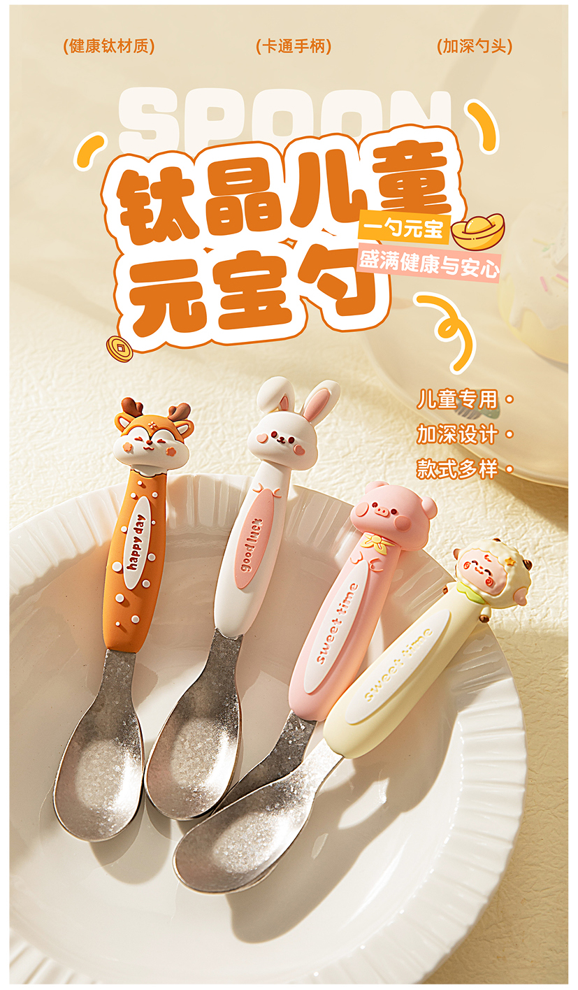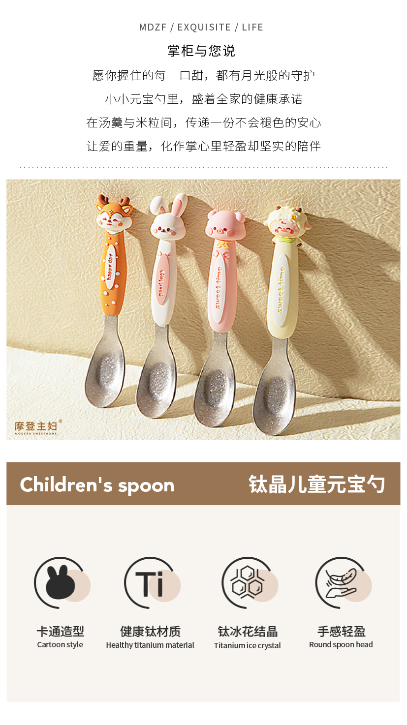 摩登主妇纯钛元宝勺儿童勺子家用汤匙个人专用吃饭调羹宝宝小勺子