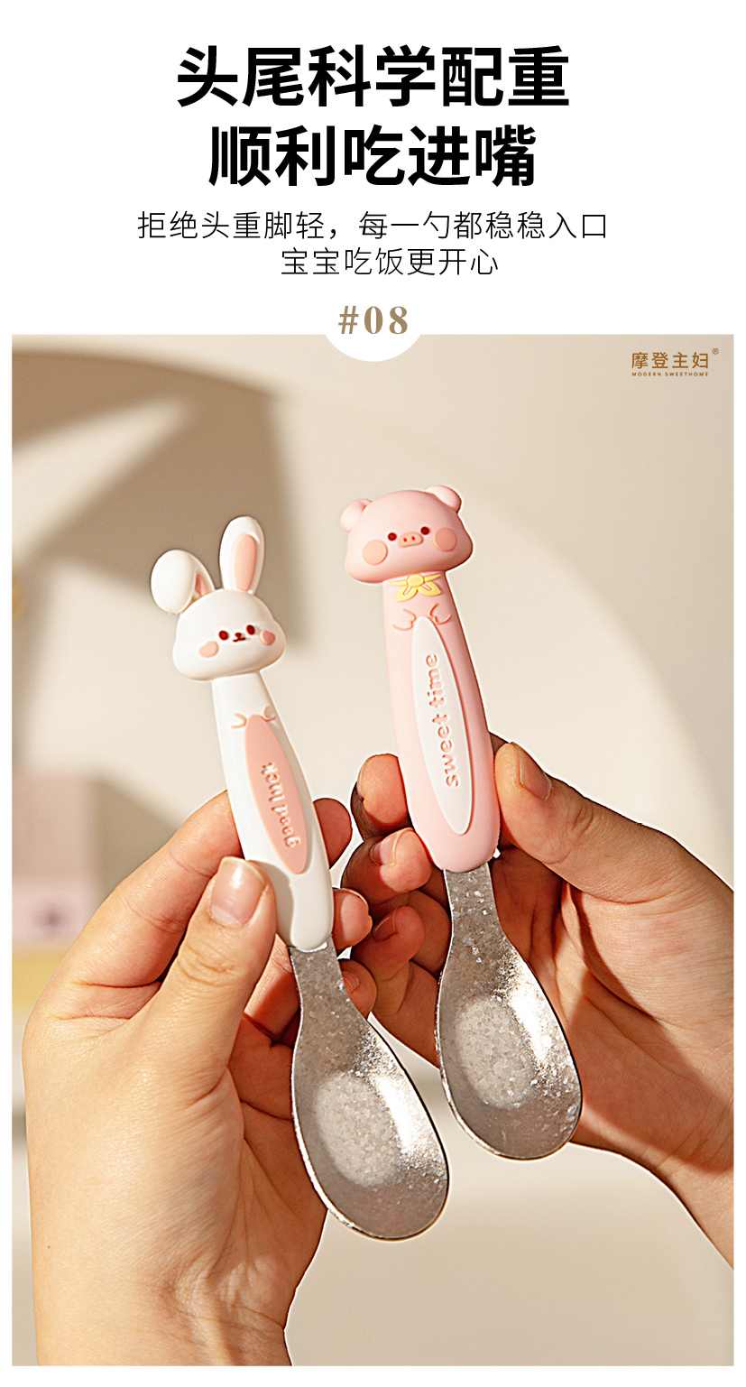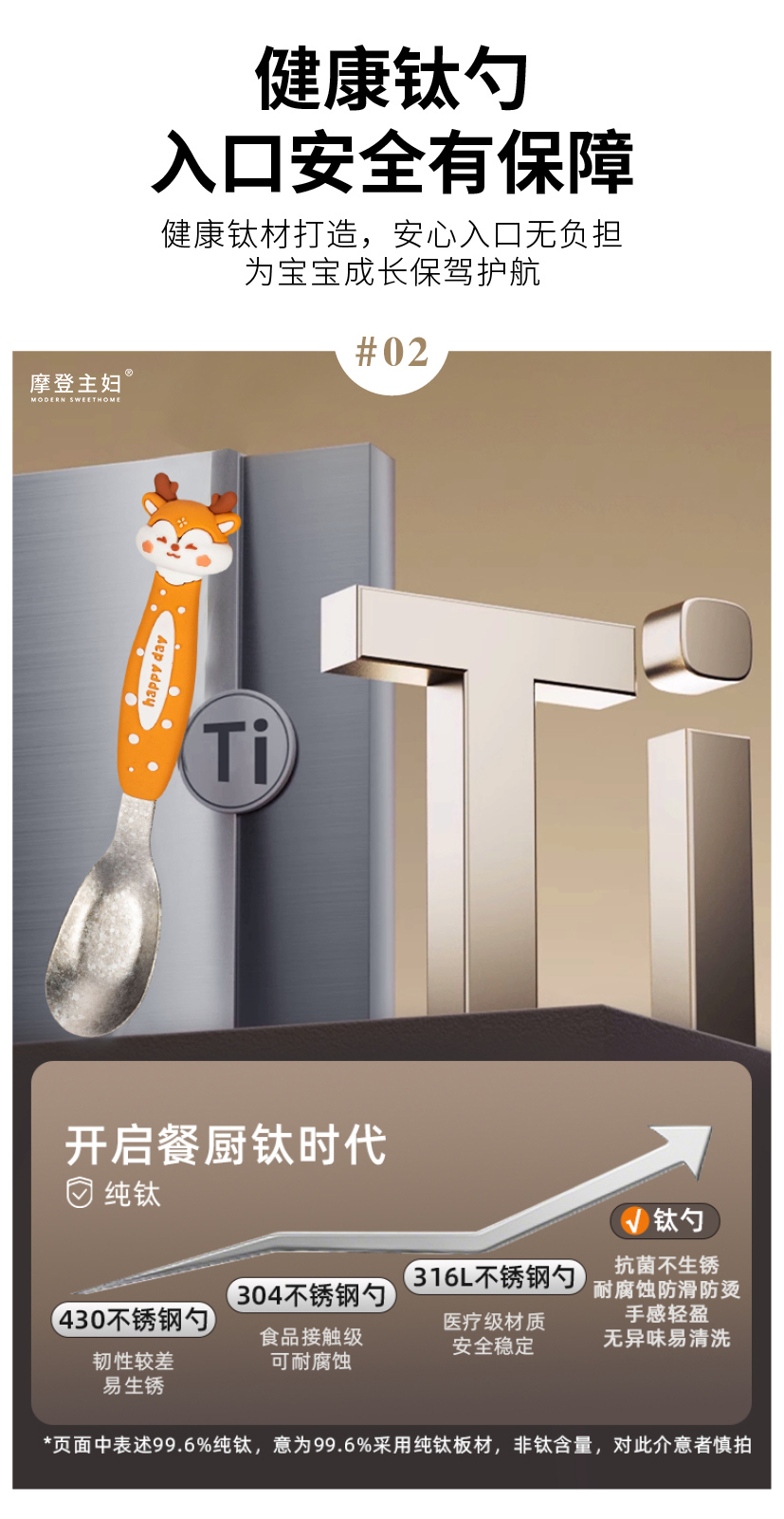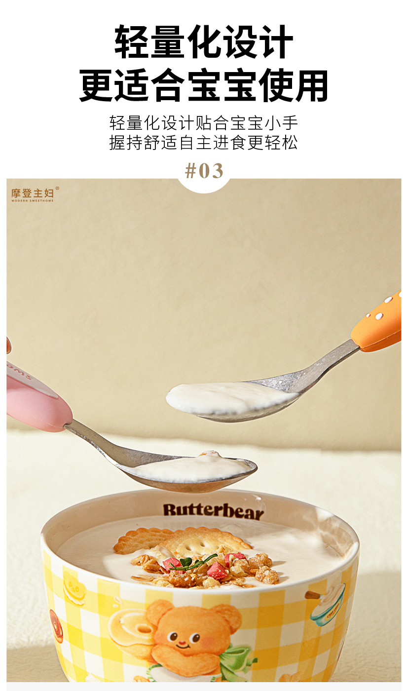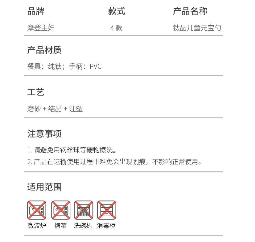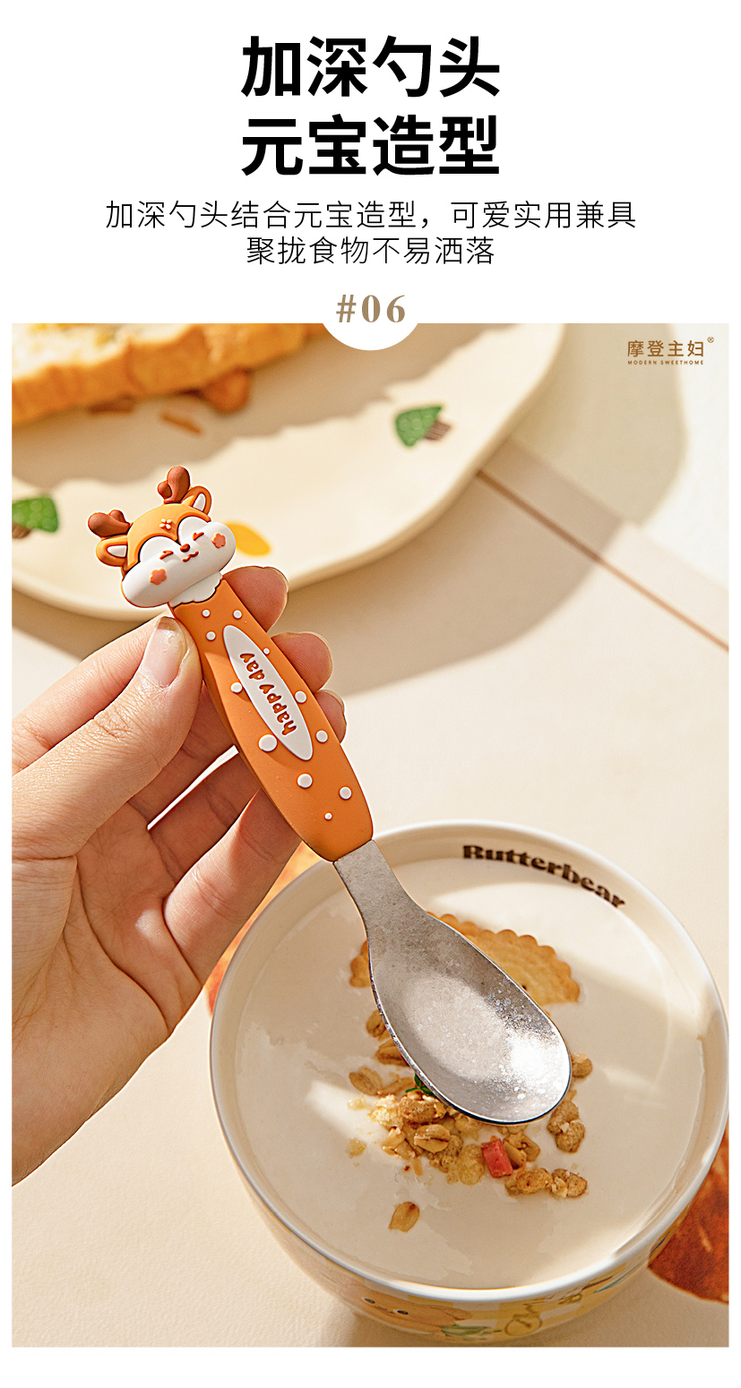 摩登主妇纯钛元宝勺儿童勺子家用汤匙个人专用吃饭调羹宝宝小勺子