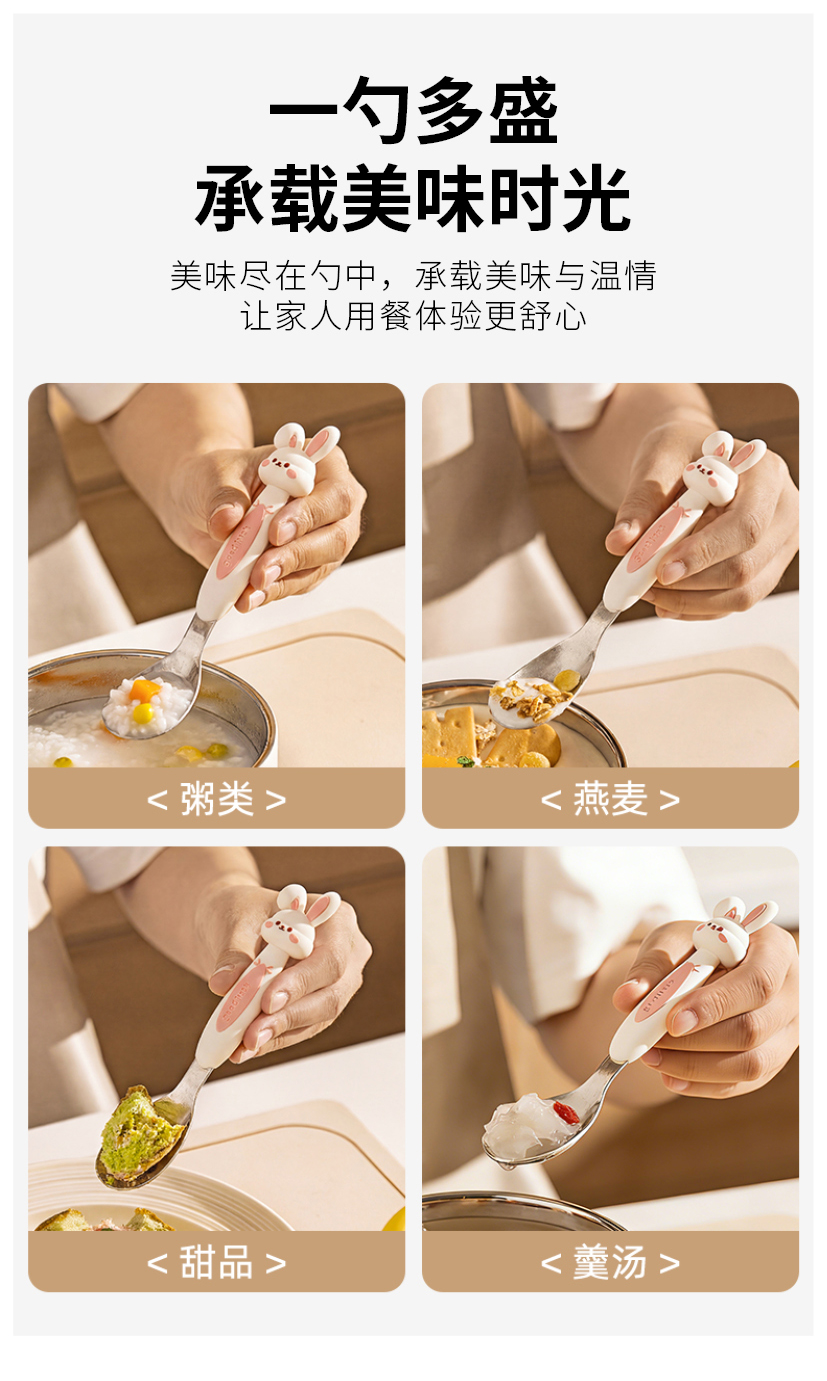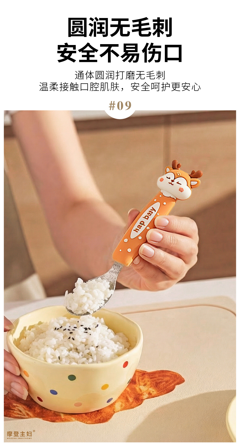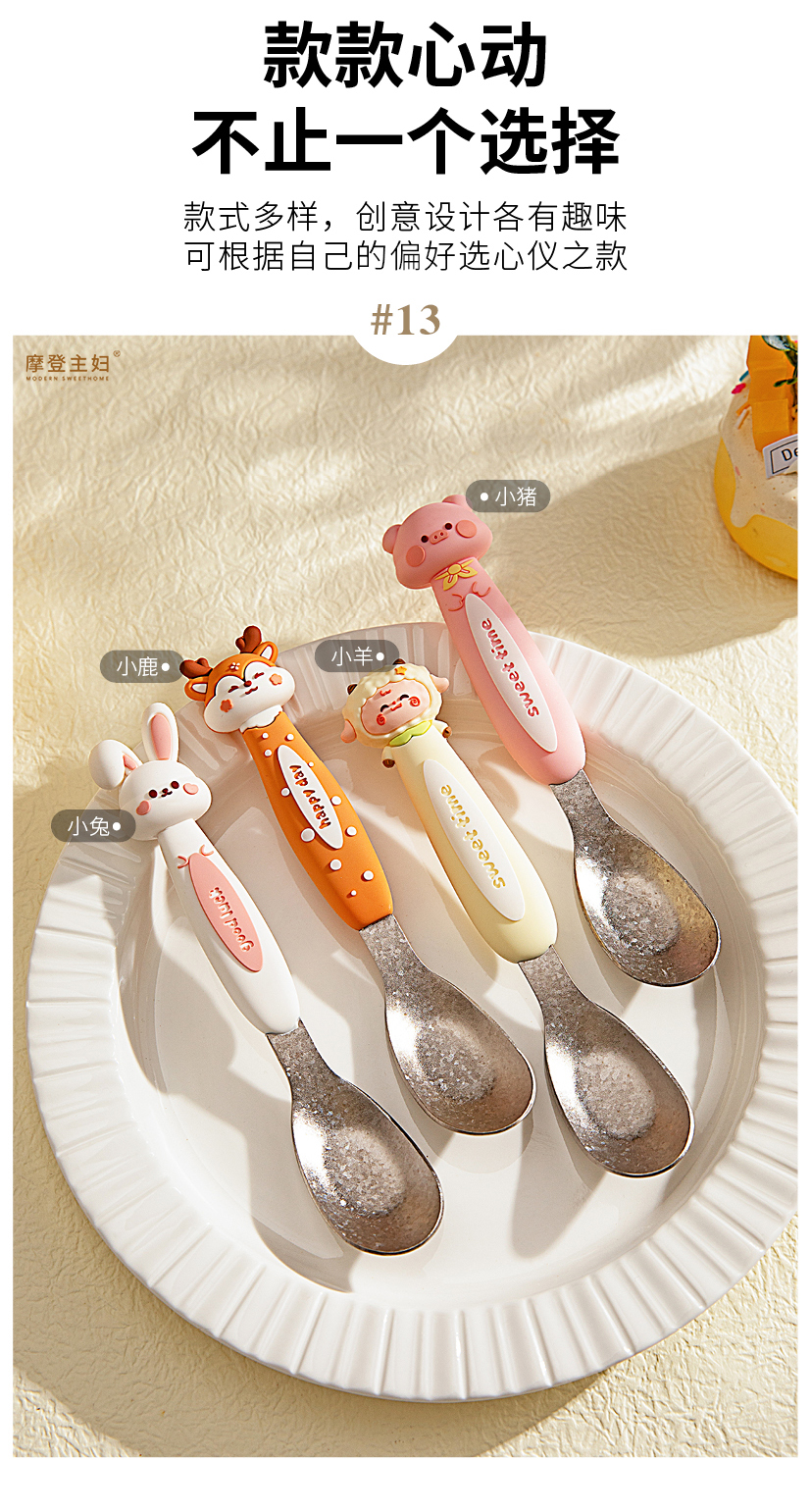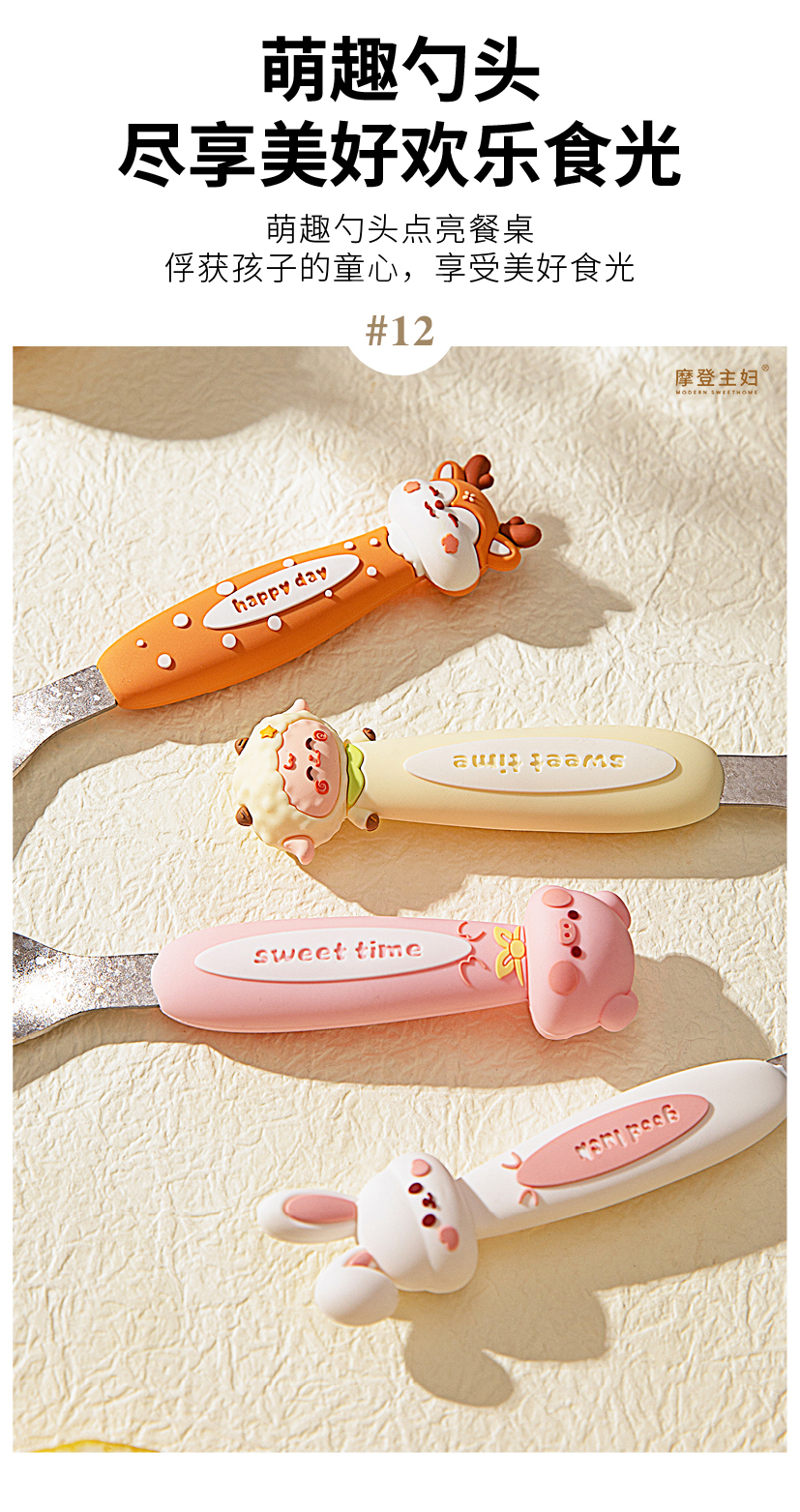 摩登主妇纯钛元宝勺儿童勺子家用汤匙个人专用吃饭调羹宝宝小勺子