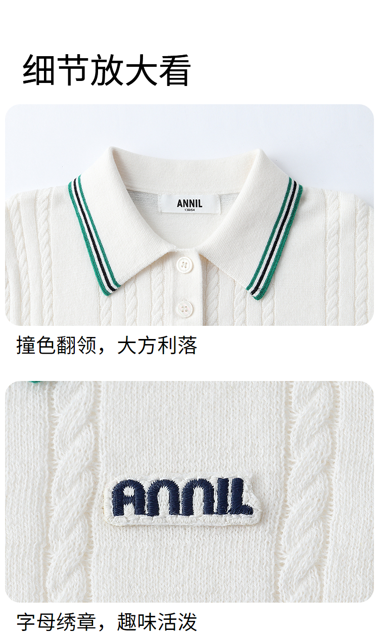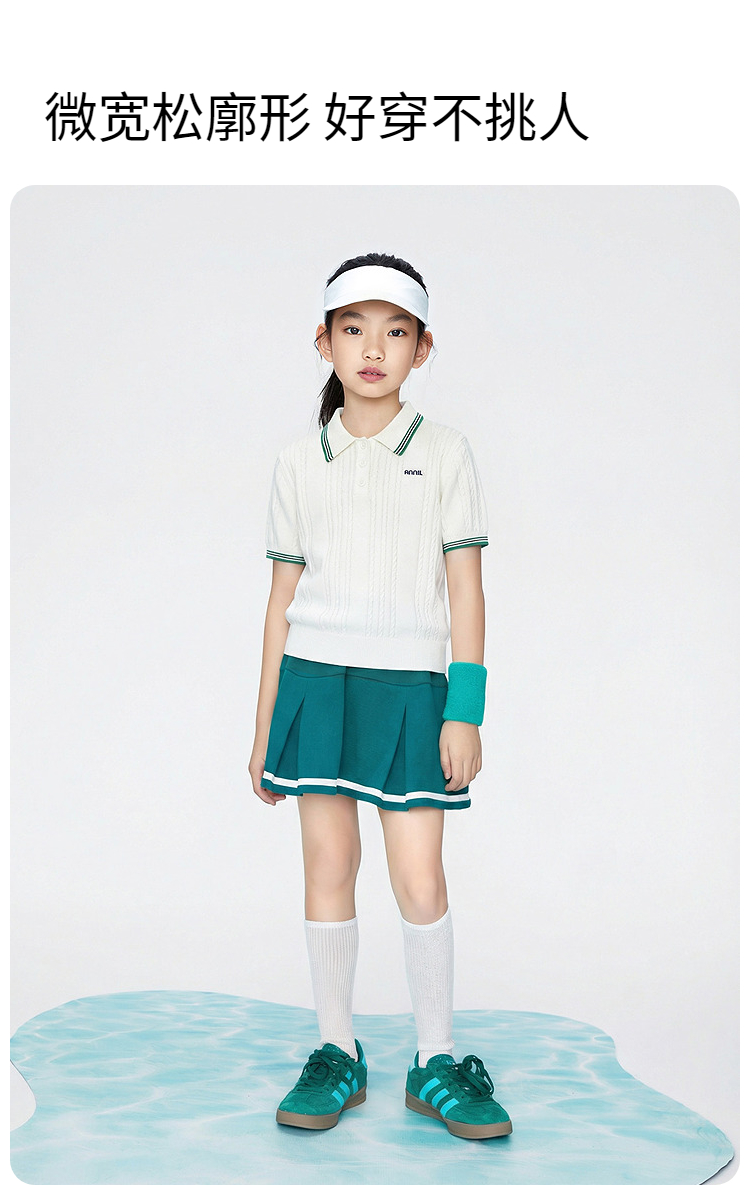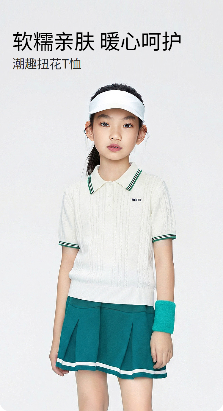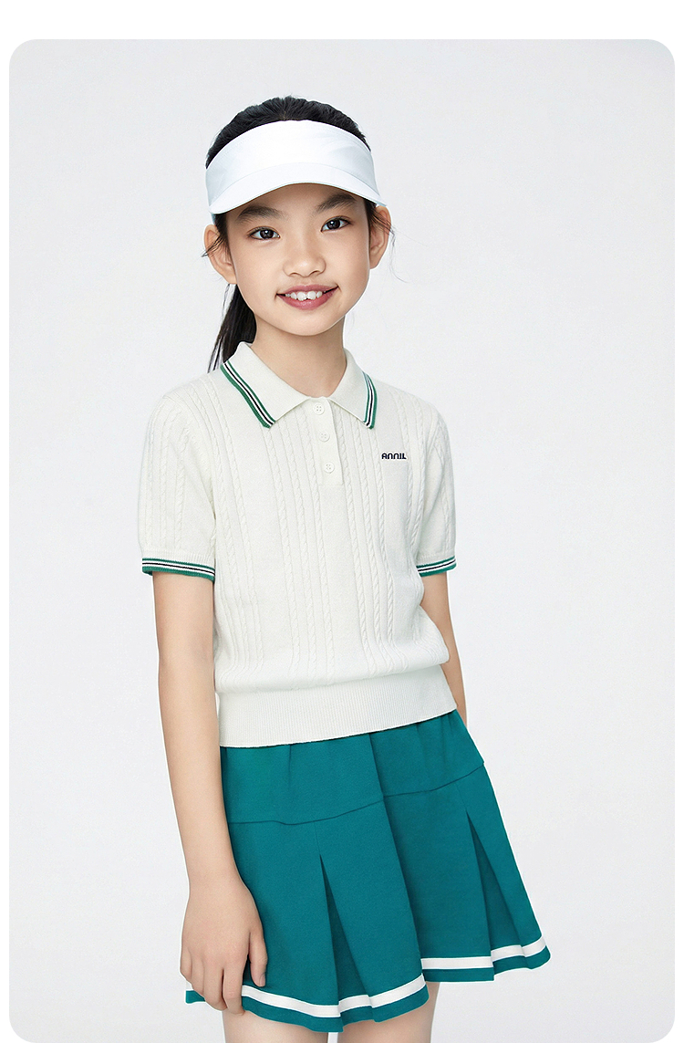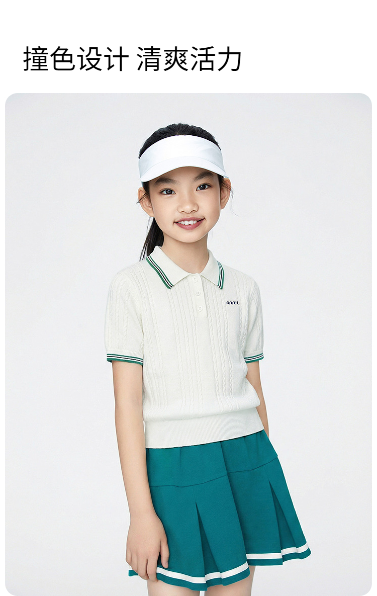 女童翻领短袖针织衫夏季新款安奈儿童装EG624679