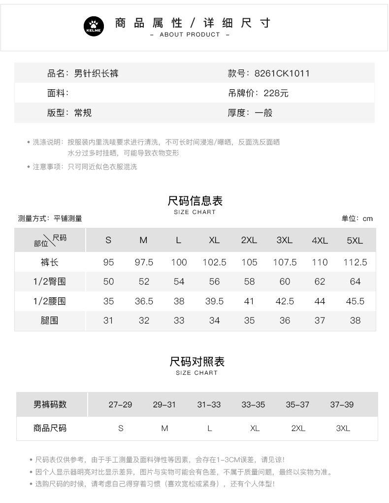 卡尔美针织运动裤男2022秋季新款足球训练收腿长裤束脚裤女