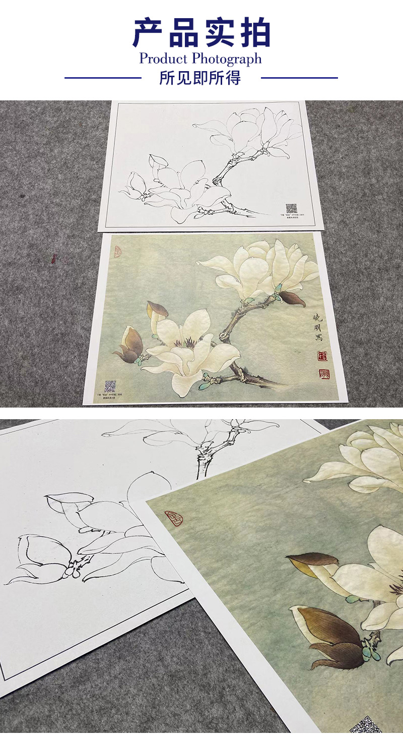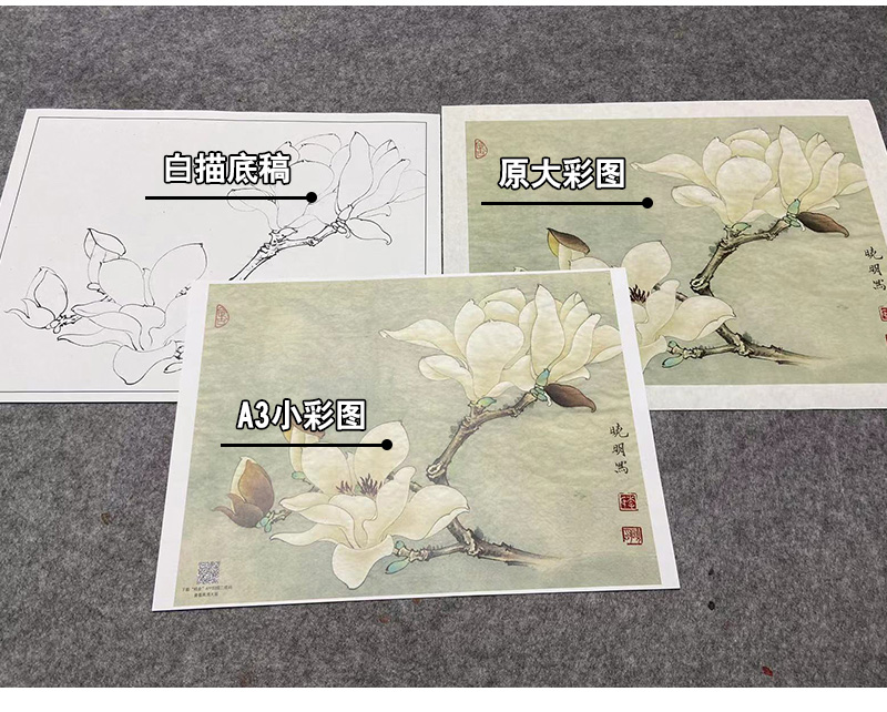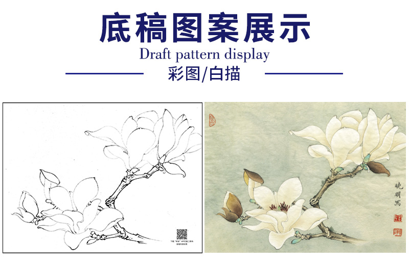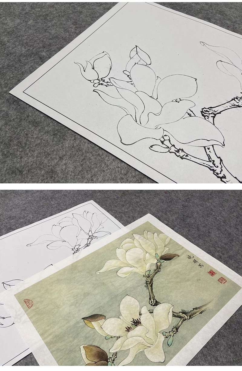 【大彩图】李晓明工笔画白描底稿小品《白玉兰》玉兰花临摹勾线花鸟线稿K101