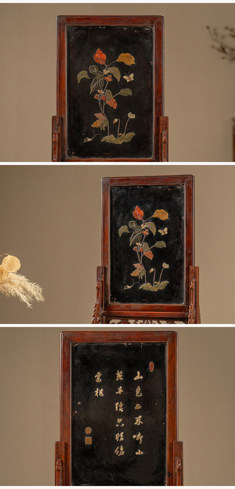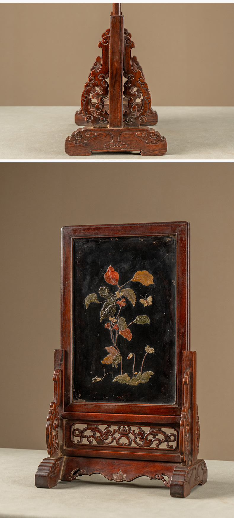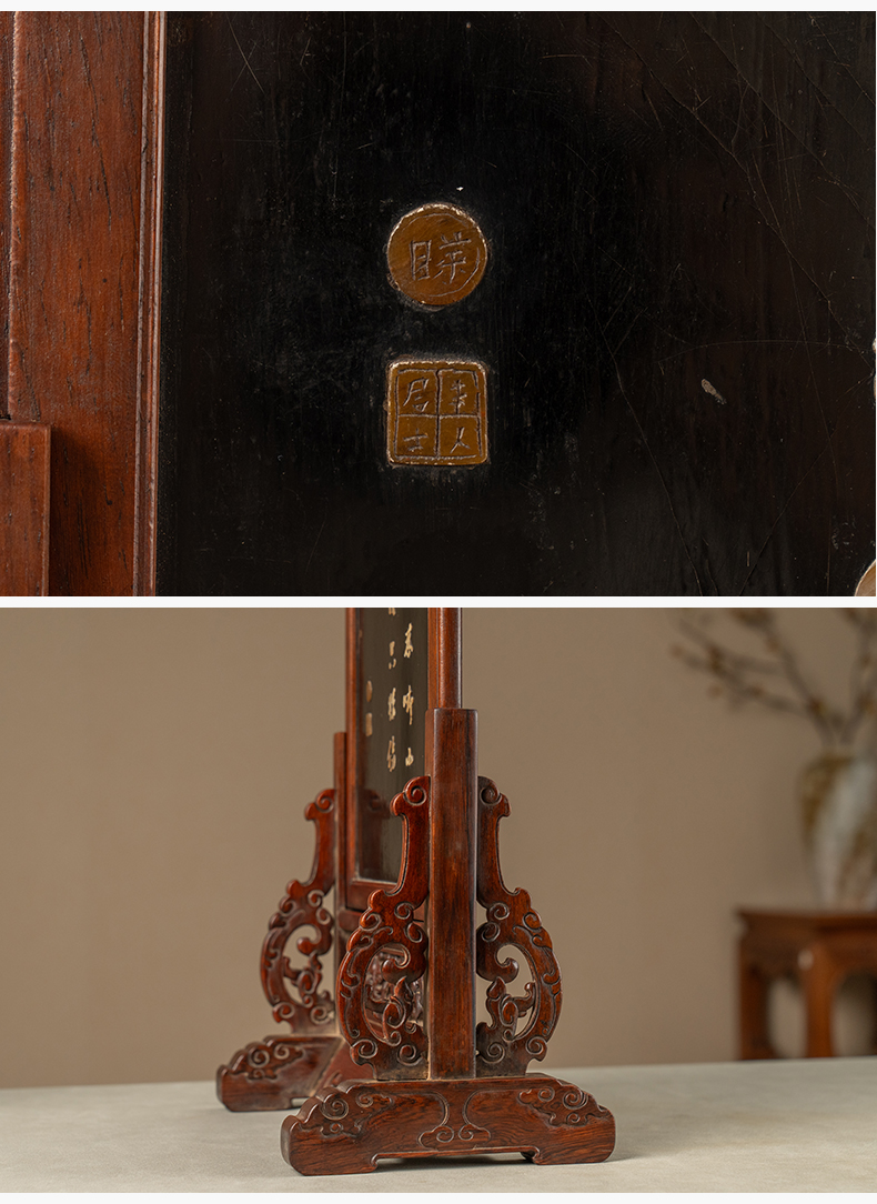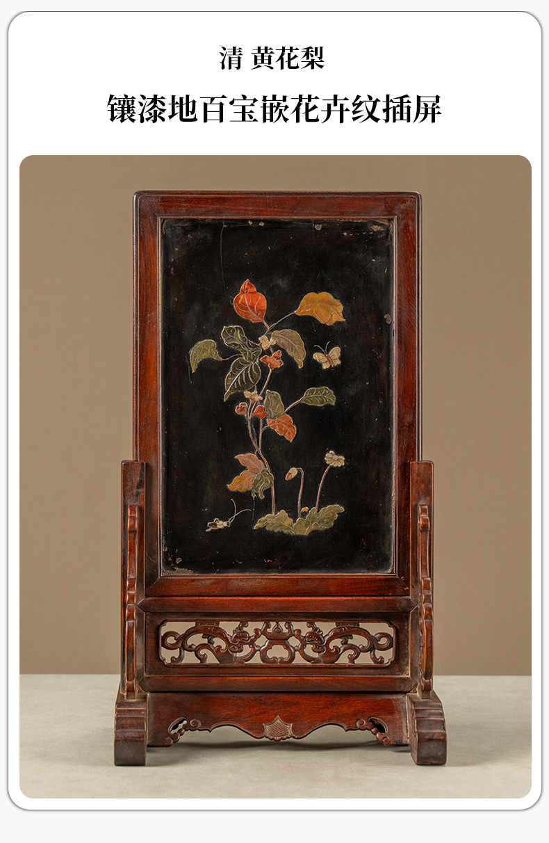清 黄花梨镶漆地百宝嵌花卉纹插屏