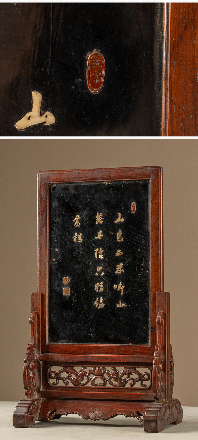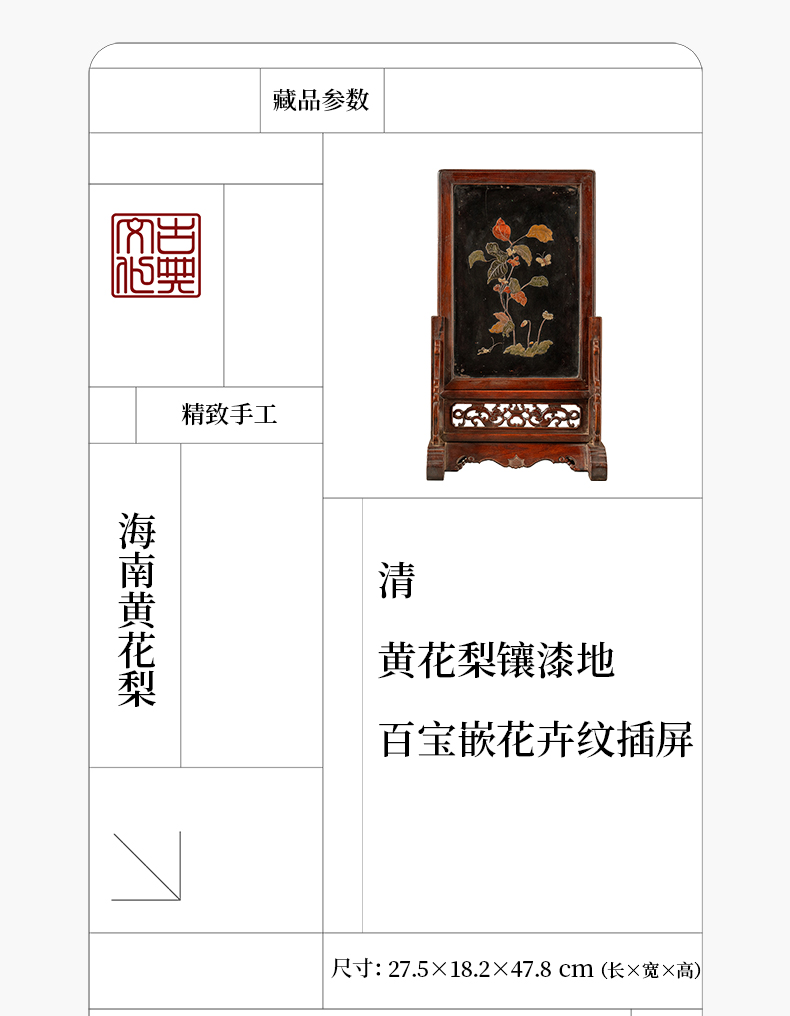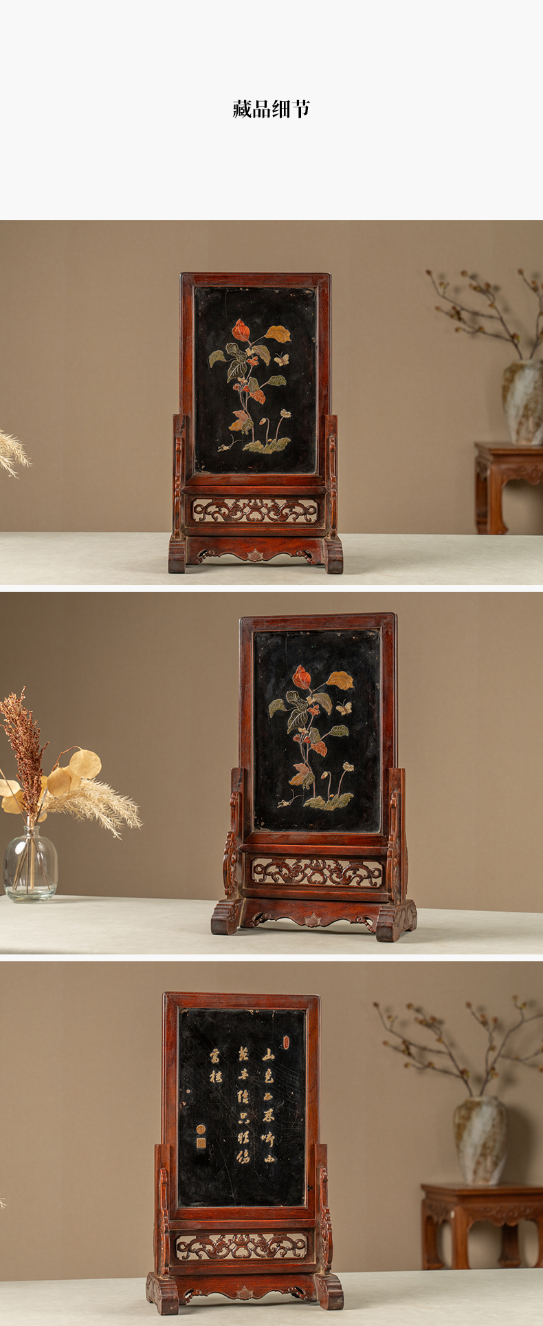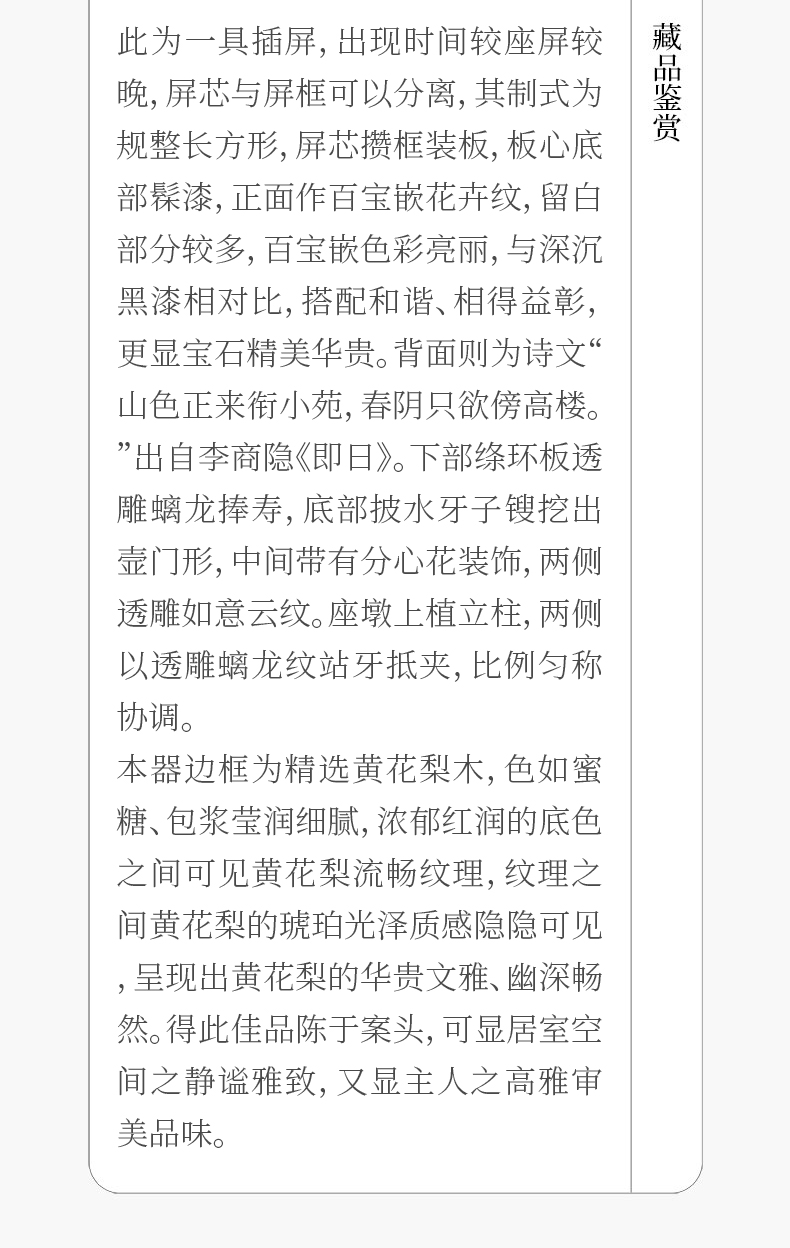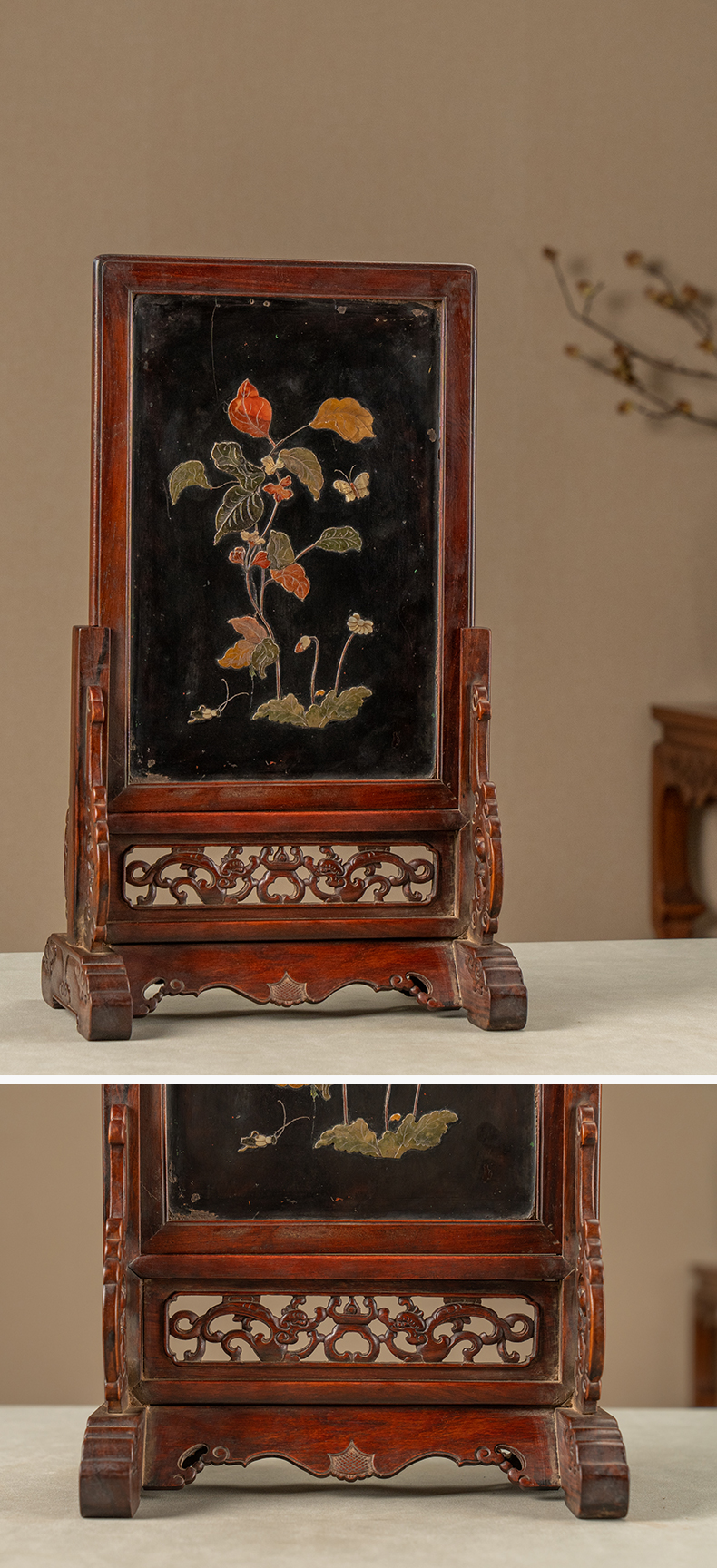 清 黄花梨镶漆地百宝嵌花卉纹插屏