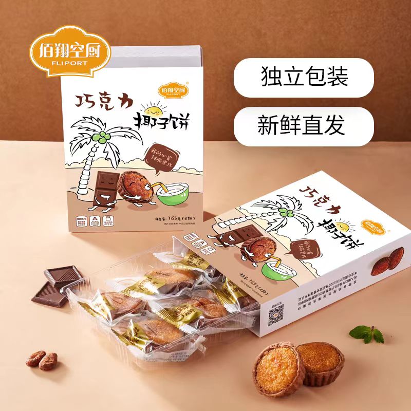 佰翔空厨巧克力椰子饼/1盒(6颗,共165g)生产日期:12月20日左右