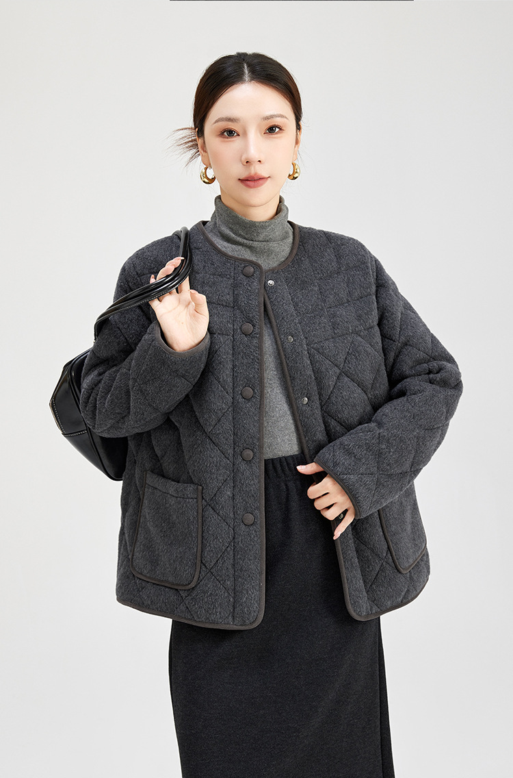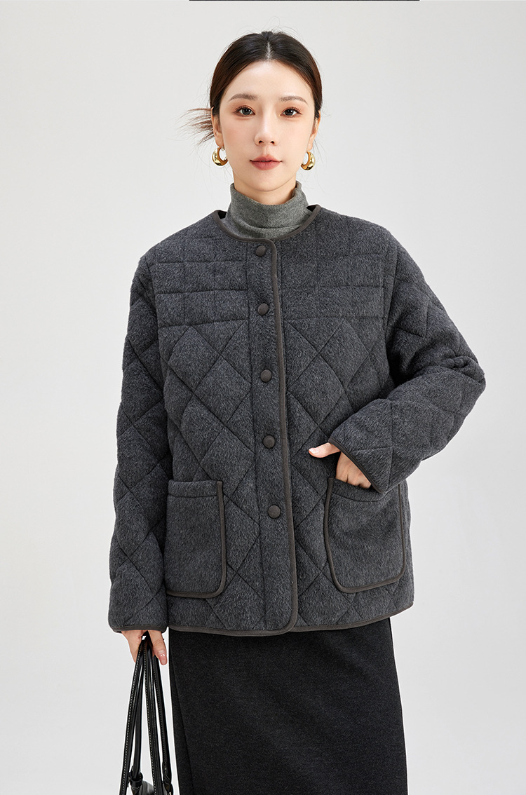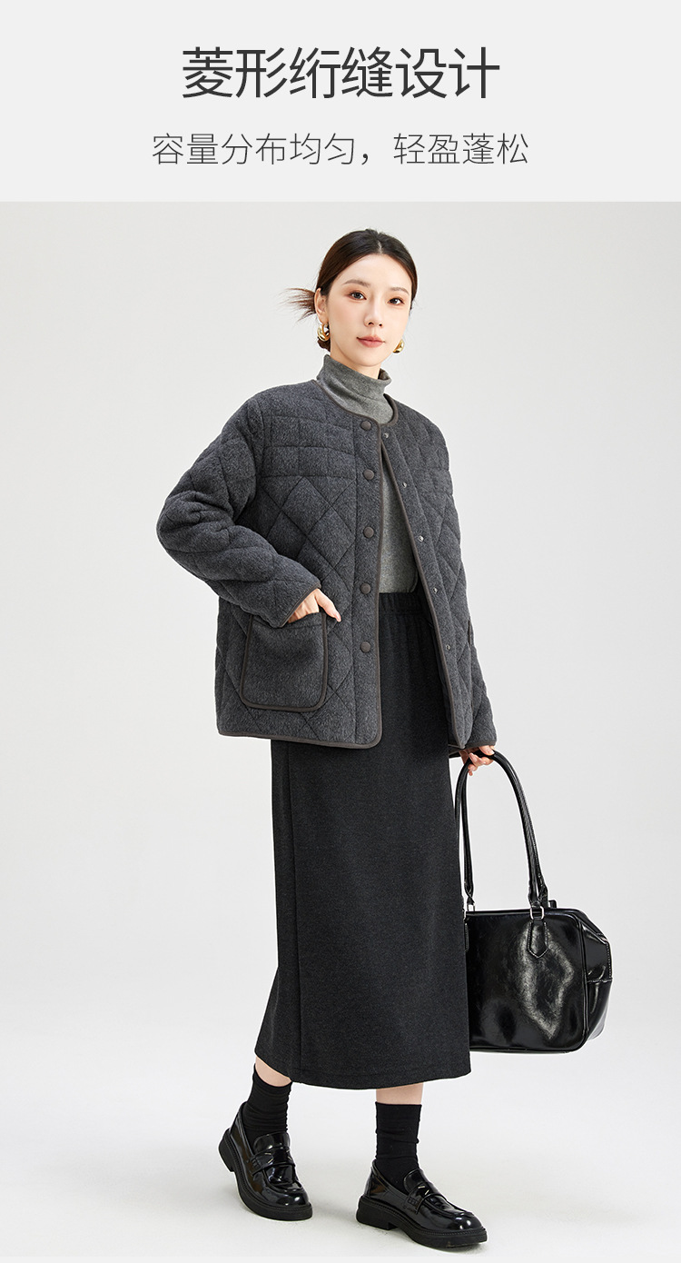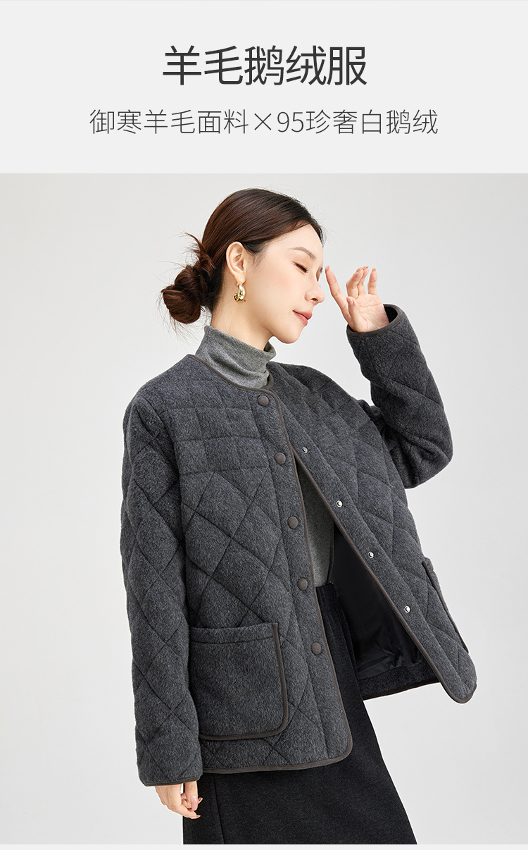 QS高级感时髦圆领长袖鹅绒服外套女秋冬新款2025菱形格百搭上衣7260