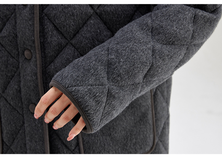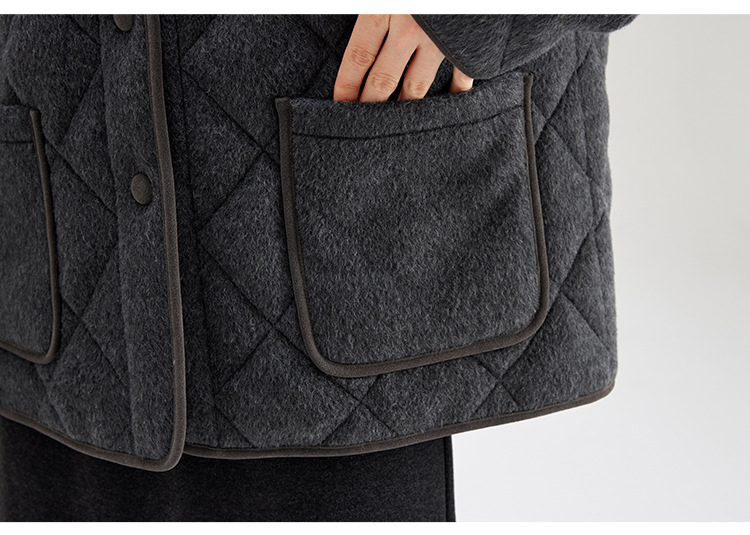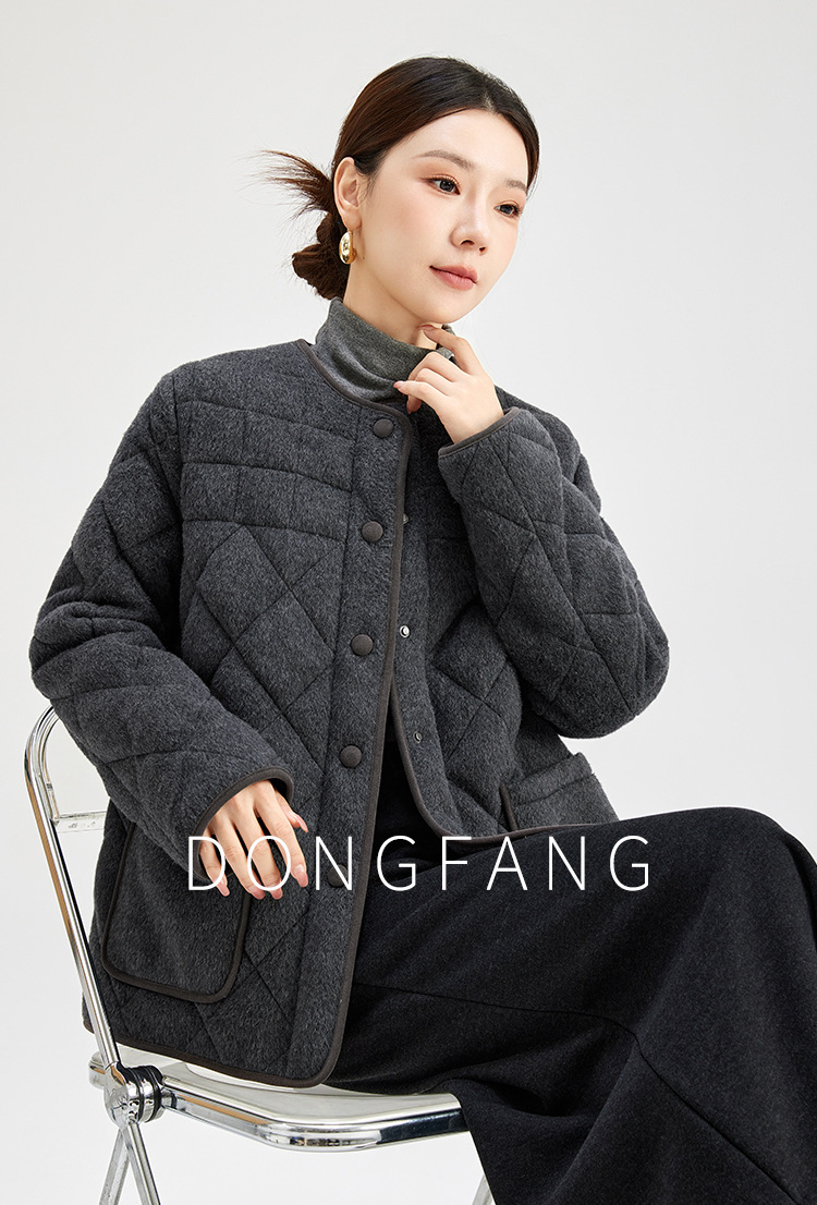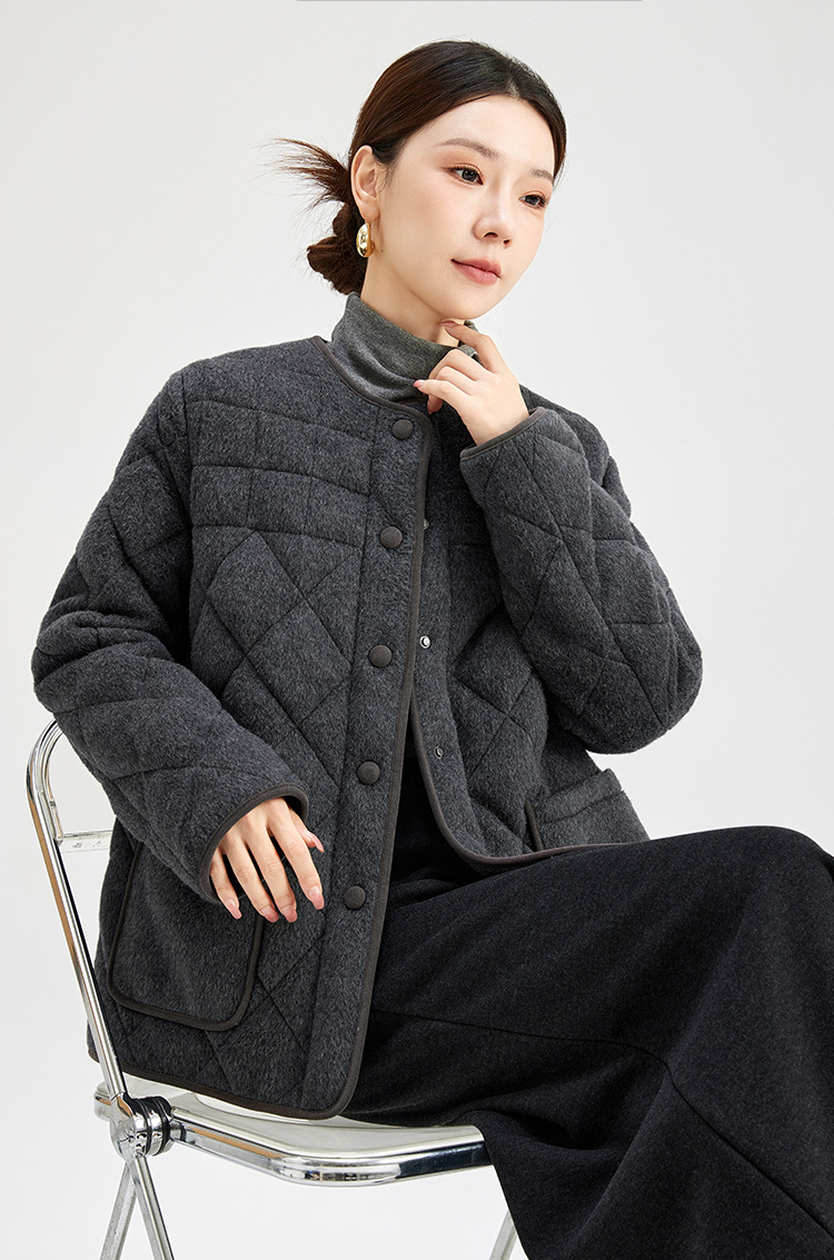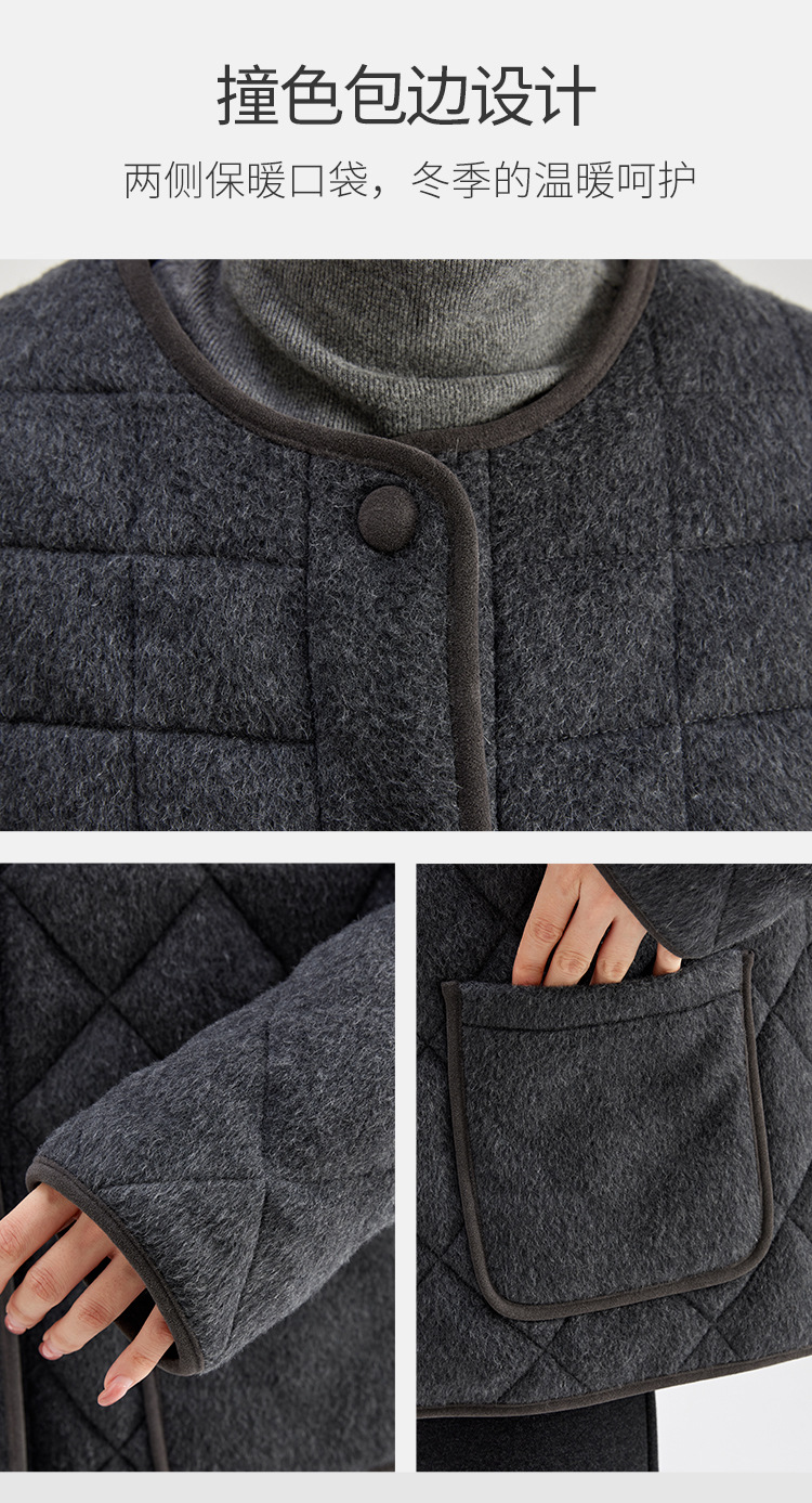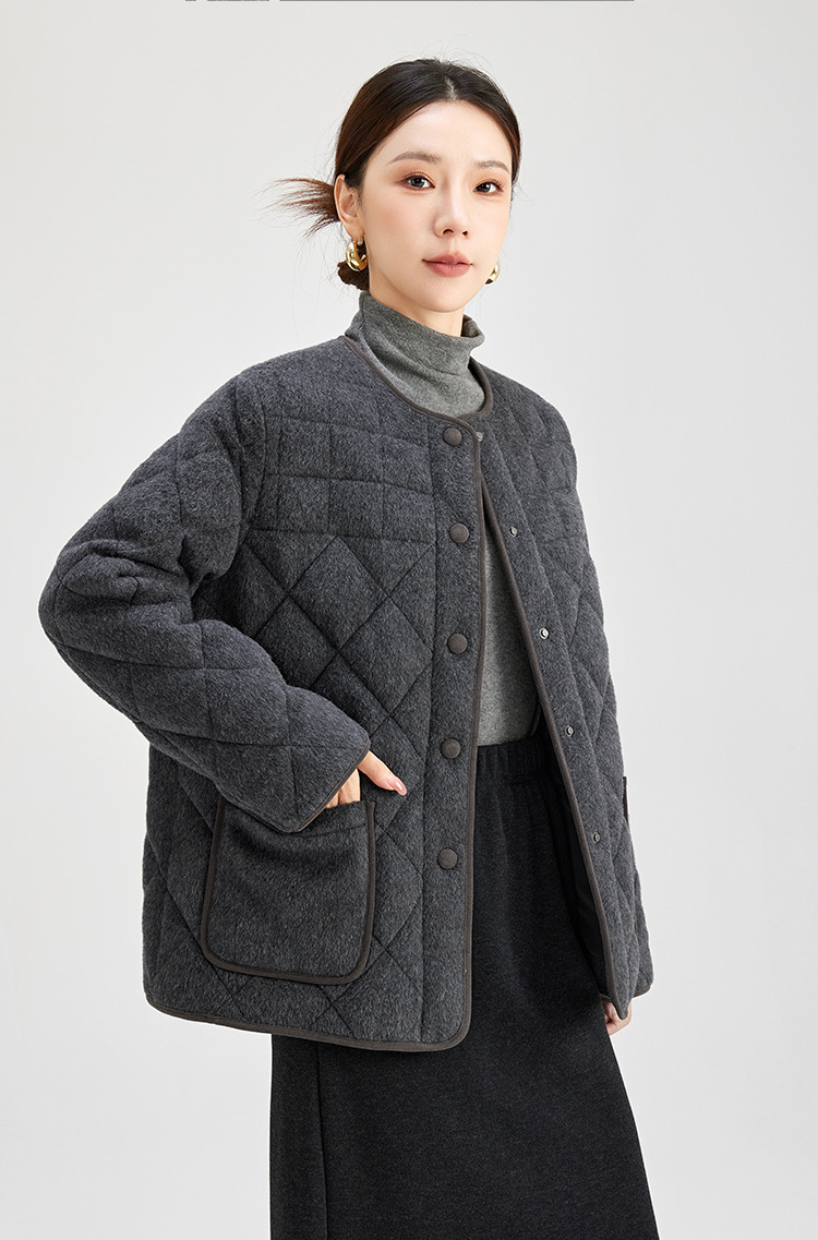 QS高级感时髦圆领长袖鹅绒服外套女秋冬新款2025菱形格百搭上衣7260