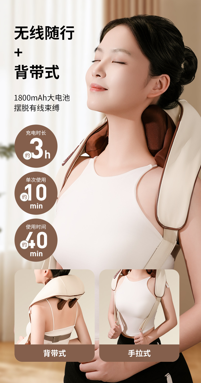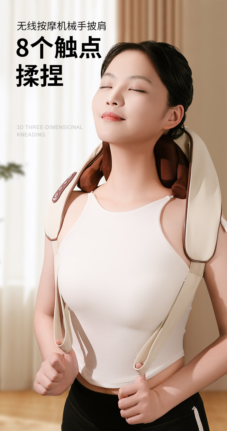 爱妈妈多亿点!【无线按摩机械手披肩,8个触点揉捏!】8头肩颈按摩仪颈部 夹揉捏按摩披肩 热敷脖子颈椎斜方肌按摩器-QQ