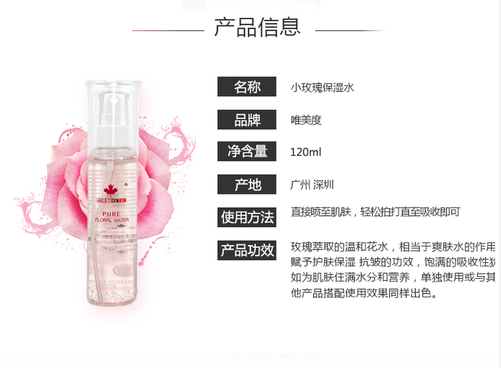 加拿大唯美度保加利亚小玫瑰保湿水120ml