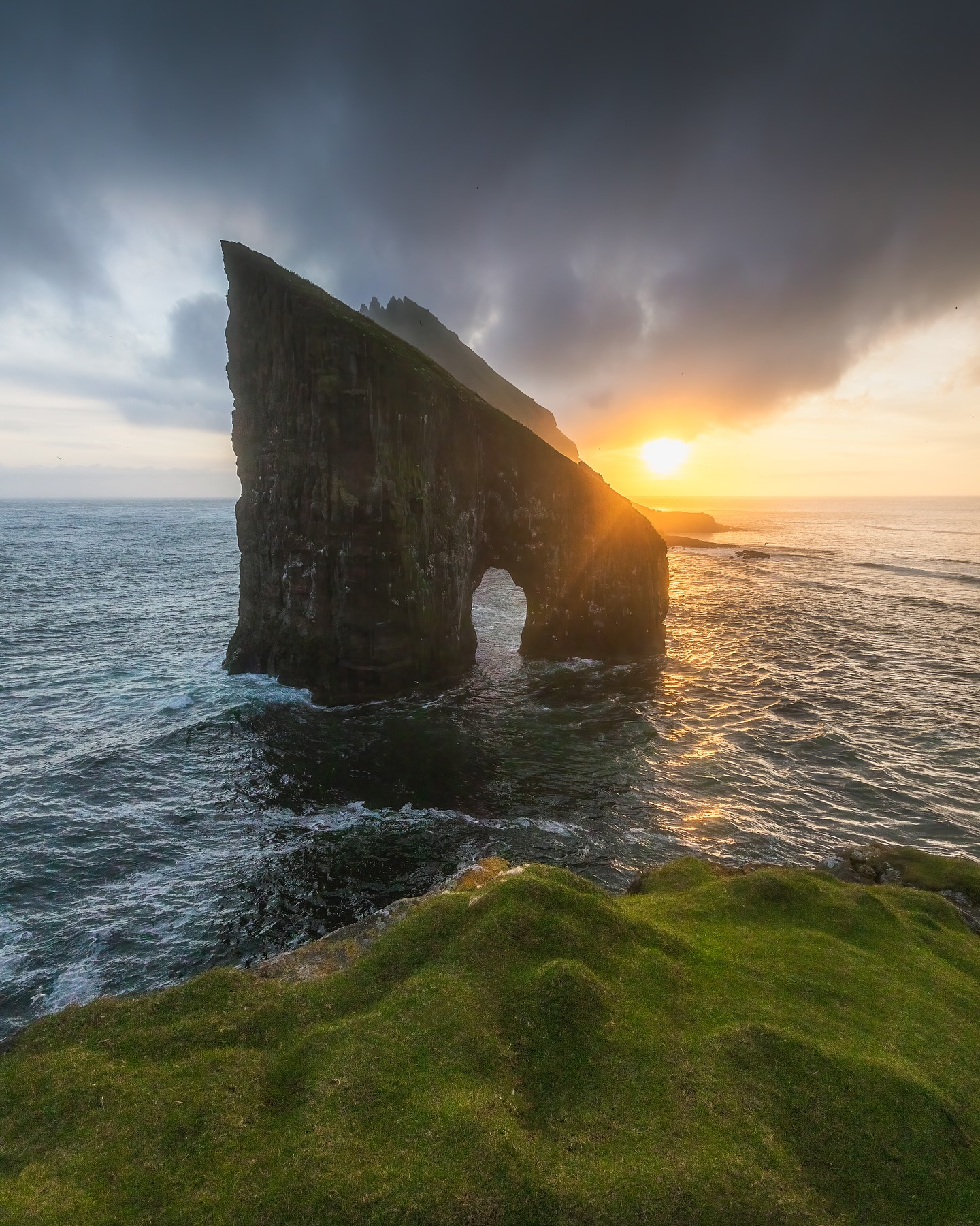 飞往法罗群岛,搭船一路海岸线,峭壁与海鸟群交织等,拍摄著名法罗的达兰加尔门,海蚀拱门高约 70 米,广阔壮丽大西洋日落拍摄。
