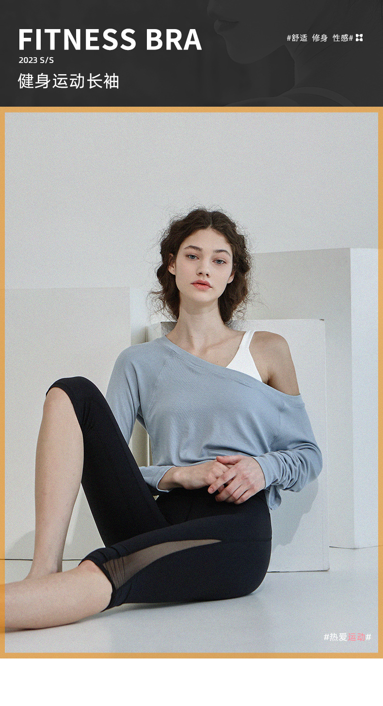 跃牌【洛水之神系列】网纱透气瑜伽服上衣跑步长袖宽松速干t恤 HN198