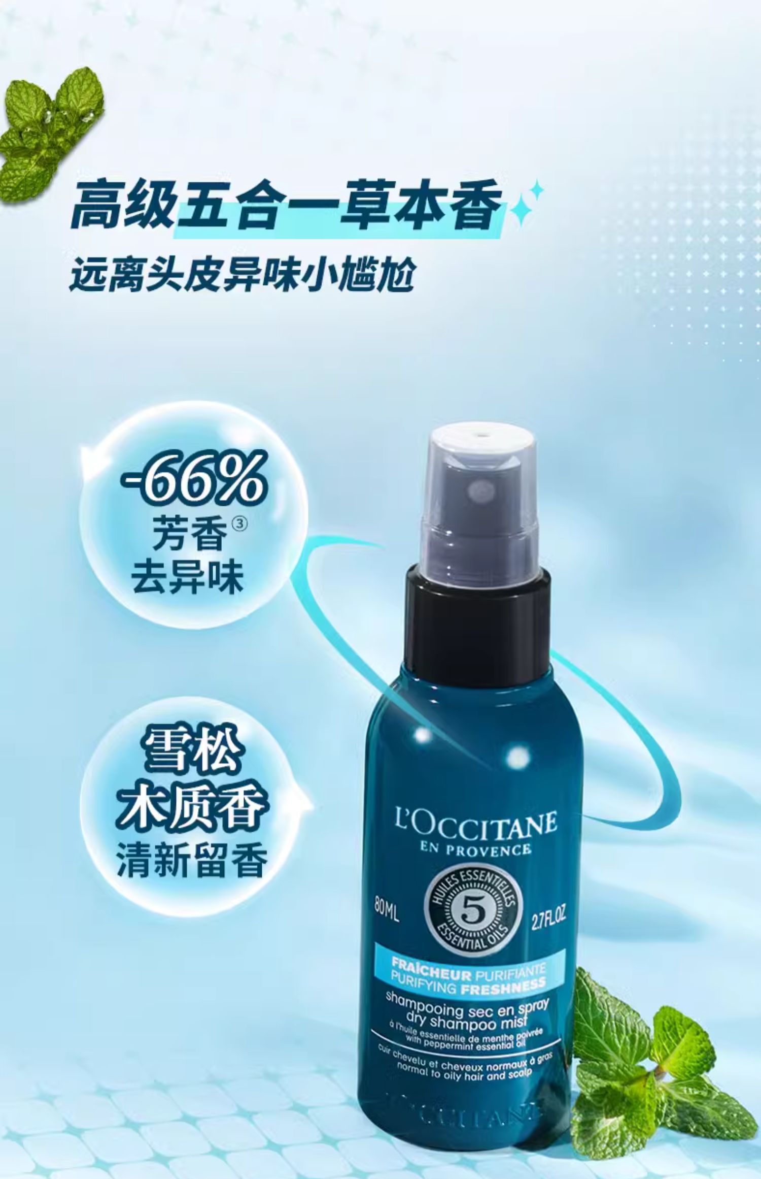 L’OCCITANE欧舒丹五合一草本香菁纯纯净免洗干发喷雾