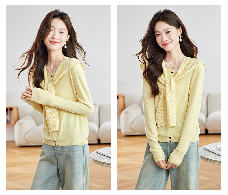 披肩女装针织衫毛衣,长袖宽松圆领百搭显瘦打底衫(送披肩)HR-SSFB090