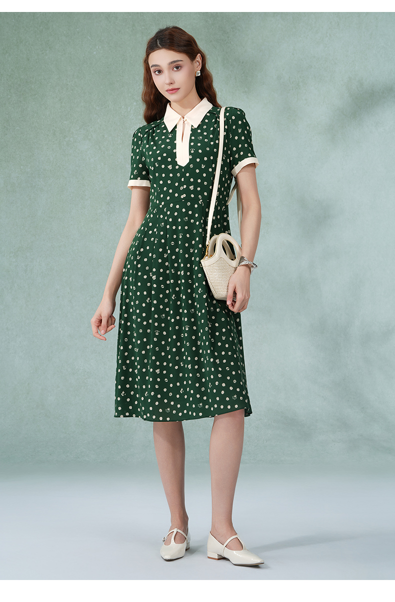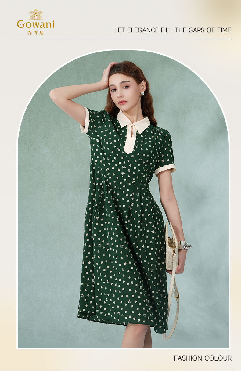 乔万尼夏季新款真丝连衣裙拼色舒适减龄通勤百搭EI2E868