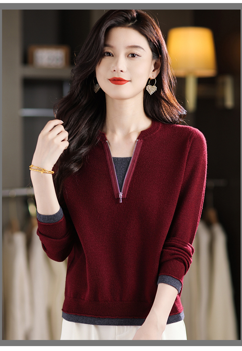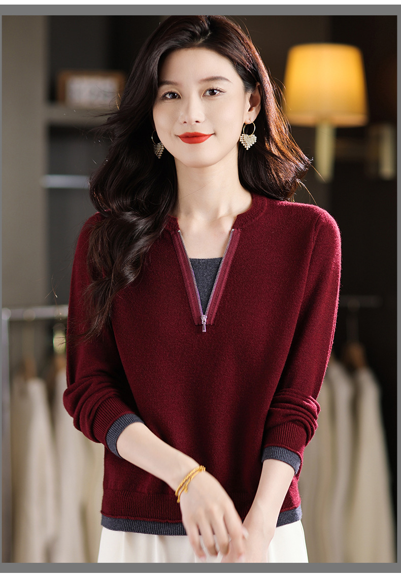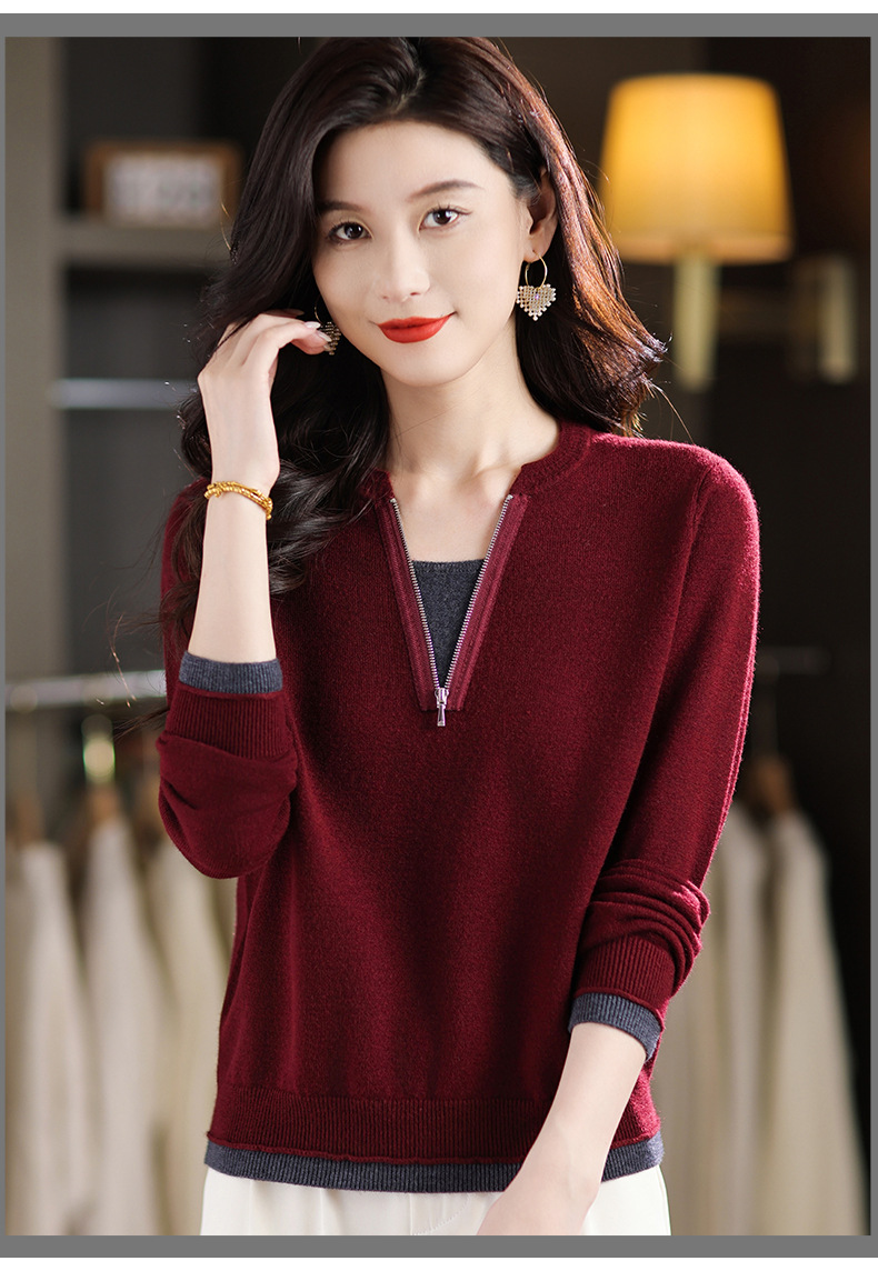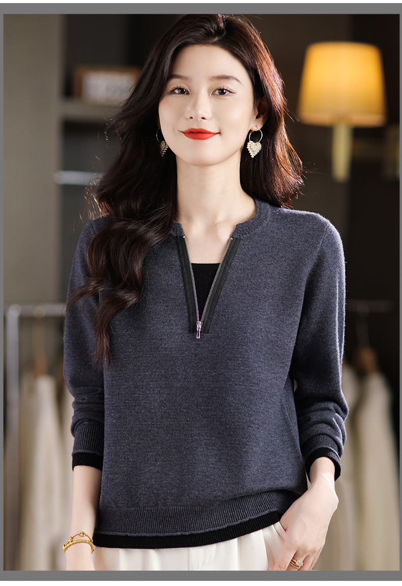 CC 1233时尚漂亮上衣针织衫假两件半拉链