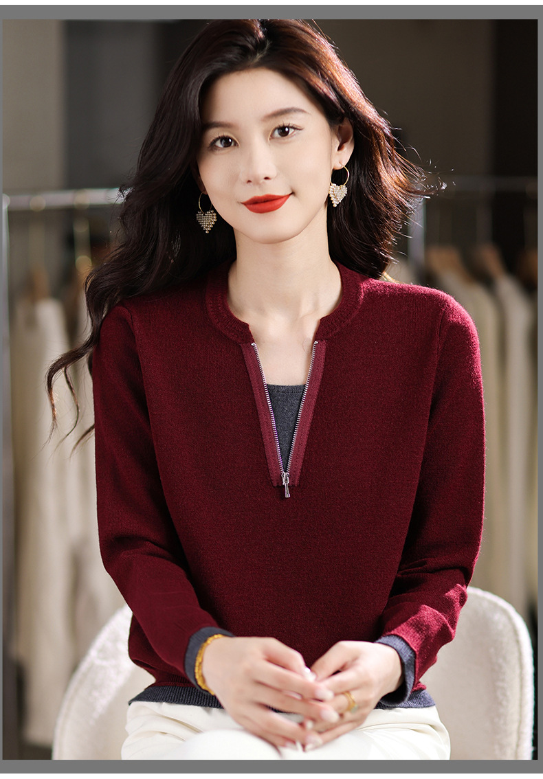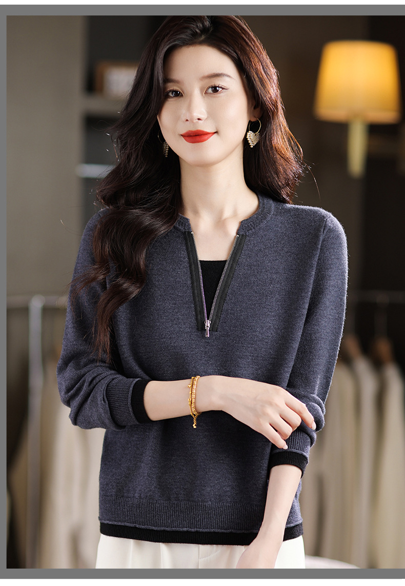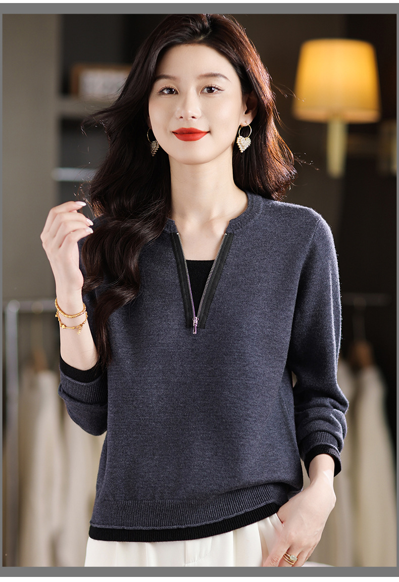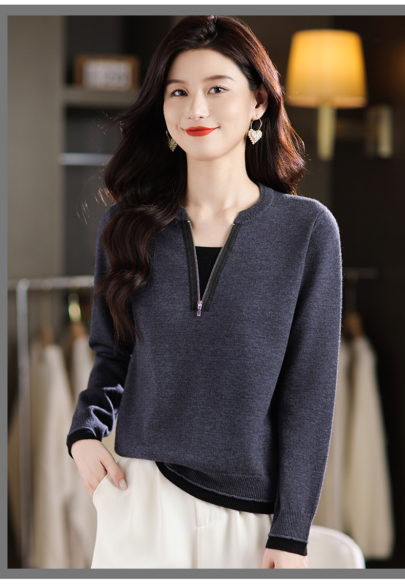 CC 1233时尚漂亮上衣针织衫假两件半拉链