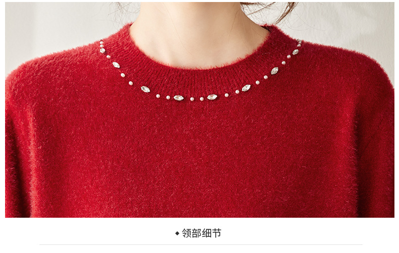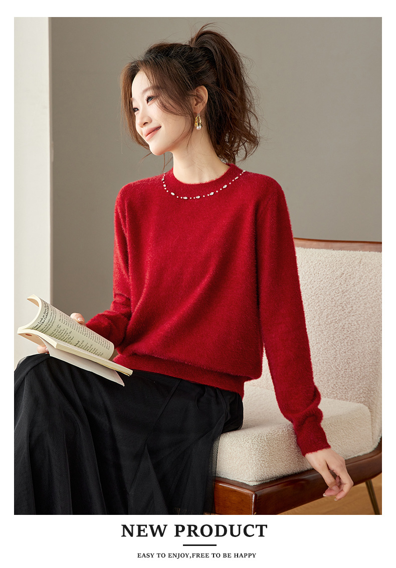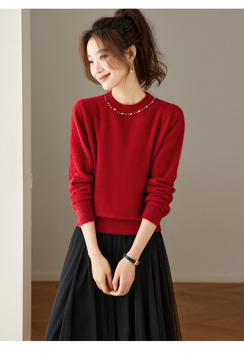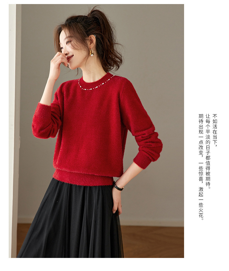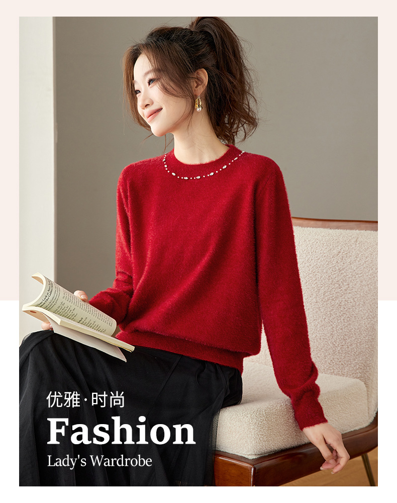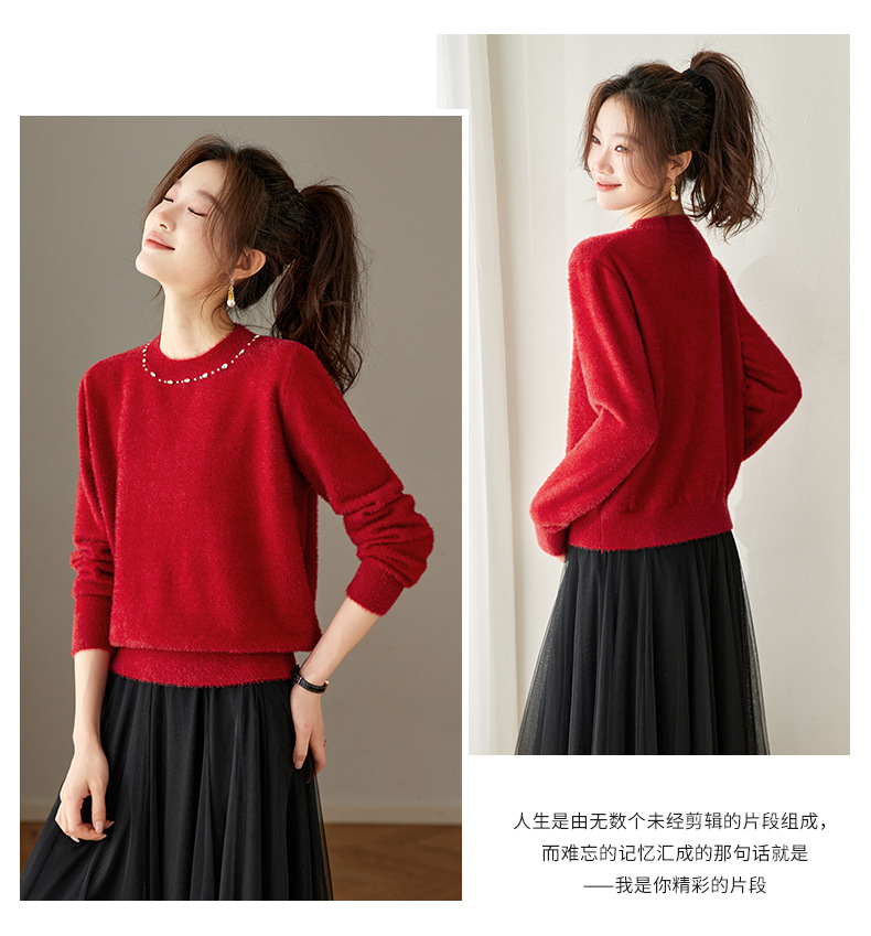 CC高级感红色针织打底衫女秋冬宽松显瘦时尚洋气内搭毛衣本命年上衣