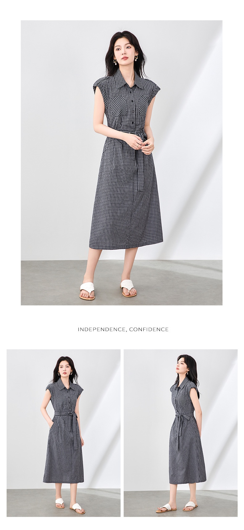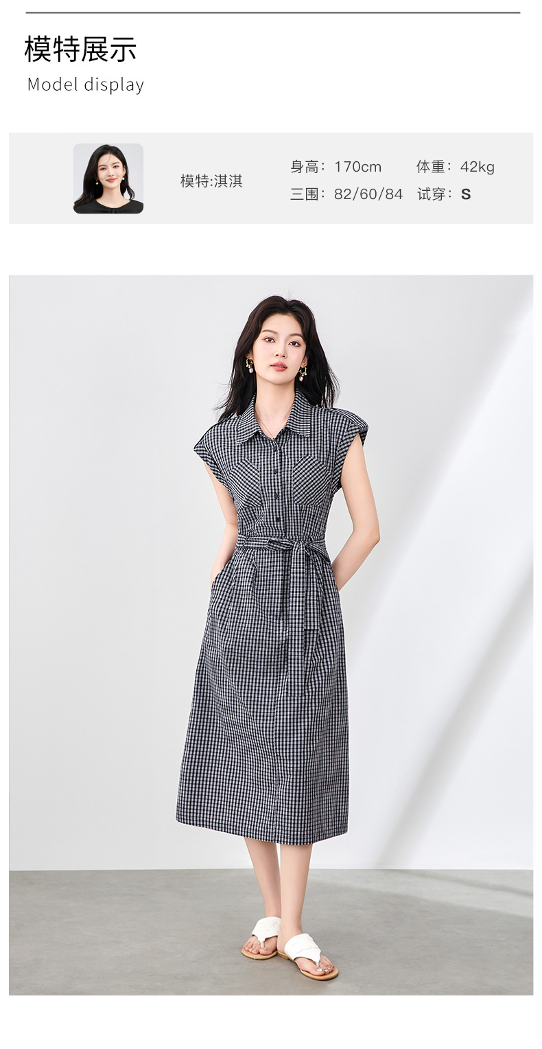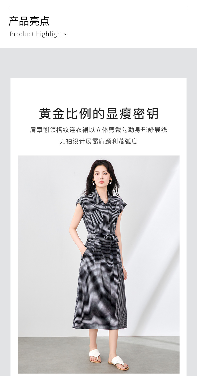 「高货wl」全新升级【铂金会员358/天猫479/差价121】(71055)洛诗琳法式系带格子无袖连衣裙2025夏季新款收腰显瘦裙子