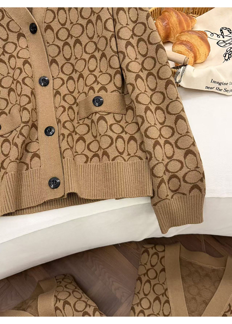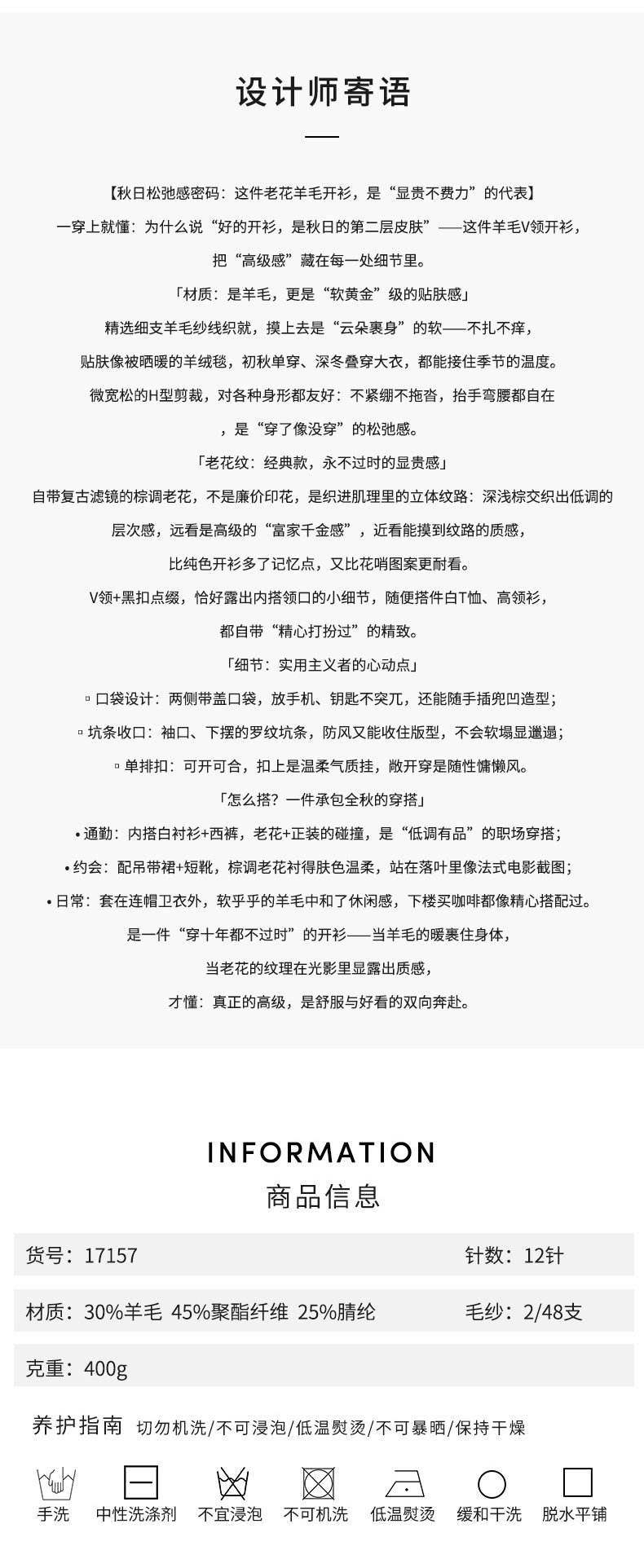 「高货rp」全新升级【铂金会员330/天猫439/差价109】(11732)洛诗琳气质提花针织开衫2026春季新款静奢老钱风V领针织羊毛外套