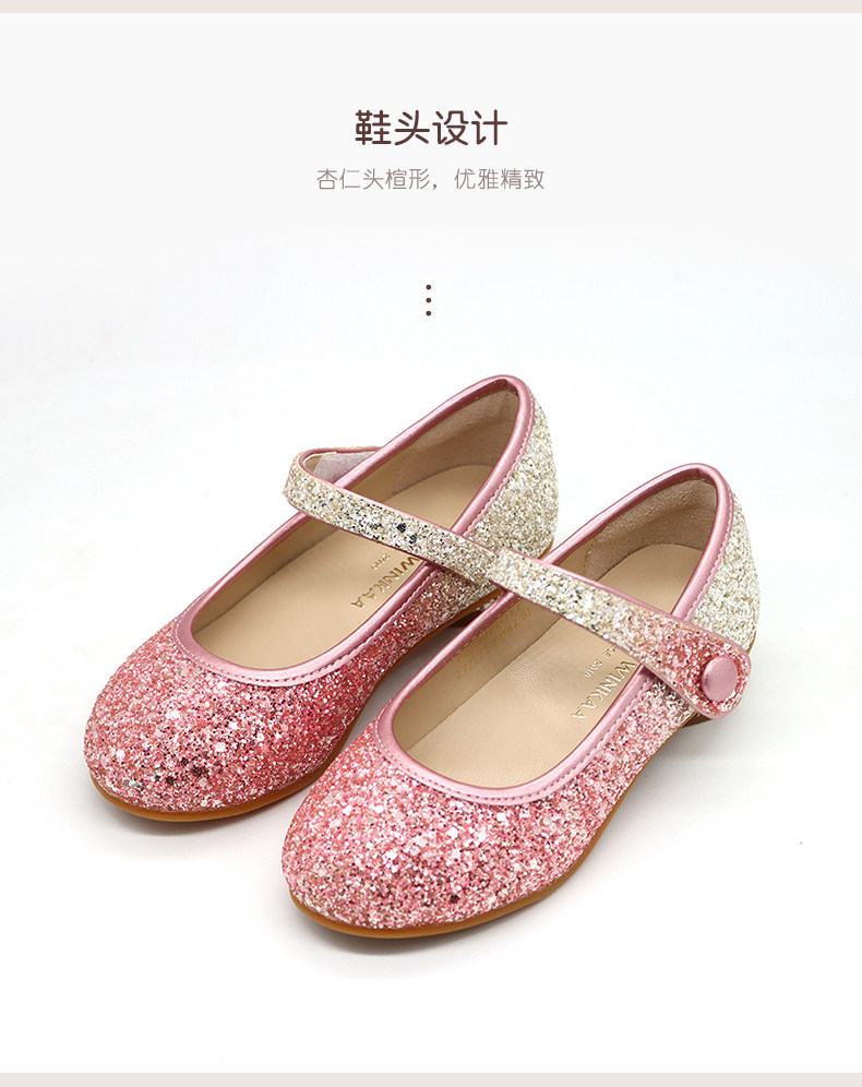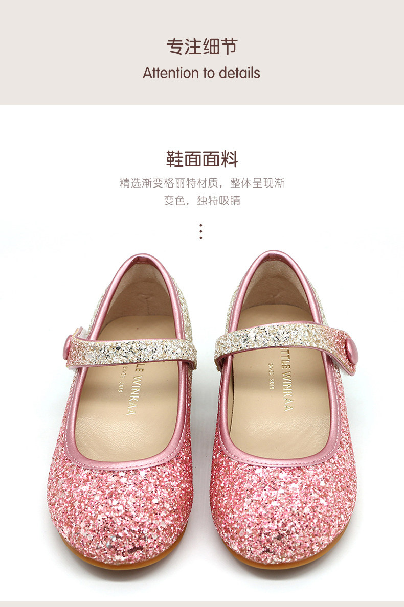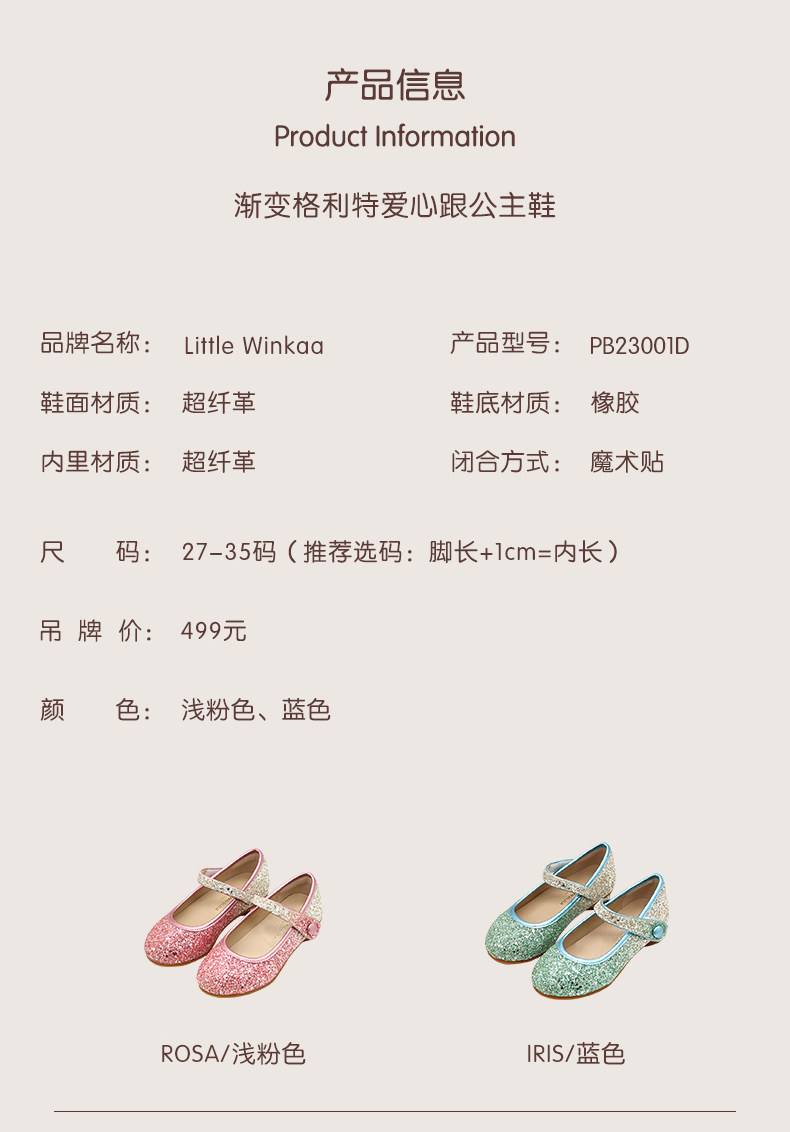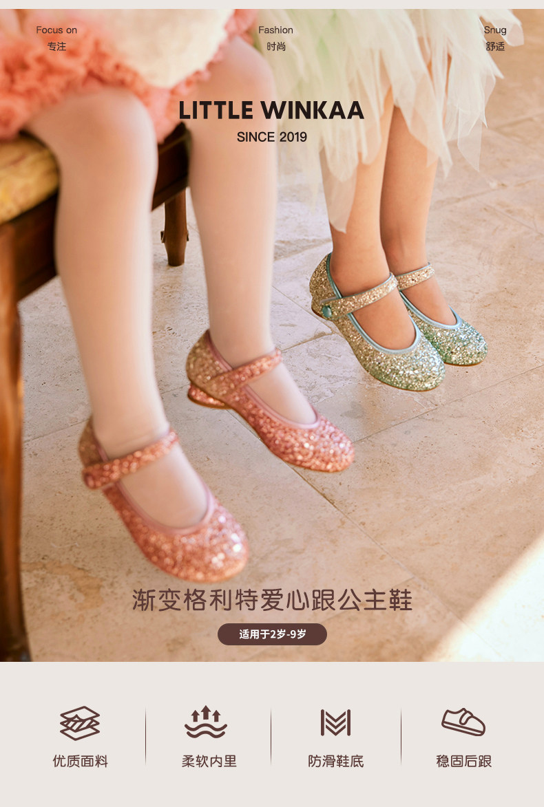 西班牙Little winkaa童鞋新款渐变格利特爱心跟闪亮水晶魔术贴公主鞋女PB23001
