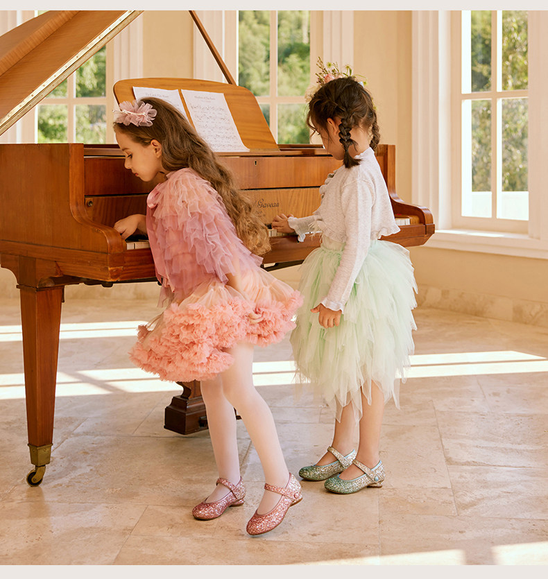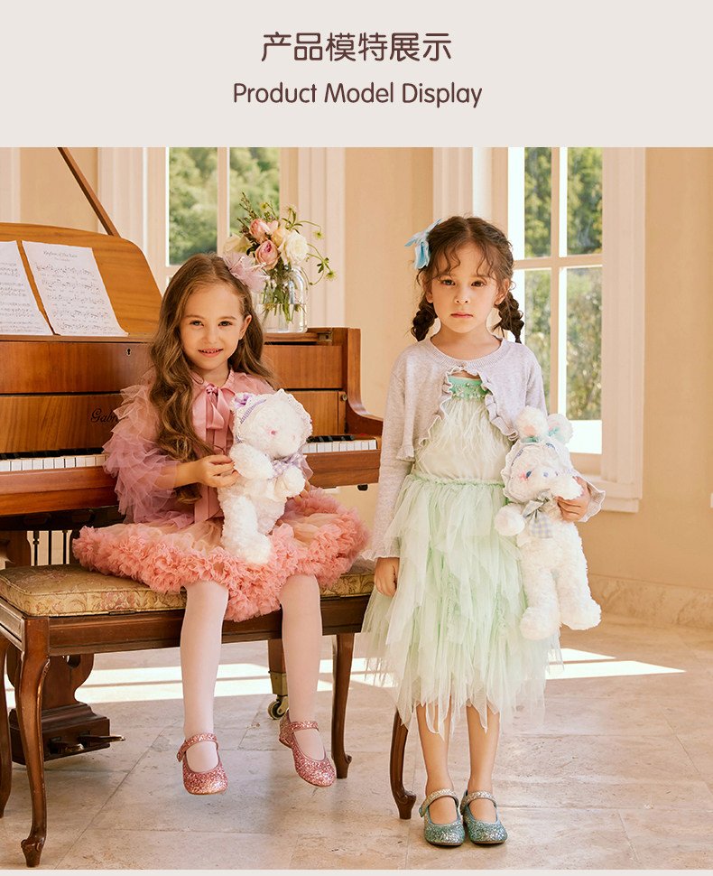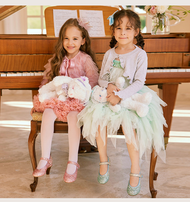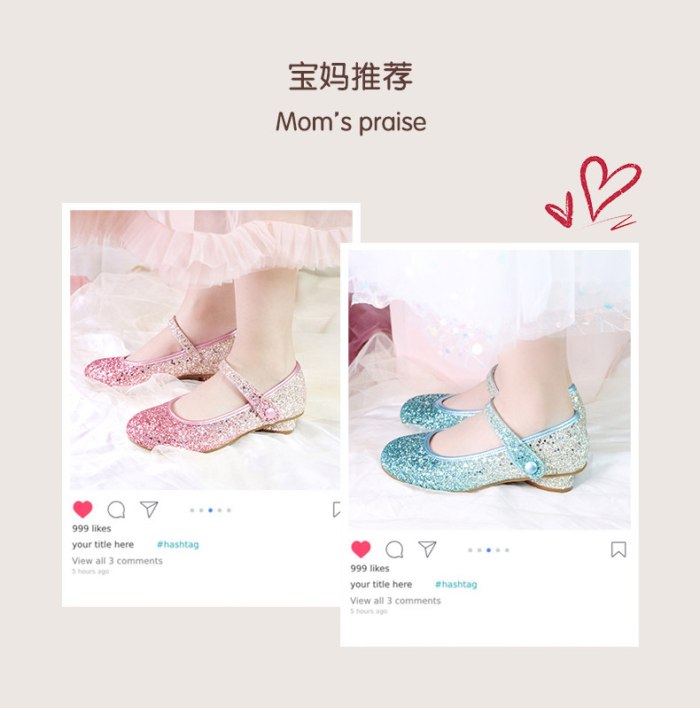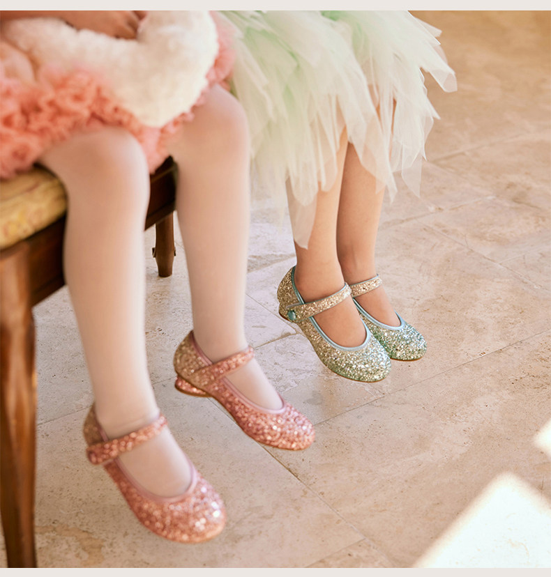 西班牙Little winkaa童鞋新款渐变格利特爱心跟闪亮水晶魔术贴公主鞋女PB23001