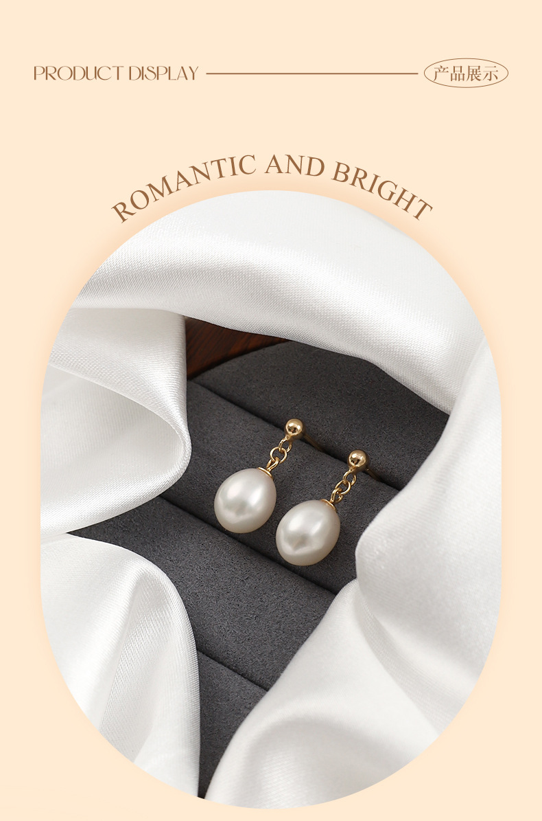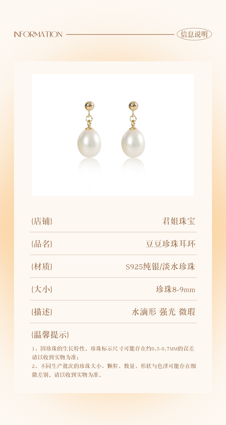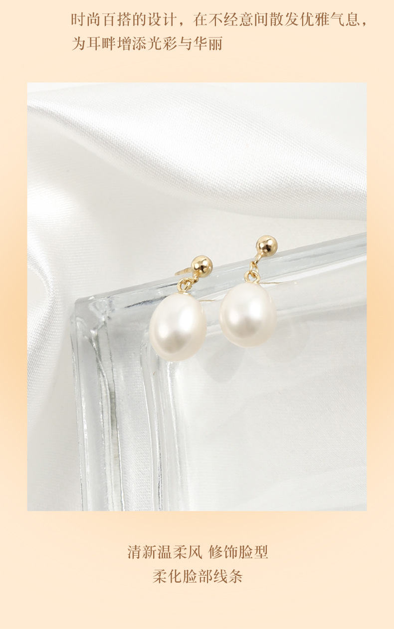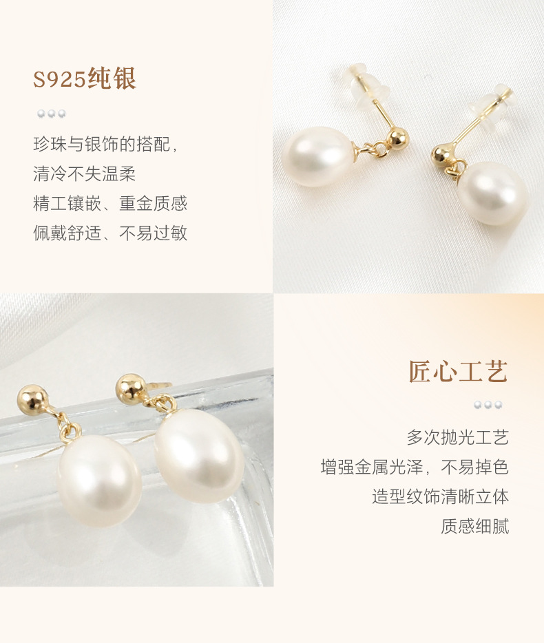 丁摩 淡水珍珠耳钉 8-9mm水滴形耳饰S925纯银豆豆珍珠耳环5ZF-1053
