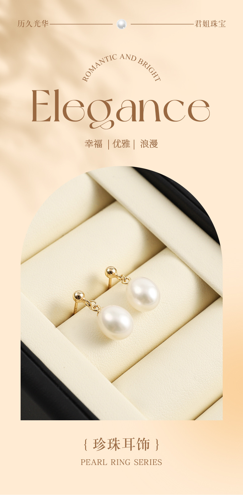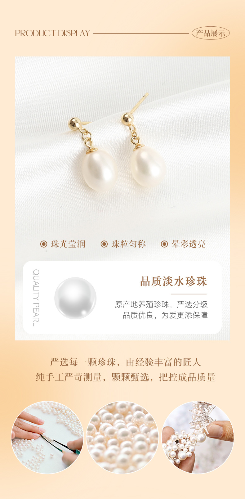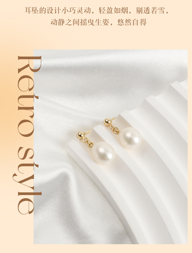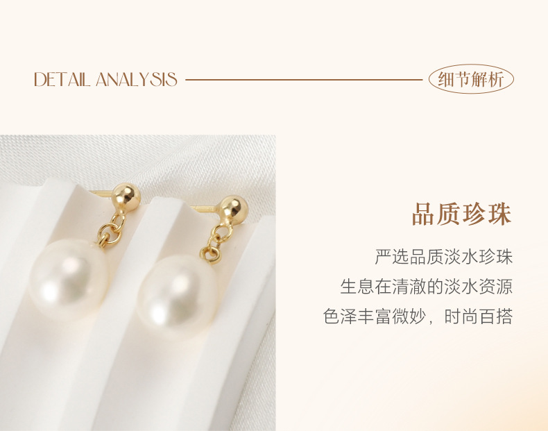 丁摩 淡水珍珠耳钉 8-9mm水滴形耳饰S925纯银豆豆珍珠耳环5ZF-1053