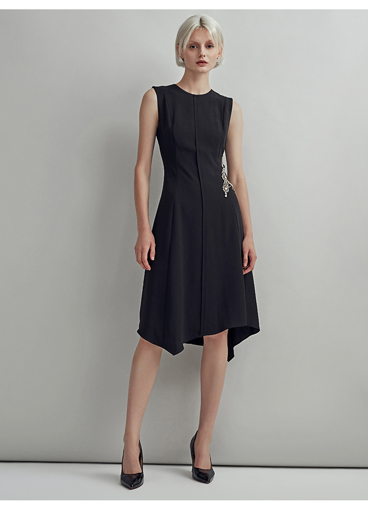 EITIE爱特爱女装简约大方时尚黑白拼色显瘦修身连衣裙D1907307